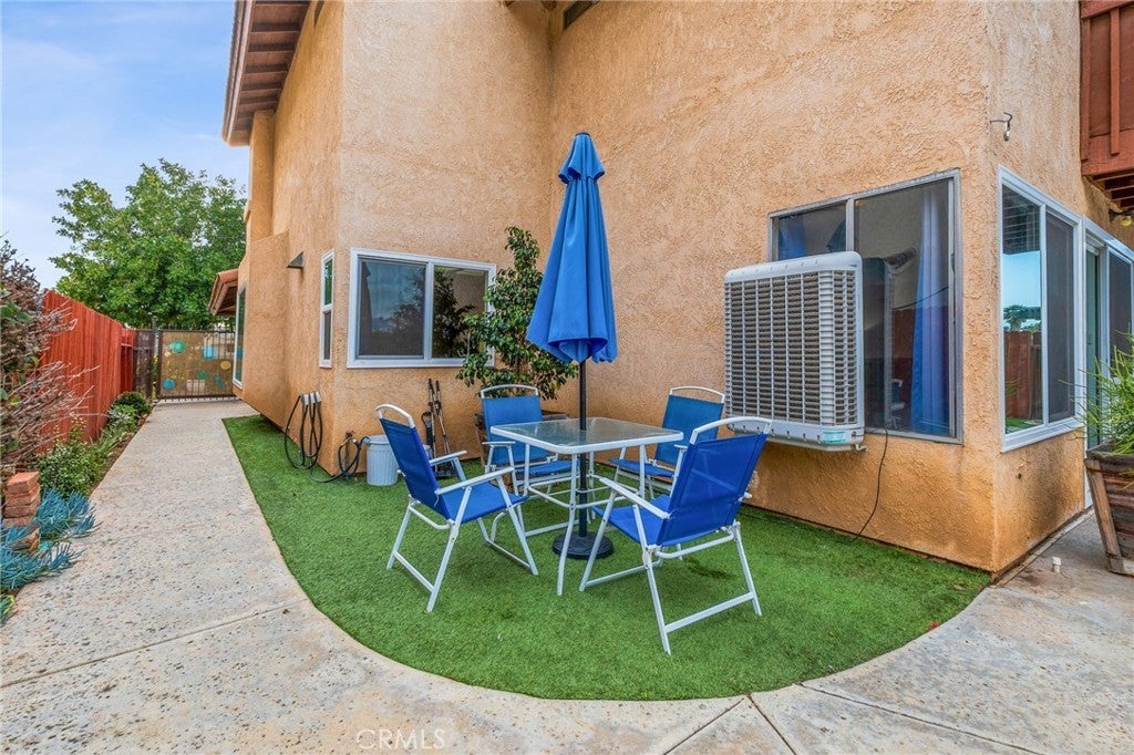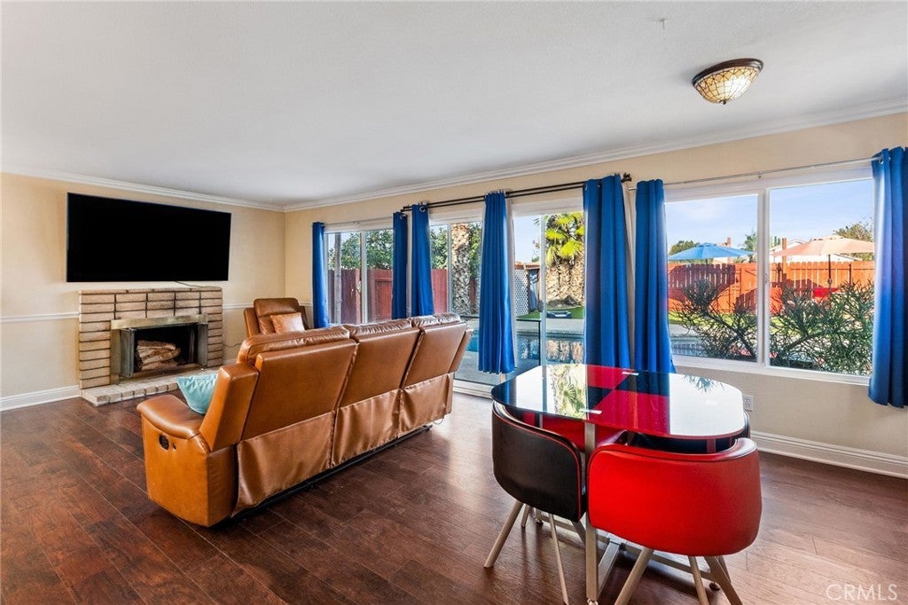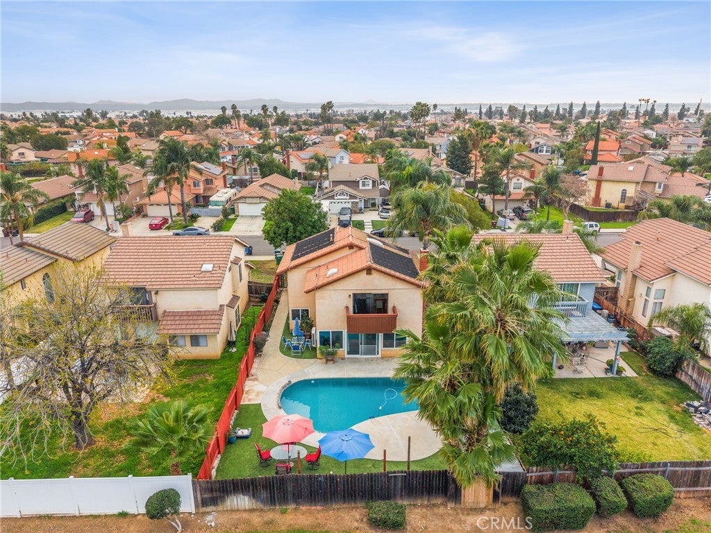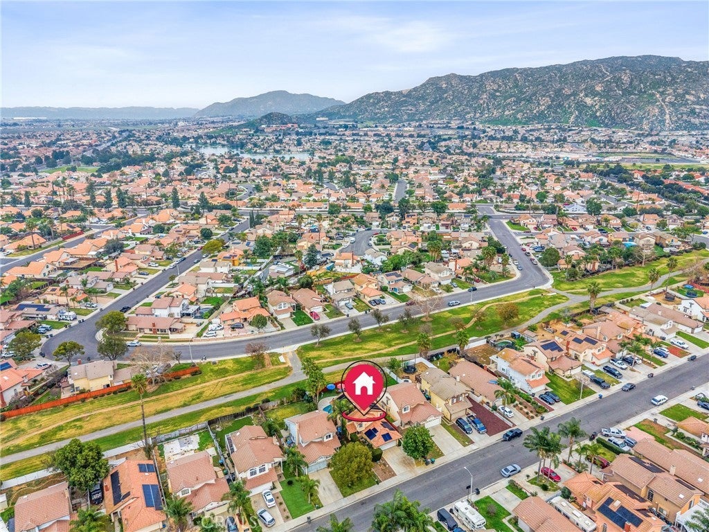 Welcome to this beautifully maintained Moreno Valley home that perfectly blends comfort, functionality, and energy efficiency. The home features 3 bedrooms and 2.5 bathrooms, this move-in-ready residence offers a thoughtful layout designed for everyday living and for entertaining. As you enter, you’re greeted by the living room complete with a fireplace, creating the perfect space to relax or gather with friends and family. There is a sliding door that goes out to the backyard with the pool. Laminate flooring flows throughout the home, offering a clean, modern look while being both durable and easy to maintain. There is open kitchen area with stainless steel appliances, granite countertops, and modern cabinetry, making it ideal for cooking, hosting, or casual dining. Downstairs includes a convenient half bathroom located near the garage, perfect for guests. Upstairs, there are three bedrooms, with a hallway bathroom. The primary bedroom features direct access to the balcony that overlooks the backyard and pool. From here, enjoy peaceful mornings or evening sunsets with beautiful mountain views as your backdrop. Step outside to the backyard that features a pebbletec swimming pool equipped with solar pool-heating panels, allowing you to enjoy extended swim seasons while keeping energy costs low. Artificial turf adds year-round greenery and significantly reduces water usage, making the outdoor space low maintenance. Beyond the yard, a greenbelt provides added privacy and is ideal for walking, exercising, or taking dogs out for a walk This home also includes solar electric panels, offering long-term savings on electricity and increased energy efficiency. With its desirable layout, modern finishes, and eco-friendly features, this home checks all the boxes. Don’t miss the opportunity to own this great home that is move-in ready . Schedule your private showing today.