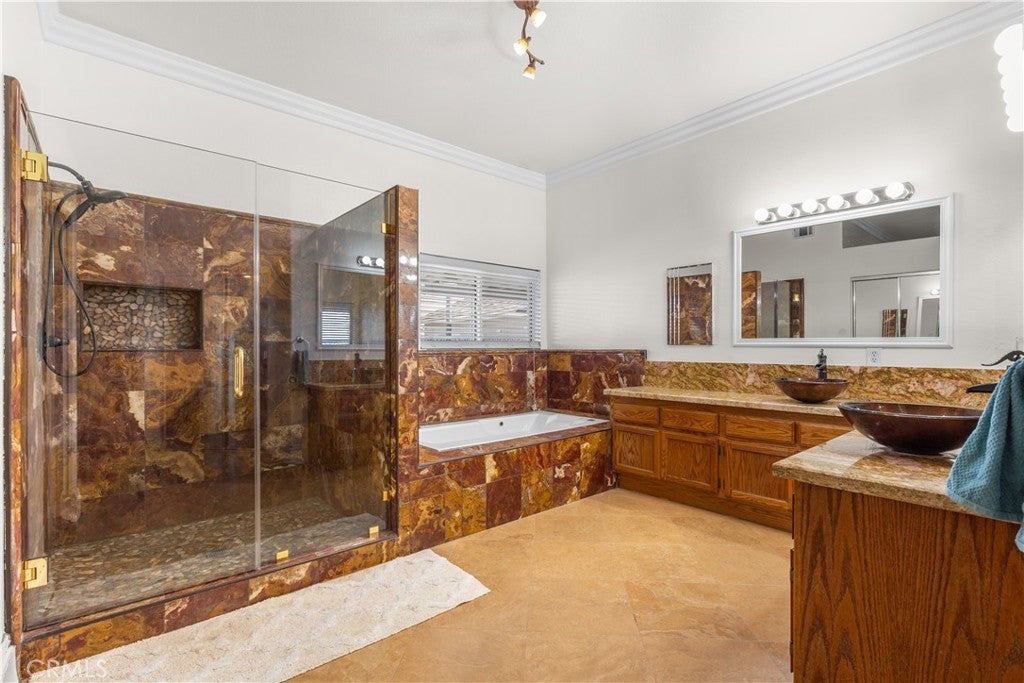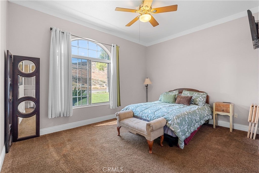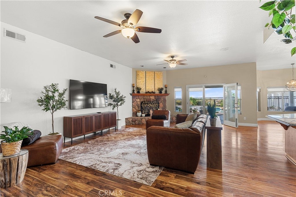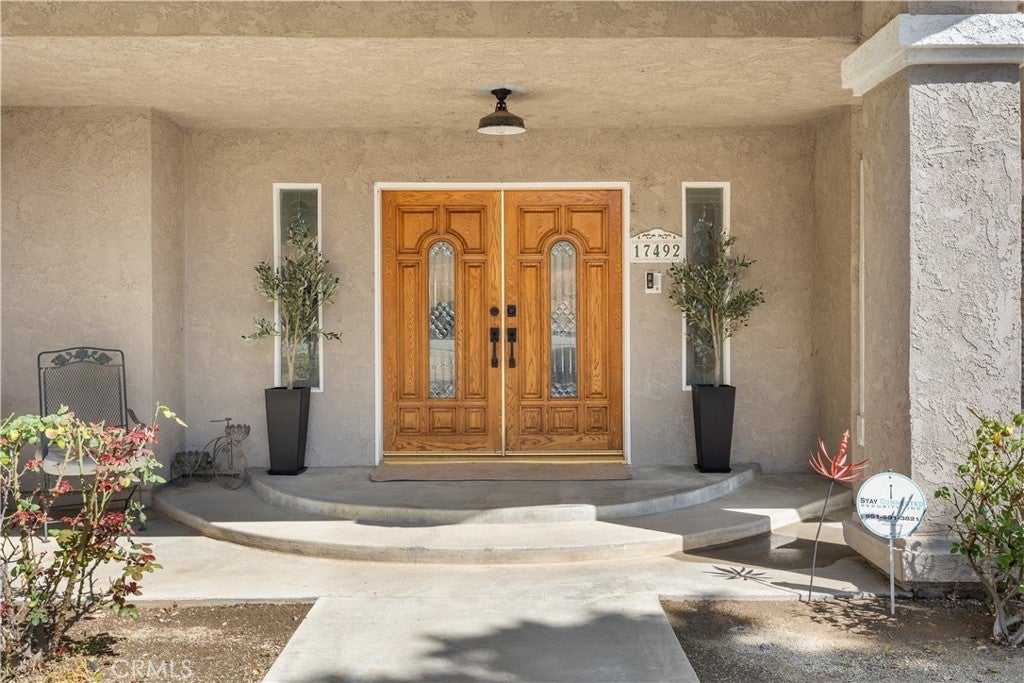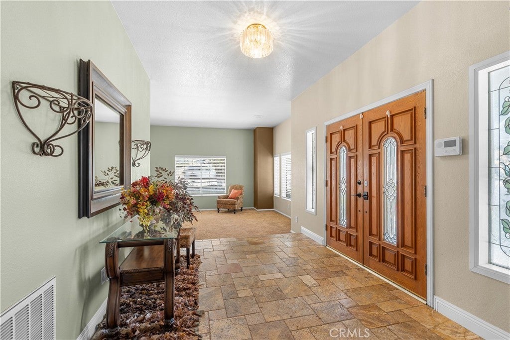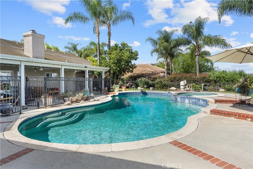Set on a prominent corner lot in the highly sought-after Woodcrest community, this exceptional home boasts space, versatility, and timeless elegance. The main residence features 4 bedrooms and 3.5 bathrooms, including two expansive primary suites, two fireplaces, large bonus recreational room, formal living and dining room, and thoughtfully curated living spaces designed for both relaxed living and sophisticated entertaining. Updated kitchen includes new five-burner stove and overhead microwave along with newly installed dishwasher. Resort-style outdoor living awaits with a sparkling pool and spa, lush mature landscaping, mountain views, and an inviting wraparound porch that enhances the home’s stately presence and indoor-outdoor flow. Complementing the main home is a separate guest structure with its own private entrance and driveway parking, offering a bedroom, bathroom, kitchen, and living area with brand new tankless water heater. A dedicated laundry room is located within the main residence, while additional washer and dryer hookups are available in the garage adjacent to the guest structure, providing added convenience and flexibility. The property also includes a separate flat lot with gated street access, ideal for RV or boat parking, storage, or potential future enhancements such as a garage or workshop. Additional highlights include paid-off solar and an enviable location in one of Woodcrest’s most desirable neighborhoods. Ideal for multi-generational living. This is a rare opportunity to own a property that seamlessly blends privacy, functionality, and upscale living.