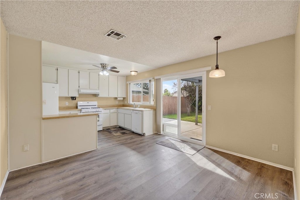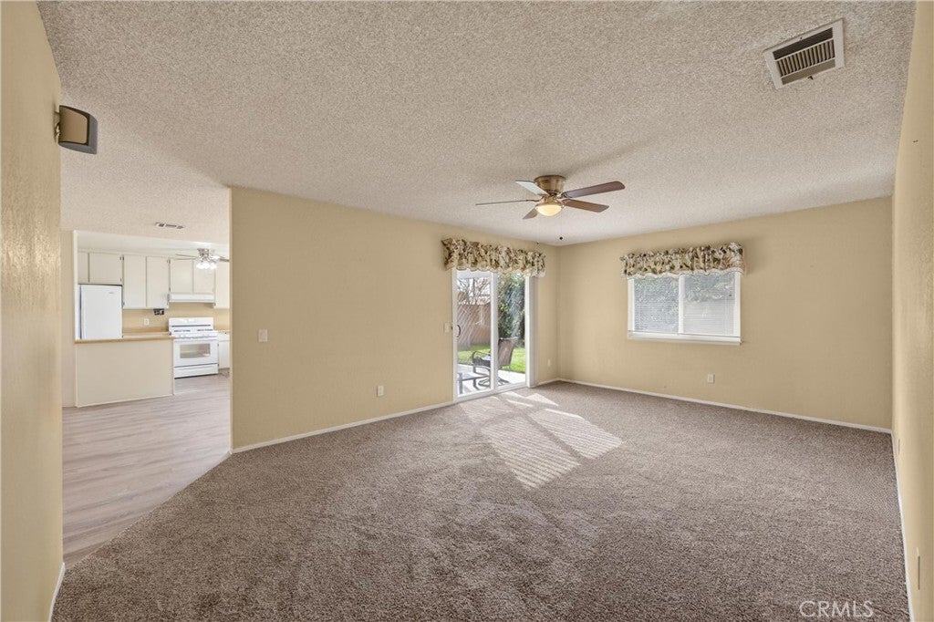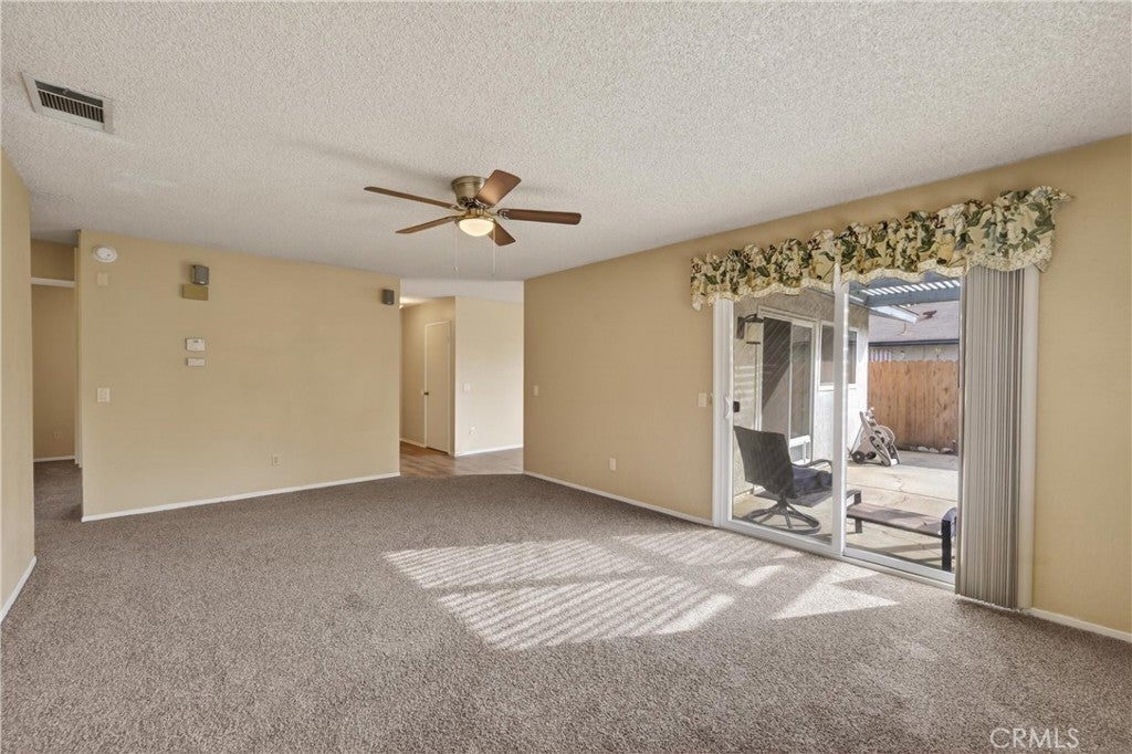 Well-maintained single-story home located in an established Moreno Valley neighborhood. This property offers a functional layout with spacious living areas, neutral finishes, and abundant natural light throughout. The main living space flows seamlessly into the dining area and kitchen, creating a practical and comfortable setup for everyday living. Sliding glass doors open to the backyard, providing easy indoor-outdoor access. The kitchen features white cabinetry, ample counter space, and views of the yard. Bedrooms are generously sized and versatile. The primary bedroom offers a comfortable retreat with convenient access to an updated bathroom. Secondary bedrooms provide flexibility for guests, home office use, or additional living space. Bathrooms feature updated vanities, modern lighting, and clean finishes. The backyard includes a covered patio, grassy area, and mature greenery, offering a private and usable outdoor space. Additional highlights include an attached two-car garage and strong curb appeal. Conveniently located near schools, parks, shopping, and commuter routes. Home is move-in ready and priced to sell!