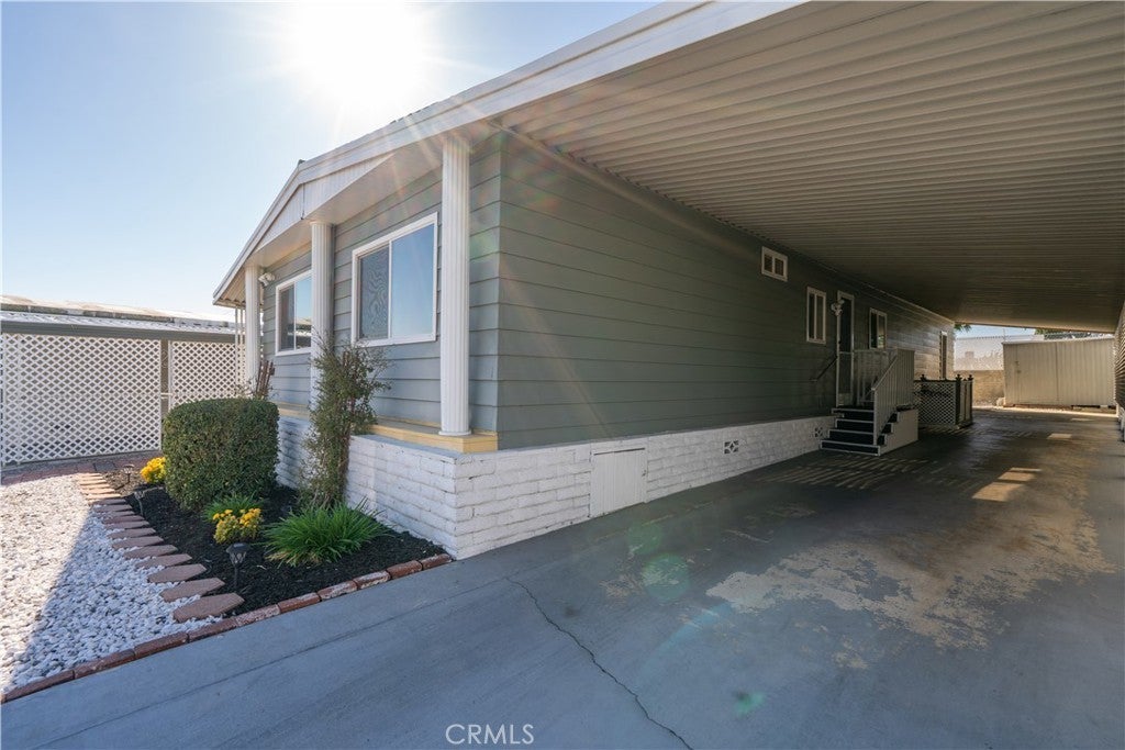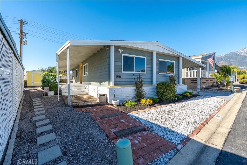 Welcome to resort-style living in the highly desirable Alta Laguna 55+ community, located in the beautiful city of Rancho Cucamonga. This move-in ready manufactured home offers 3 spacious bedrooms, 2 bathrooms, and 1,440 sq ft of comfortable living space, perfectly situated on a quiet cul-de-sac within a gated community. The home features a bright, open layout with generously sized rooms throughout, enhanced by custom shelving in the dining area and guest bedroom, offering both style and smart storage. An indoor laundry room adds everyday convenience, and the home has been lovingly maintained and is truly ready for its next owner. Outdoor highlights include two storage sheds and a covered carport with space for 3+ vehicles, providing ample parking and storage. The Alta Laguna community offers exceptional, resort-style amenities including a pool and spa, fitness center, putting green, billiards room, movie theater, library, banquet hall with full kitchen, and private access to the Pacific Electric Trail ideal for walking, biking, and enjoying the outdoors. This is a wonderful opportunity to enjoy low-maintenance living in a prime Rancho Cucamonga location, surrounded by comfort, convenience, and an active lifestyle. You truly have to see it to appreciate its beauty.