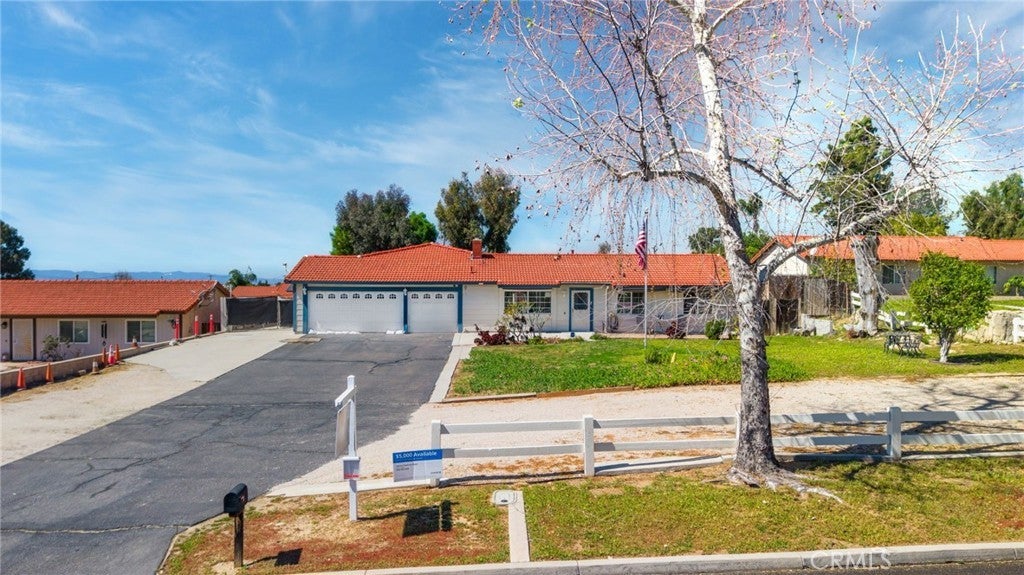 Welcome to 12471 Sage Grouse Ln., Moreno Valley — a rare single-story ranch-style home located in North Moreno Valley on a quiet street, situated on an expansive 20,000+ sq ft lot. This 4-bedroom, 3-bathroom home offers approximately 2,010 sq ft of living space and a versatile layout ideal for multigenerational living. One of the standout features of this property is the permitted additional primary suite, thoughtfully designed with accessibility in mind and featuring its own private living area, walk-in shower, and walk-in closet, making it perfect for extended family or guests. As you enter the home you are welcomed by a spacious living room, large dining area, and a kitchen overlooking the backyard with ample cabinet and counter space, while the family room offers built-in storage and a comfortable gathering space. On the opposite side of the home you will find three additional bedrooms including the main primary bedroom with its own bathroom. The home also features a couple separate AC units allowing for independent climate control and energy efficiency between different areas of the home along with central A/C and heating. Outside, the property truly shines with incredible space and functionality including RV parking in both the front and backyard with RV hookups, a three-car attached garage, plus an additional two-car detached garage in the backyard perfect for extra vehicles, storage, recreational toys, or a workshop. The front of the home allows parking for numerous vehicles while the expansive backyard offers patio space and endless possibilities for landscaping, entertaining, or adding a pool. Additional highlights include PAID OFF solar with 14 panels installed in 2022, a well-maintained septic system, abundant windows and high ceilings throughout, single-story living with no stairs, and a low tax area with no HOA. Conveniently located near schools, shopping, and freeway access, this home offers space, flexibility, and incredible potential for buyers looking to make it their own. Schedule your private viewing!