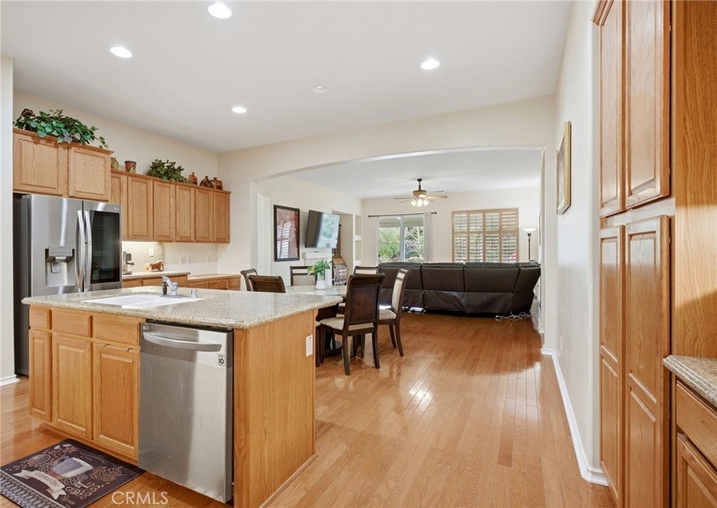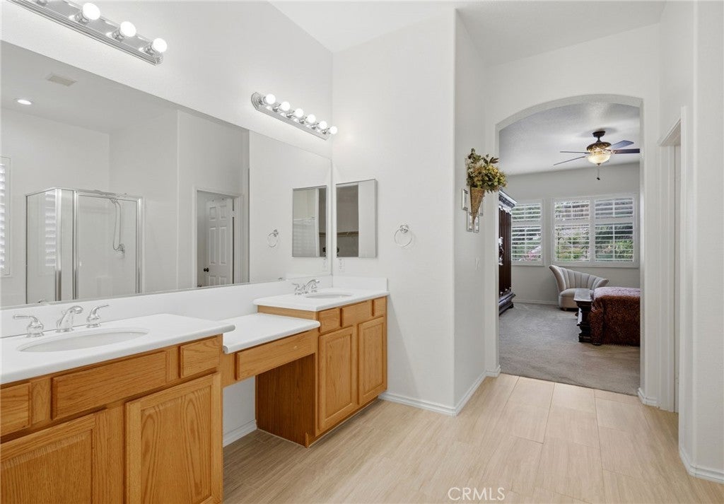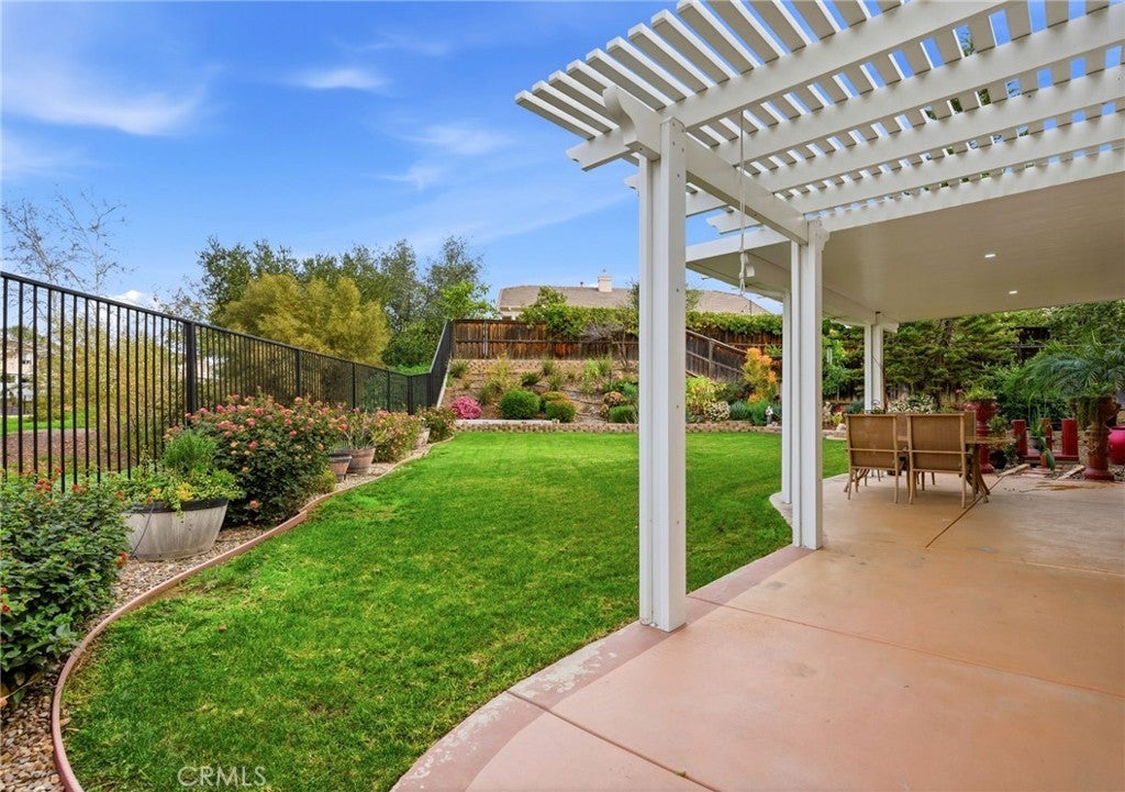 Highly desirable Autumn Ridge Home in the prestigious Orangecrest master planned community. This residence boasts award winning Architecture by Bassenian Logoni. Designed for today's living, this open floor plan has numerous living spaces. Generous great room serves as a focal point which easily connects with the large gourmet kitchen. Built by Woodside Homes of Southern California better by design. This top tier single story home features Stunning 10ft ceilings throughout. With four bedrooms, two bath and 2,470 square feet on a spacious homesite backed up to a green belt arroyo, this home offers privacy and luxury. The primary suite is a private retreat with a large walk-in closet, a soaking tub, a separate shower, and a double vanity. The additional bedroom are situated on the opposite side of the home, ensuring maximum privacy for guests and teenagers. The beautiful backyard is perfect for enjoying Southern California's climate, with an Alumawood patio cover for family gatherings. The wonderful community of Orangecrest offers highly rated schools, a community center with library and acres of parks makes for a relaxing evening walk. Nearby shopping and restaurants adds to the convenience of the Orangecrest Living.