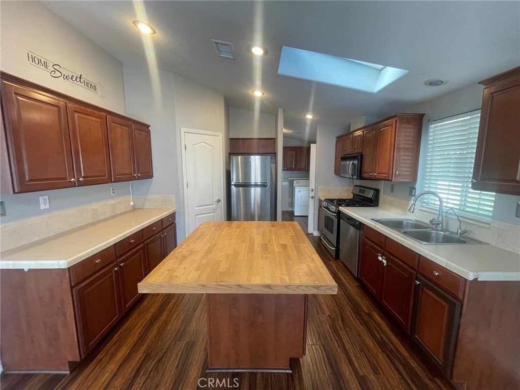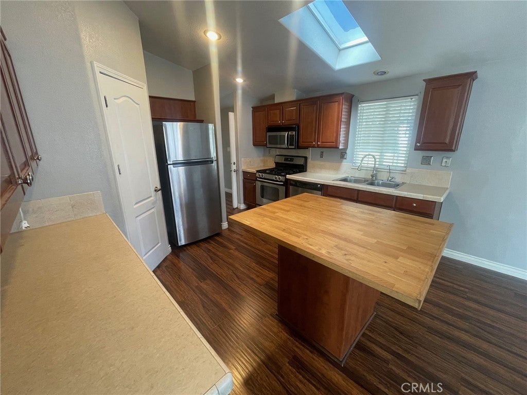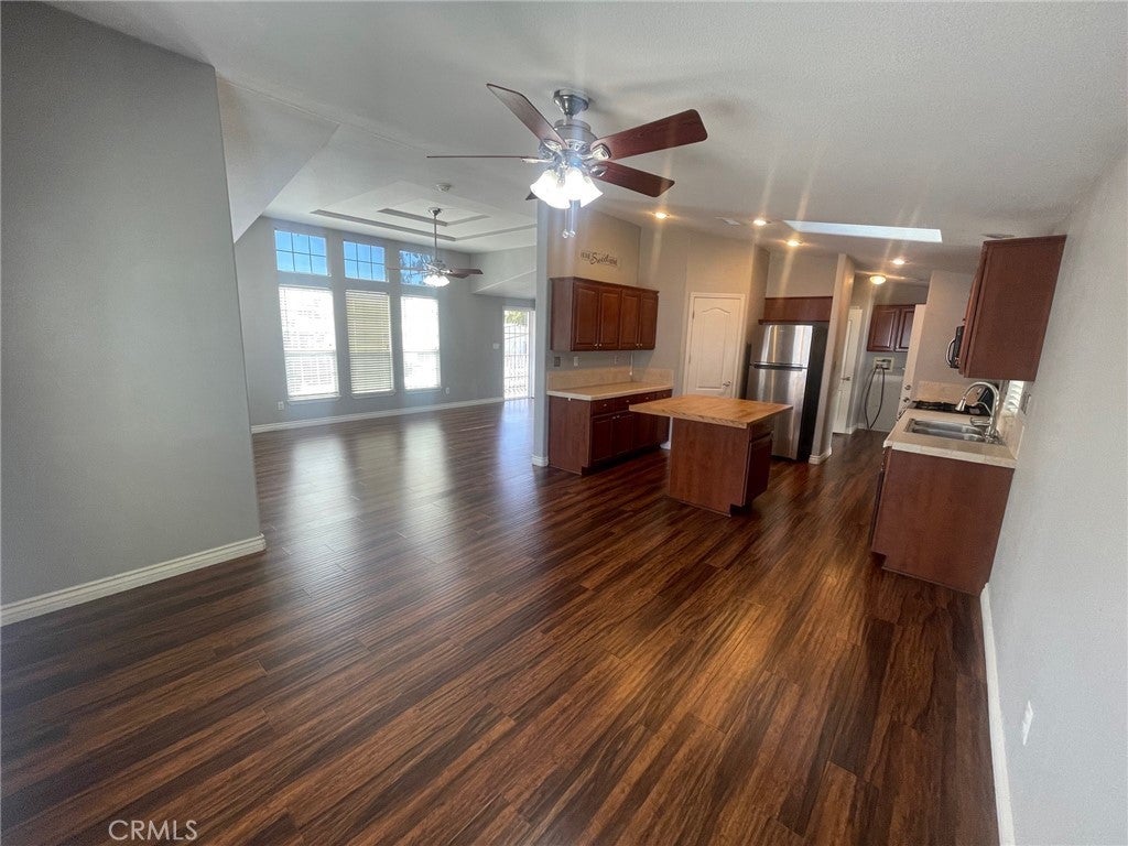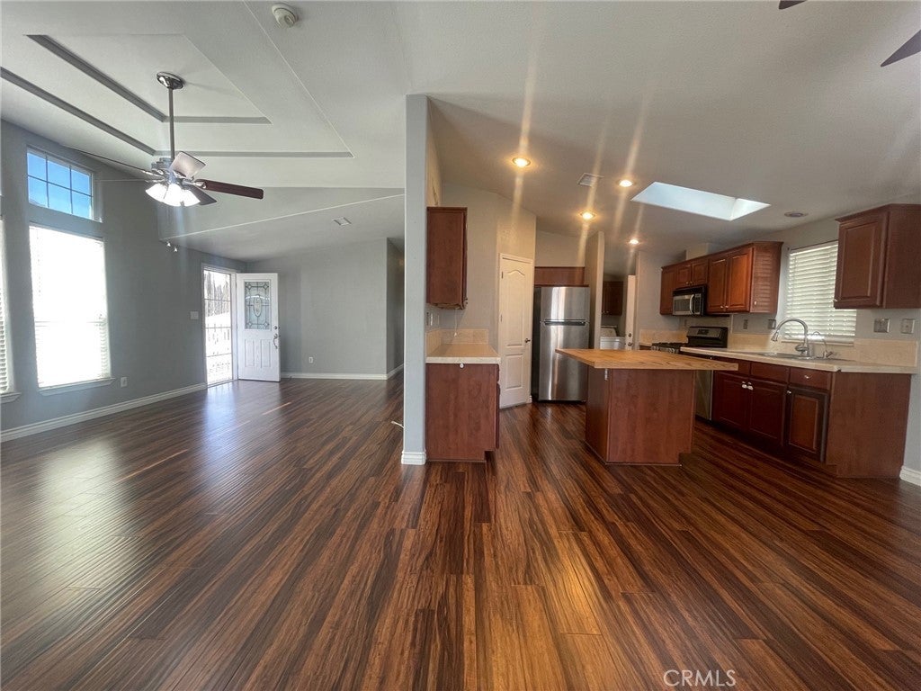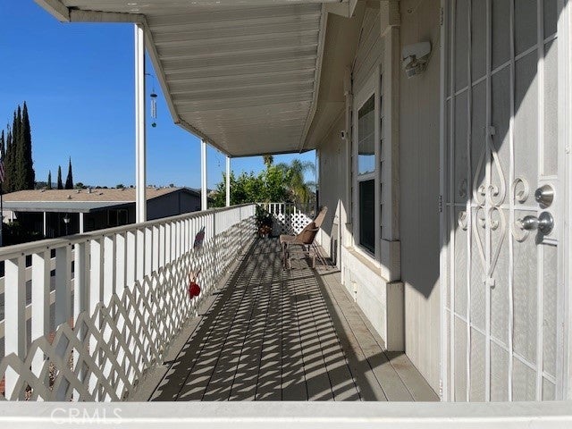Welcome to this well maintained 2006 manufactured home located in the desirable gated community of Rancho Caballero in Riverside. This 3-bedroom, 2-bathroom home offers approximately 1,352 square feet of comfortable living space with high ceilings and a bright, inviting layout. Laminate flooring runs throughout the living room, dining room, kitchen, and hallways, creating a cohesive and stylish feel. The kitchen features stainless-steel appliances along with ample cabinet and counter space. An indoor laundry room adds everyday convenience. Outdoor living is a highlight, with a wrap-around porch perfect for relaxing or entertaining. The low-maintenance yard includes gravel landscaping, a small grass area ideal for pets, and a designated gardening space. Two storage sheds provide additional storage, while the covered 3-car tandem carport offers plenty of parking. Residents of Rancho Caballero enjoy resort-style amenities including a swimming pool, tennis courts, pickleball courts, playground, and dog park. Take in scenic views of Mockingbird Canyon while enjoying the privacy and security of this gated community, conveniently located near shopping, dining, and major freeways. This home offers an excellent blend of comfort, functionality, and community living.