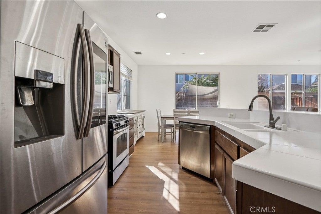 Welcome to this warm and inviting 3-bedroom, 2.5-bath home, ideally located on a peaceful cul-de-sac in the desirable Coronado community of Riverside—just a short walk to La Sierra University. The open floor plan flows seamlessly to the back patio, creating an easy indoor-outdoor connection perfect for everyday living and entertaining. All flooring throughout the home is brand new, and the upstairs bedrooms are thoughtfully equipped with remote-controlled blackout window blinds for added comfort and privacy. An EV charger adds modern convenience for electric vehicle owners. The spacious backyard offers flexible space for a play area, relaxing, or gathering around the firepit. Residents enjoy access to two community pool areas along with a nearby dog park. Conveniently close to the 91 Freeway, shopping, and dining, this home delivers the perfect blend of comfort, community, and convenience.