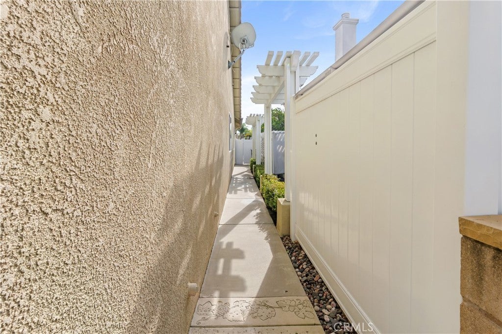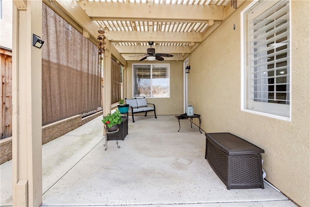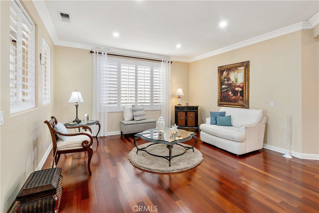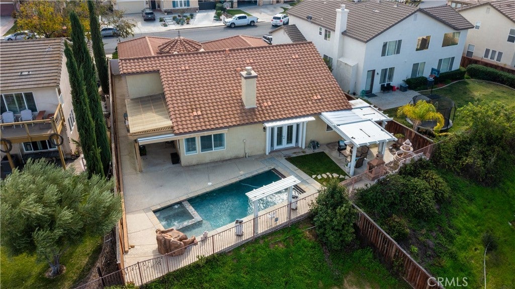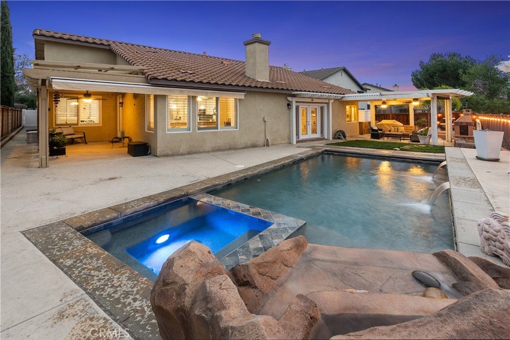 Welcome to 26313 Palm Tree Lane - a rare, completely upgraded and meticulously maintained single-story sanctuary in the heart of Murrieta. From the moment you arrive, you’re greeted by a private gated courtyard with a tranquil fountain, setting the tone for the elegance that awaits inside. Step through the front door into a stunning rotunda foyer, where custom inlaid tile accents seamlessly blend into rich Brazilian cherrywood floors, all crowned by custom shutters and crown molding throughout the home. This thoughtfully designed 4 bedroom, 3 bath residence offers exceptional flexibility and privacy. Two living rooms and a formal dining space offer entertaining space for a crowd and small, intimate gatherings as well. One bedroom and full bath are located in their own separate wing, making it ideal for guests, multi-generational living, or grown children who want space of their own. The primary suite is a true retreat, privately situated within the home and featuring dual closets, dual sinks, a soaking tub, separate shower, private water closet, and French doors that open directly to the backyard, patio, and resort-style pool and spa. The third bedroom features a walk in closet, and the fourth bedroom is currently configured as a home office, but easily adapts to a sitting room, library, nursery, or flex space to suit your lifestyle. The kitchen and bathrooms have been completely remodeled, offering modern finishes while maintaining the home’s timeless appeal. Designed for both relaxation and entertaining, the backyard is a private resort oasis. Enjoy a custom heated pool with a dramatic rock grotto and cascading waterfall, complementary lighting, and an attached spa with waterfall spillover. An automated solid pool cover prioritizes safety and simplifies maintenance. Two separate covered patio areas—both with ceiling fans—include roll-down shades in one space and a fireplace, fountain, and grill area in the other, creating year-round outdoor living options. The pool equipment is discreetly enclosed, enhancing the peace and tranquility of the setting while protecting it from the elements.