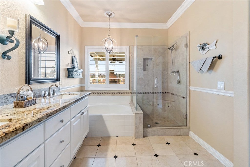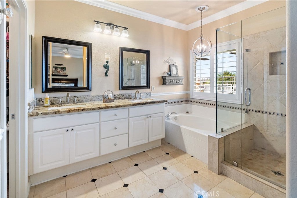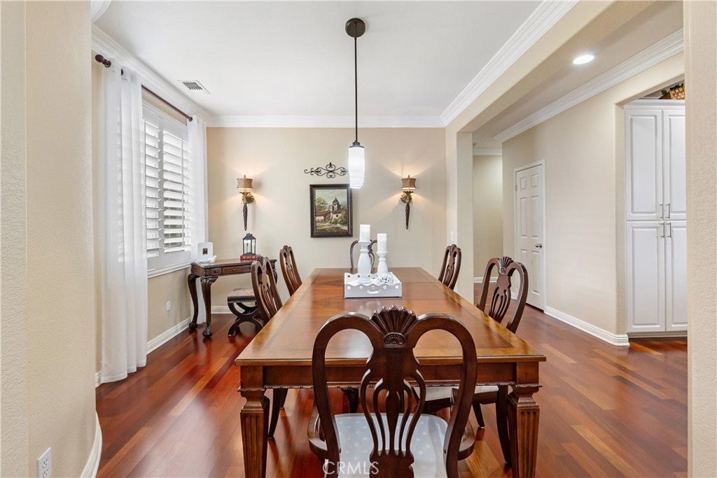 • Interior FeaturesBreakfast Bar, Ceiling Fan(s), Crown Molding, Separate/Formal Dining Room, High Ceilings, Recessed Lighting, Primary Suite, Walk-In Closet(s), Entrance Foyer