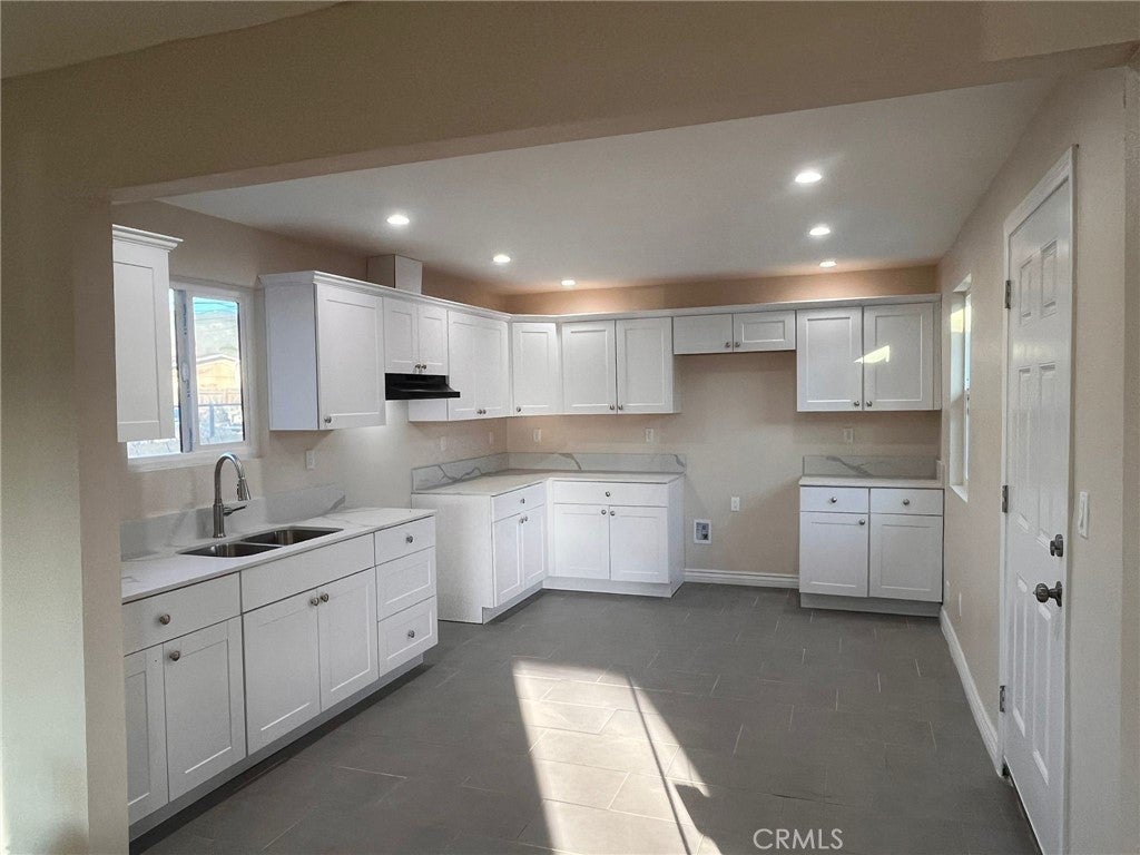 Beautiful 4 Bedroom 2 bathroom property with a detached 2 car garage. This home has been beautifully remodeled & is perfect blend of modern finishes & endless potential. Brand New Roof. Some of the other Upgrades include New Waterproof Laminate Flooring throughout, New recessed lighting, fresh paint inside & out. The kitchen has been renovated w/ contemporary cabinetry, new quarts stone counters, new garbage disposal, new pull out faucet. Bathroom updates include custom built shower, beautiful mosaic tile walls w/ elegant tile design, new vanities, new toilets, all new plumbing fixtures & light fixtures. Perfect FHA home must see