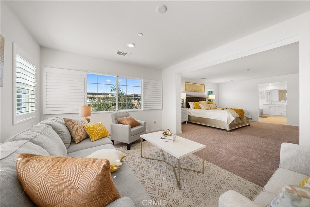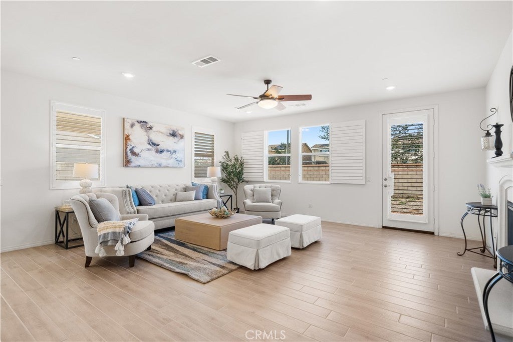 Welcome to this beautifully maintained, lightly lived-in home in almost new condition, with numerous thoughtful improvements throughout. The interior features tile flooring on the first level and premium carpet upstairs, upgraded windows with elegant wood shutters, and a kitchen finished with quartz countertops. Professionally designed front and backyard landscaping create inviting and functional outdoor spaces. The flexible floor plan offers one bedroom and one full bathroom on the first level, along with a spacious open living area ideal for a home office, fitness space, or optional bedroom conversion. The second level includes four additional bedrooms, a den, and two bathrooms, including a generously sized primary suite with exceptional space and comfort. The home has been occupied less than six months total over the past eight years, offering a rare opportunity to own a residence that feels fresh and well preserved. Located in the award-winning Norco school district within the desirable Riverbend area, a move-in-ready home ready for its next chapter!