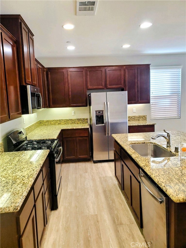 GORGEOUS 4 BEDROOM 3 BATHROOM HOME! THIS PROPERTY OFFERS SO MANY UPGRADES. THE KITCHEN HAS GRANITE COUNTER TOPS, STAINLESS STEEL APPLIANCES AND UNDER CABINET KITCHEN LIGHTING. CUSTOM FIT FAUX BLINDS AND CEILING FANS ARE INSTALLED THROUGHOUT THE HOME. INDOOR LAUNDRY ROOM WITH WASHER AND DRYER INCLUDED! FIRST FLOOR HAS 1 BEDROOM AND FULL BATHROOM. THE PROPERTY HAS SOLAR PANLES AS WELL. THE COMMUNITY AREAS HAVE, CLUBHOUSES, POOLS, SPAS, SPORTS PARK, REC ROOMS....AND MUCH MORE! GARDENER IS INCLUDED!
