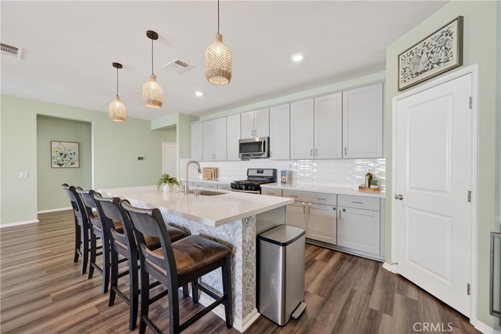 Welcome to this turnkey home in a prime Riverside location, close to the Hidden Valley Shopping Center, River Trails, Rutland Park, the Van Buren Golf Course and exciting upcoming developments, making it a smart investment in your family’s future and a comfortable place to call home. This beautifully maintained property offers paid-off solar, NO HOA, and four spacious bedrooms, including a primary suite with a large walk-in closet and private en-suite bath. The living room features an electric fireplace that creates a warm ambiance and provides additional heat. The thoughtfully upgraded kitchen is designed for both everyday living and entertaining, featuring a large island, gas burner stove for those who love to cook, and a custom coffee nook complete with a mini fridge. Enjoy the feel of new construction without the bare-bones backyard or added expense. Step outside to a full-length Alumawood patio cover with ceiling fans, creating the perfect setting for outdoor gatherings. The backyard features beautiful stamped concrete and is fully hardscaped and landscaped, along with the front and side yards, offering both style and low maintenance. Additional upgrades include a water softener and a backyard projector with screen, perfect for summer movie nights at home. This is one of the last newer builds in the area offering gas cooking, upgraded finishes, and a finished outdoor space that is truly move-in ready.