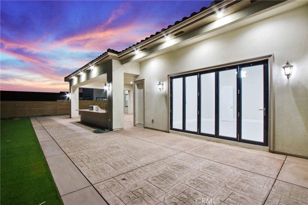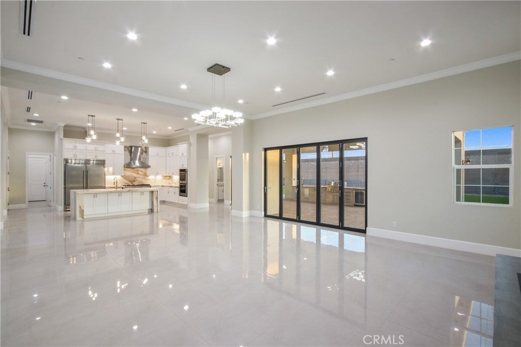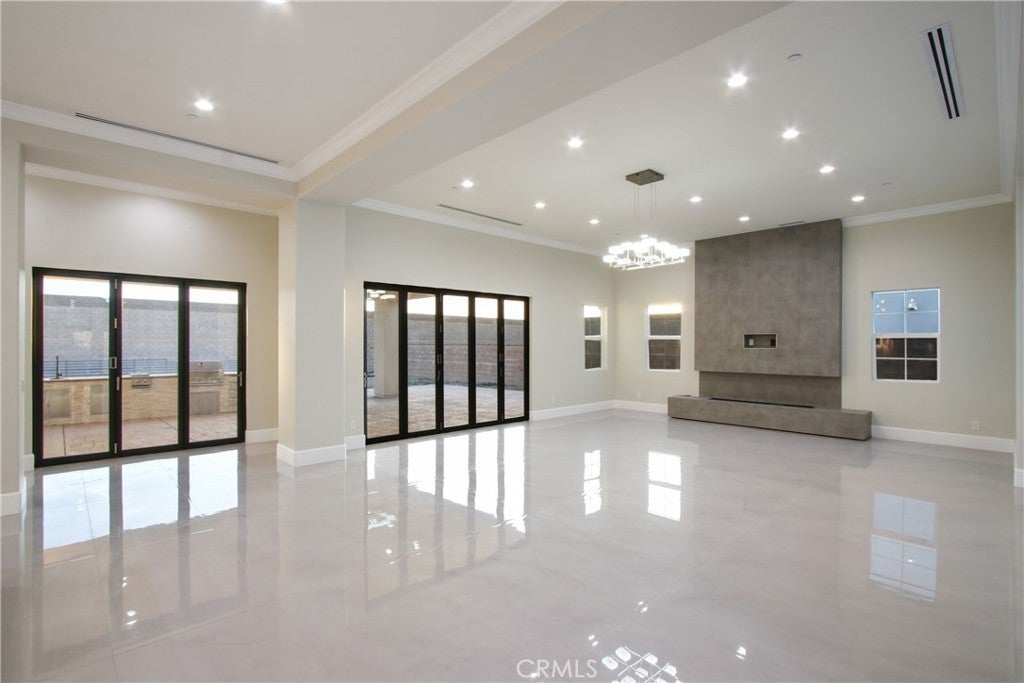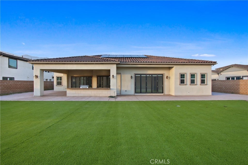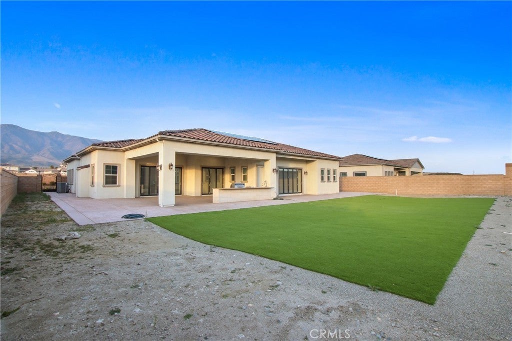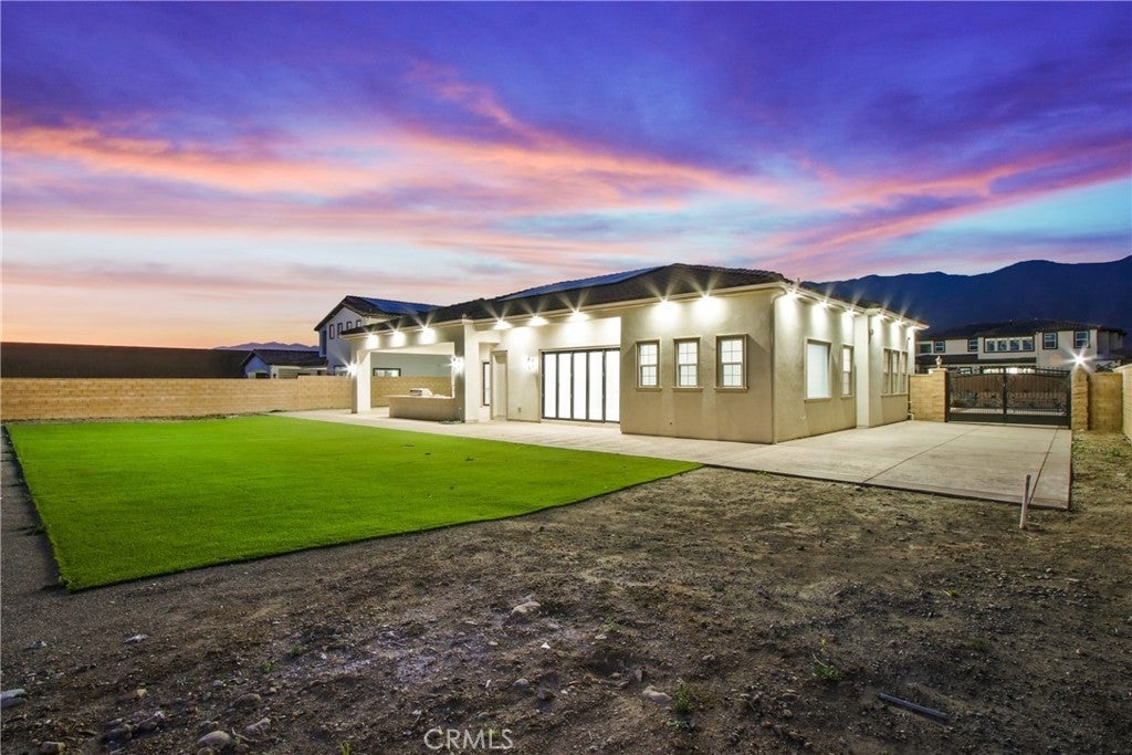 Welcome to 13715 Copley Drive, Rancho Cucamonga, a stunning brand-new luxury estate offering 4 bedrooms, 5.5 bathrooms, and 4,554 sq ft of refined living space on a ½-acre horse-zoned lot in an exclusive enclave of custom homes. Designed for modern living, entertaining, and multi-generational flexibility, this residence impresses from the moment you enter through the 8-foot custom double entry doors, opening to soaring ceilings and a bright open-concept floor plan. Expansive living areas are enhanced by three bi-folding glass doors that seamlessly connect indoor and outdoor spaces. The chef’s kitchen is a showpiece featuring high-end Forno appliances, premium finishes, and generous workspace—ideal for hosting large gatherings. Each bedroom includes its own private en-suite bath, while a striking custom fireplace feature wall adds warmth and architectural elegance. Finishes throughout include Spanish porcelain slab countertops, full-height shower walls, frameless stainless shower doors, and upgraded lighting and plumbing fixtures. Built with efficiency and comfort in mind, the home includes a fully paid solar system with a battery backup, dual-zone HVAC, and pre-wiring for smart home features. The outdoor space offers a resort-style setting with RV parking and double gates, stamped colored concrete, a built-in BBQ island, outdoor fireplace, and approximately 3,000 sq ft of premium artificial turf. The flat, usable lot provides excellent ADU potential, while front landscaping features water-saving drip irrigation. Additional highlights include a low tax rate, low HOA, city sewer connection, stunning mountain views, and access to the highly regarded Etiwanda School District. This is a rare opportunity to own a new luxury estate on a half-acre lot in one of Rancho Cucamonga’s most desirable new developments.