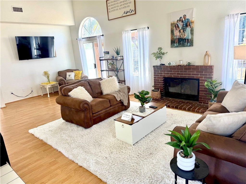 Welcome to Orangecrest! This delightful 3-bedroom, 2.5 bathroom home spans 1,760 square feet across two stories and is ready for you to move in. Situated in the highly sought-after Orangecrest neighborhood of Riverside, it's within walking distance of award-winning elementary and middle schools and MLK High School. Just a short stroll from Orange Terrace Park, the library, and a community center surrounded by sports fields for year-round fun. As you enter the home, the foyer opens to a spacious living room, perfect for a reading nook by the timeless brick fireplace, along with a cozy TV area and high vaulted ceilings. The kitchen offers ample cabinet space and a separate walk-in pantry, extending into a dining area that comfortably fits a family-style table and an office nook or study corner. Up the newly carpeted stairs, the primary bedroom awaits, offering generous space, natural light, a wall-length closet with mirrored doors, and views of the orange groves. The primary bathroom suite features dual vanity sinks, a newly reglazed shower-tub combo, new laminate flooring, and a separate toilet area. Down the hall, you'll find a small loft with storage, two additional bedrooms (one with a spacious walk-in closet), and new laminate with freshly re-glazed shower-tub combo in the hallway bathroom. The back yard sets the tone to enjoy outdoor meals under the large covered gazebo with decking and hanging lights while you relax in privacy with no neighbors behind you. This home boasts solid construction, with a new (2022) LENNOX 4-ton air-conditioning system, LENNOX Ultra Smart Thermostat, new (2022) LENNOX furnace, new (2022) water heater, interior and exterior paint (2023), Garage door system (2023) and the whole second story has new carpet and laminate (2023) Don't miss the chance to own this beautiful home in a prime Orangecrest location. SELLERS ARE MOTIVATED! Call today!