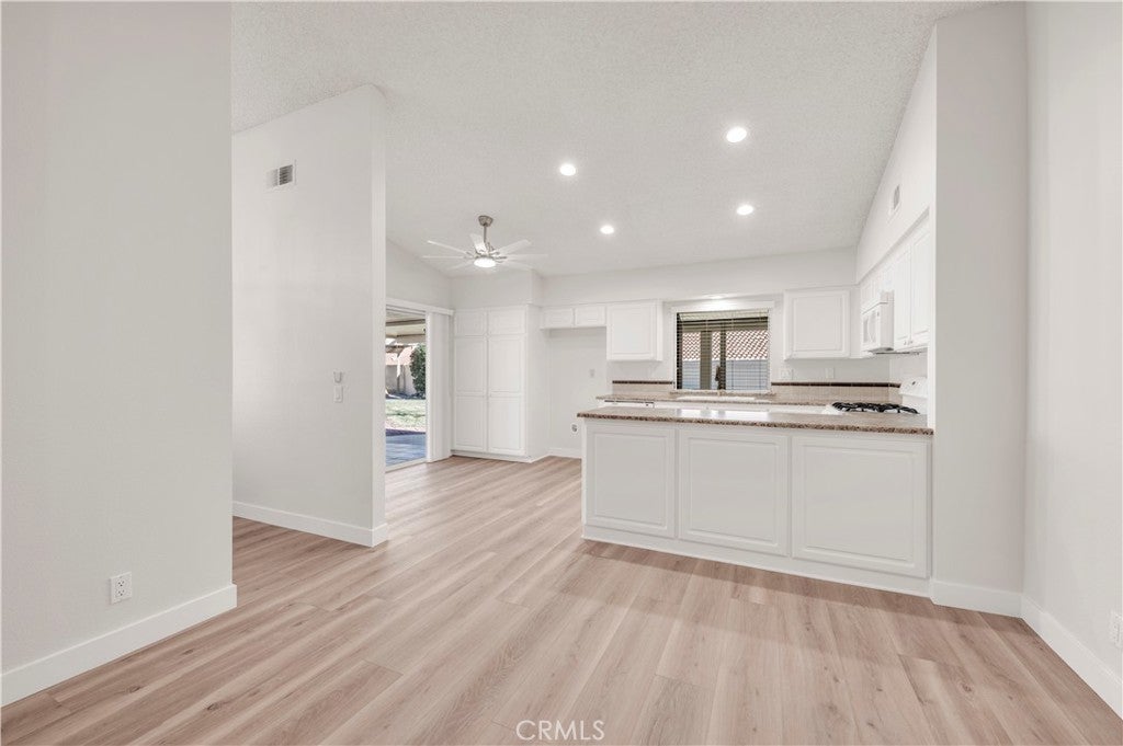 Welcome to this updated home in a peaceful 55+ neighborhood of Menifee. This turn key home underwent a recent renovation with updated flooring, baseboards, carpet, light fixtures, ceiling fans and interior paint. Upon entering you are greeted by vaulted ceilings and a cozy fireplace in a living room with numerous windows offering an abundance of natural light. Rounding out the rest of the house are three sizable bedrooms offering brand new carpet and ceiling fans, two full bathrooms, and an indoor laundry room. Venture out back and discover the large covered patio overlooking the manicured yard with the focal point being the rock water fountain. Additional details include an attached two car garage with attic storage, a driveway offering plenty of space for guests, a storage shed, and a new water heater. Conveniently located near shopping, dining, and the freeway, nearly everything you could want or need is a short drive away. Schedule your private showing today!