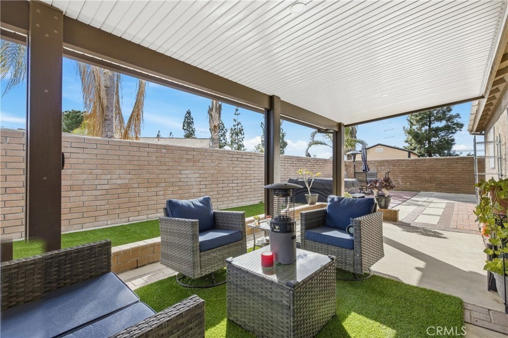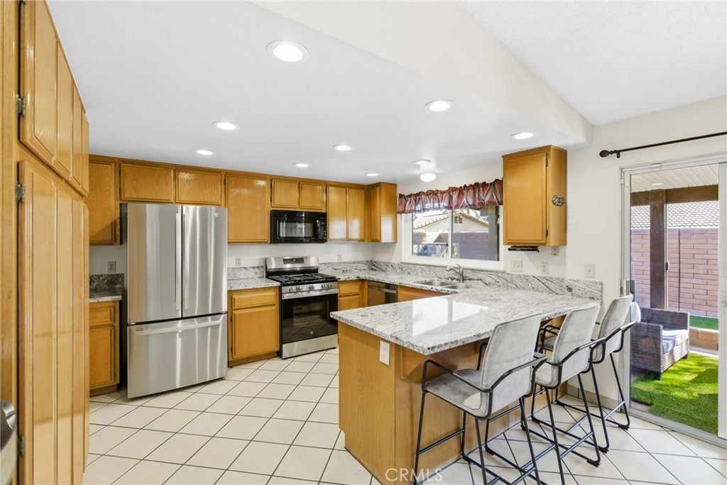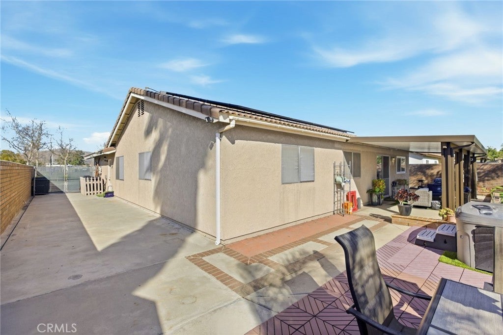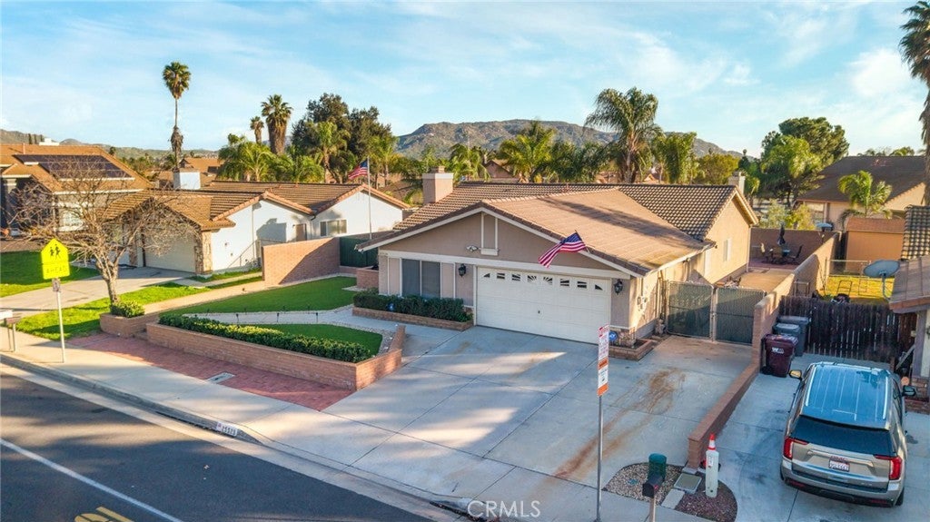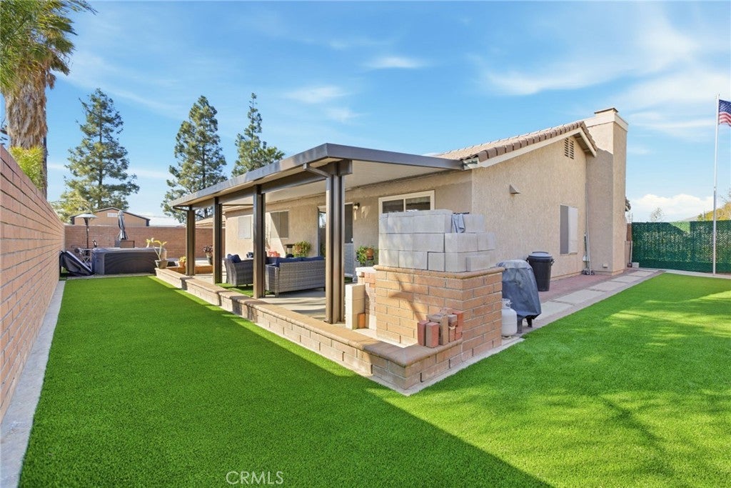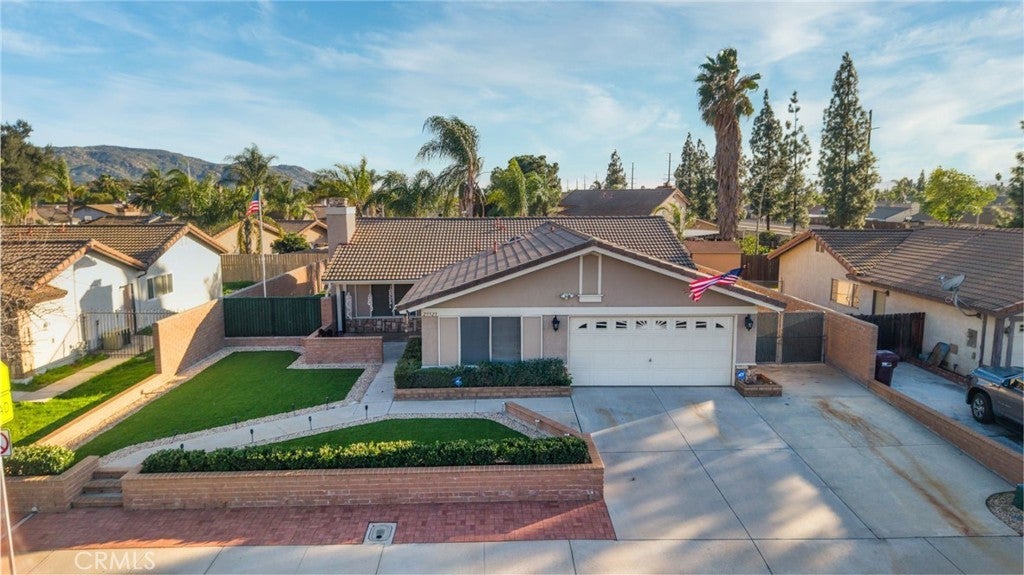 Welcome to 25529 Brodiaea Avenue, a beautifully maintained single-level home offering 4 bedrooms and 2 bathrooms in a desirable Moreno Valley neighborhood. From the moment you arrive, the stunning curb appeal sets the tone — gorgeous hardscape and rock details, newer sod, an elegant wrought iron fence with a privacy plant curtain, charming retaining walls with planters, and a cozy front porch perfect for slow morning coffee moments. There’s even extra parking for a third vehicle and an oversized side gate ideal for recreational toys. Step inside to an extra-large living room filled with natural light from oversized windows, complete with ceiling fans and a welcoming fireplace that anchors the space. The open kitchen features granite countertops, abundant cabinetry, and generous counter space — perfect for cooking and gathering — and flows effortlessly into a dining area with a built-in bookshelf/cabinet for added character and functionality. Toward the front of the home, you’ll find an oversized bedroom offering flexibility for guests, a home office, or multi-generational living. Down the hallway are two additional bedrooms and a full bathroom, along with an extra-large primary suite that serves as a private retreat, complete with dual sinks and its own en-suite bath. All bedrooms include ceiling fans, and tile flooring throughout the home provides easy maintenance and clean, seamless living. An indoor laundry room with cabinetry and an additional refrigerator adds everyday convenience. Step outside to your low-maintenance backyard oasis featuring artificial turf, retaining walls, large stepping slabs, and a spacious covered patio — the perfect setting for entertaining or peaceful outdoor relaxation. The included jacuzzi adds an extra special touch, making this backyard a true retreat. Recent upgrades include the air conditioning system, furnace, water heater, stove, and patio cover. The home is also equipped with solar that will be PAID OFF, a security camera system, and includes the washer, dryer, stove, microwave, and dishwasher. Conveniently located near parks, schools, shopping, and commuter routes, this move-in-ready home offers comfort, efficiency, and easy Southern California living in Moreno Valley.