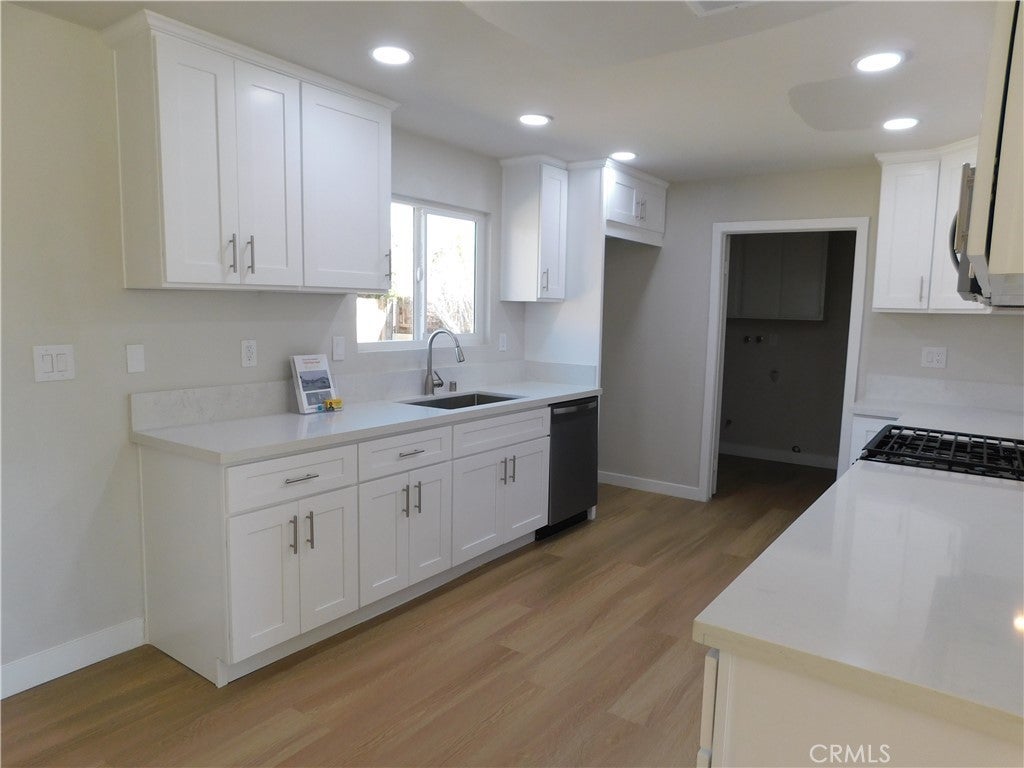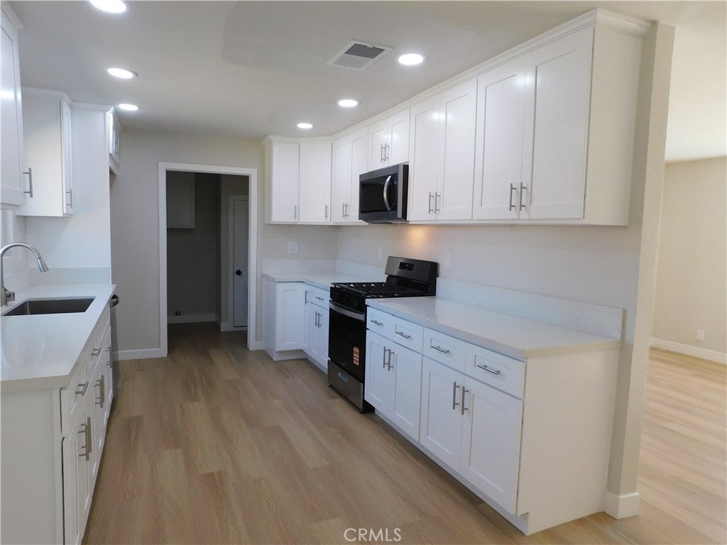 Beautifully updated home in the City of Adelanto featuring a spacious open floor plan with 3 bedrooms, 2 bathrooms, and an attached 2-car garage. This move-in ready property has been thoughtfully upgraded throughout. The kitchen showcases new cabinets, elegant quartz countertops, and brand-new appliances including stove, oven, microwave, and dishwasher, along with new laminate flooring that flows seamlessly through the home. Additional upgrades include dual-pane Low-E windows, recessed lighting, new electrical outlets, updated light fixtures, and fresh interior and exterior paint. Both bathrooms have been tastefully remodeled with new tile, modern vanities, and updated fixtures, creating a clean and contemporary feel. Perfect for a growing family or first-time buyer seeking a turnkey home. Conveniently located near schools, shopping, and major commuter routes.
