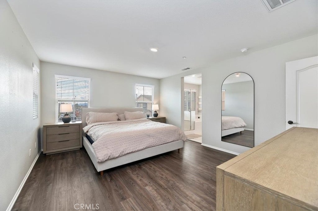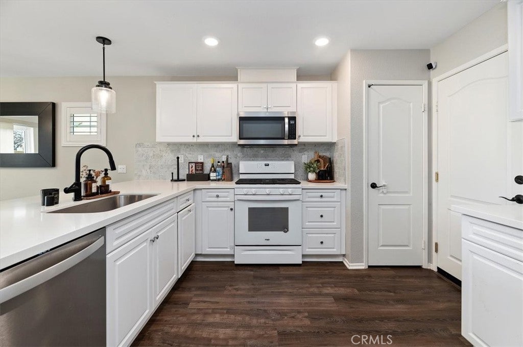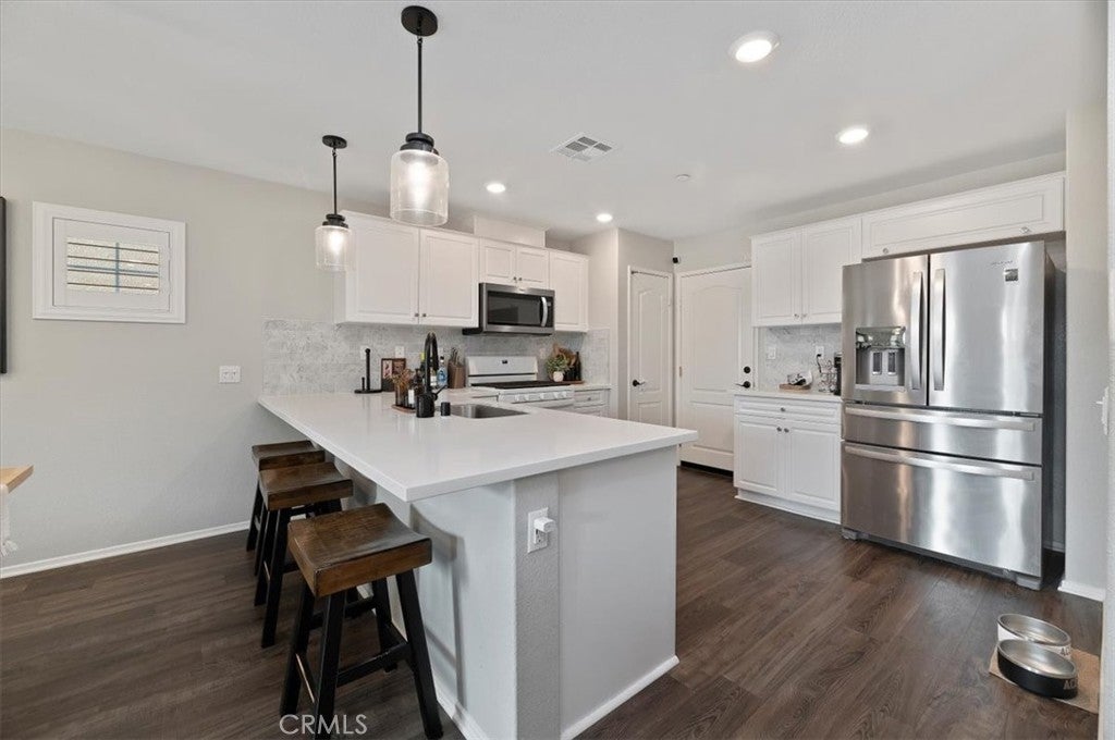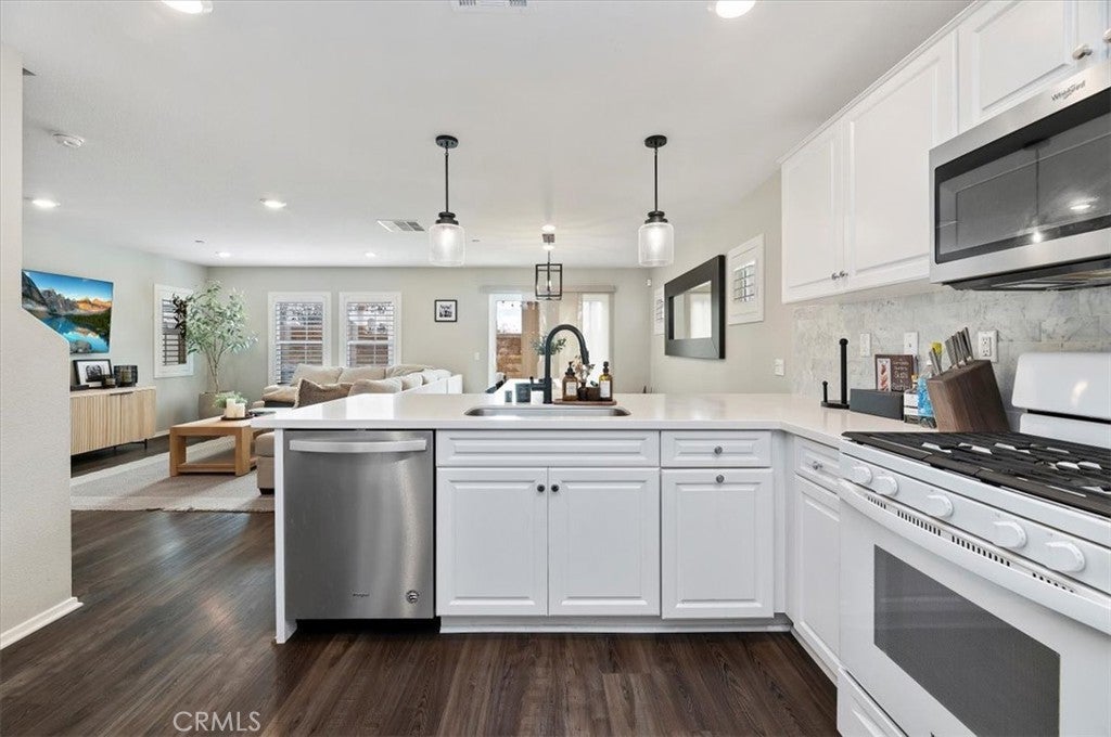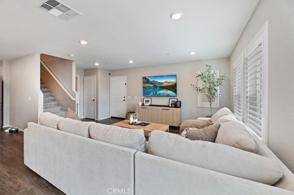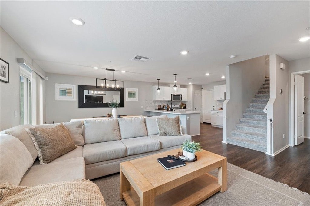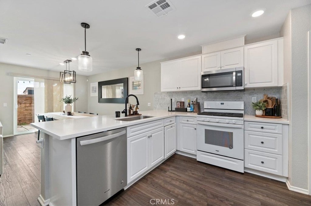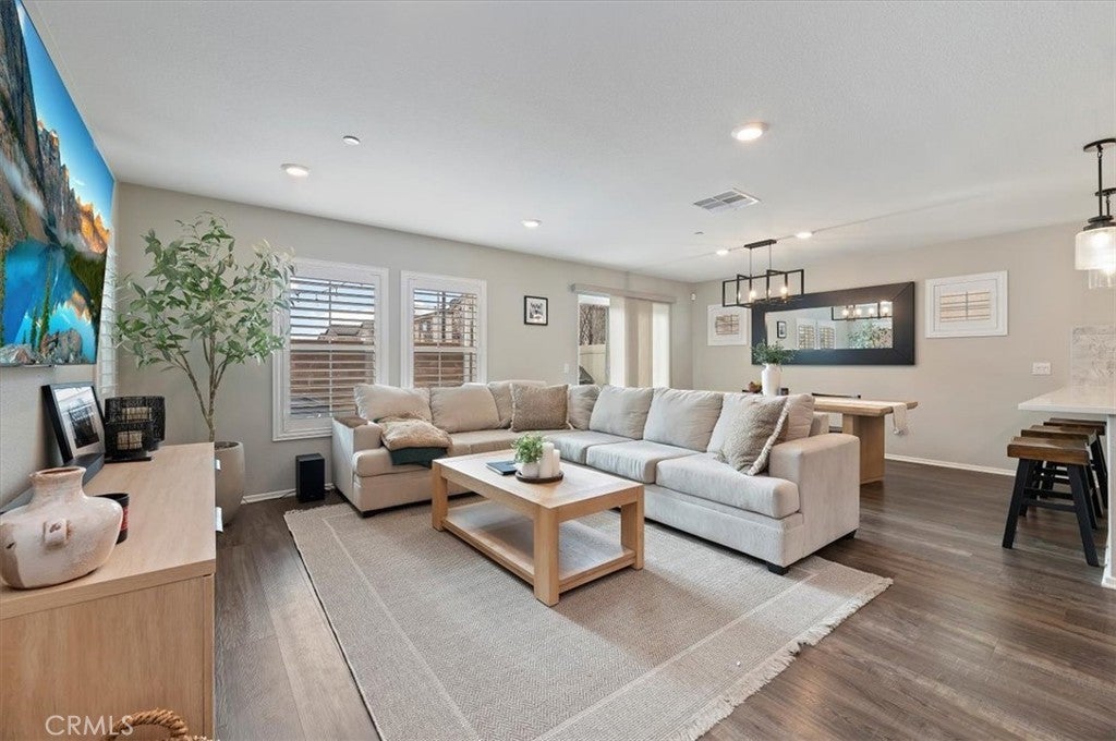 Welcome to this beautifully maintained 3-bedroom, 2.5-bath detached townhome in the highly desirable Westpark community of Murrieta. Built in 2020, this move-in-ready home offers 1,557 sq ft of thoughtfully designed living space with modern finishes throughout. OWNED SOLAR provides energy efficiency and added value from the start. Step inside to an open-concept floor plan filled with natural light, recessed lighting, and stylish wood-look flooring. The spacious great room flows seamlessly into the dining area and recently updated kitchen, creating the perfect space for entertaining. The newer kitchen features sleek quartz countertops, a custom backsplash, and stainless steel appliances, blending both function and style. Upstairs, you will find all three generously sized bedrooms, including a private primary suite with a walk-in closet, dual sinks, and a beautifully appointed en-suite bath. A convenient upstairs laundry room adds to the home’s smart layout. Enjoy outdoor living in the low-maintenance backyard patio, ideal for relaxing, grilling, or creating your own cozy retreat. The attached 2-car garage and energy-efficient features provide added value and convenience. Located in a well-kept community with a low HOA, residents enjoy access to a park, a playground, and picnic areas. Close to award-winning Murrieta schools, shopping, dining, and commuter access, this home offers the perfect balance of comfort and convenience. Modern, updated, and turnkey, this is one you will not want to miss.