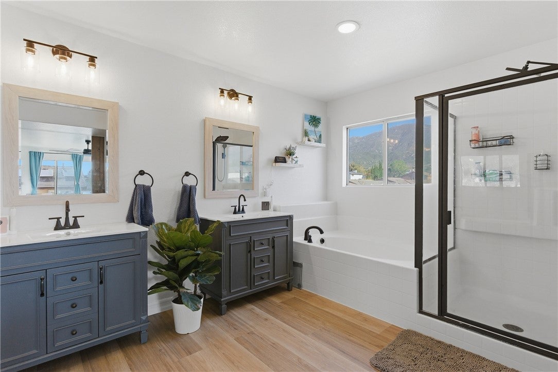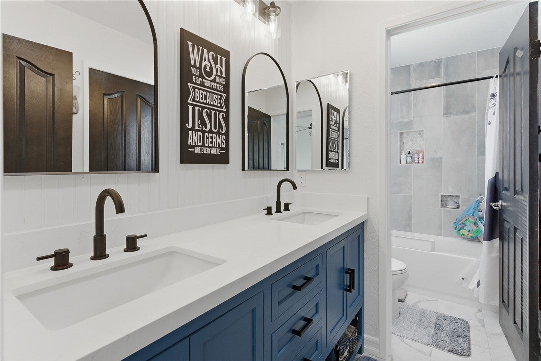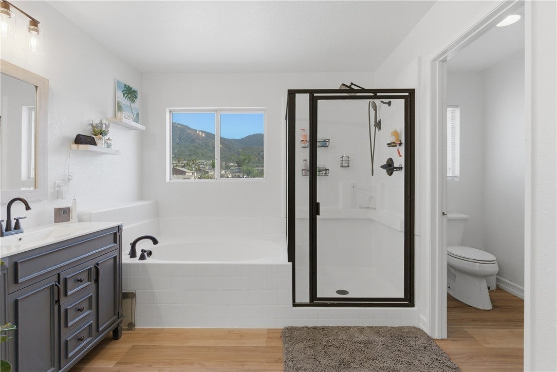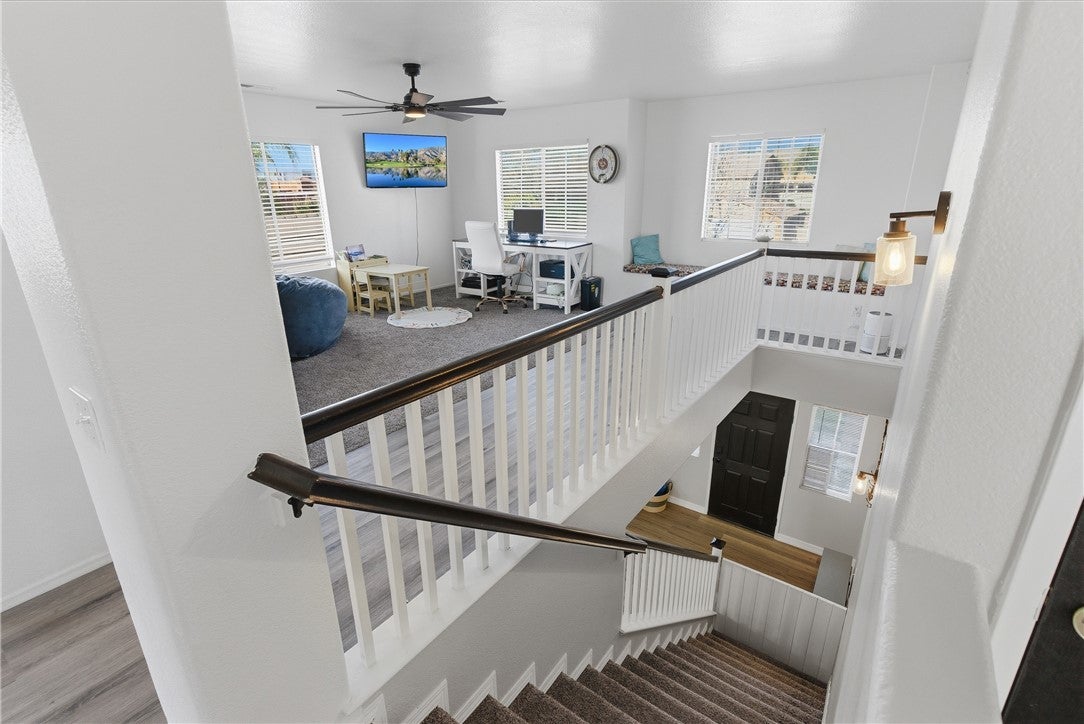 Looking for a remodeled home with a bedroom and full bath downstairs, a massive backyard, and NO solar or high tax rate? You just found it. This beautifully updated 4 bedroom, 3 full bathroom home offers the ideal combination of space, upgrades, and functionality. The thoughtfully designed floor plan includes a full bedroom and bathroom downstairs, perfect for guests, multi-generational living, or a private office space. Inside you’ll find updated flooring throughout, beautifully remodeled bathrooms, and a stunning custom-built fireplace with a designer mantle that creates the perfect focal point for the living area. Upstairs features a large loft offering the perfect flexible space for a second living room, media room, playroom, or home office. The additional upstairs bedrooms are generously sized and share an upgraded guest bathroom remodeled in today’s modern style featuring dual sinks, making busy mornings much easier. The spacious primary suite serves as a relaxing retreat and includes a large bathroom with dual sinks, a separate soaking tub, and a walk-in shower. Step outside to a large backyard with lush grass and a covered patio, perfect for entertaining, relaxing, or enjoying the outdoor space this oversized lot provides. The property also offers RV potential, giving you even more flexibility for storage, toys, or future possibilities. A rare opportunity to own a move-in ready home with upgrades, space, and a highly functional layout.