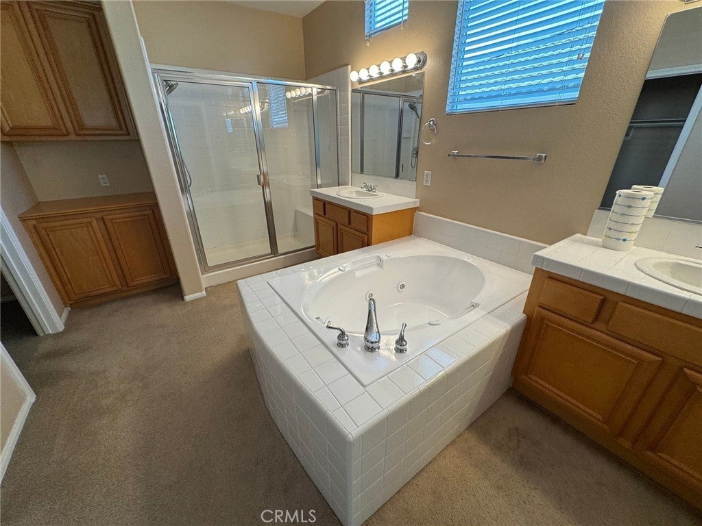 Highly Sought-After Home in The Oasis 55+ Resort Community — With Golf Cart Garage!Rare opportunity to own a beautifully designed 3-bedroom, 2-bathroom home in the premier gated community of The Oasis. This thoughtfully laid-out residence offers comfort, style, and functionality, all within a vibrant resort-style setting. The spacious kitchen is a true centerpiece, featuring a breakfast bar, oversized center island, abundant counter space, double ovens, and extensive cabinetry—perfect for entertaining or everyday living. The kitchen opens seamlessly to the family room, which can also serve as a sunny breakfast nook with direct access to the back patio. Enjoy elegant gatherings in the formal dining room and great room, highlighted by tray ceilings, architectural detailing, a cozy fireplace, and built-in media niches ready for your personal touch. The primary suite offers a spa-like retreat with: Generous walk-in closets - Dual vanities -Separate soaking tub - Walk-in shower - Dedicated wardrobe lighting -Secondary bedrooms are well-sized and versatile for guests, hobbies, or office space, with a conveniently located guest bath featuring a tub/shower combination. Additional features include: Large indoor laundry room with storage cabinets, Architectural archways and raised-panel doors, Window blinds, recessed lighting, and ceiling fans throughout, Peaceful, fully fenced backyard ideal for relaxing outdoors. Rare golf cart garage for added convenience and lifestyle enjoyment! The Oasis Community Amenities Include: Guard-gated entry, Championship golf course access, Resort-style clubhouse, Pool & spa, Fitness center, Tennis & pickleball courts, Social clubs, events, and walking paths, Beautifully maintained grounds and scenic surroundings. Experience the perfect blend of low-maintenance living and active lifestyle in one of Menifee’s most desirable 55+ communities.