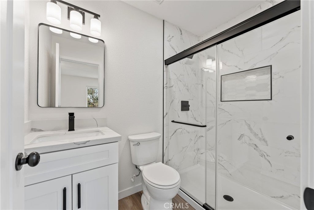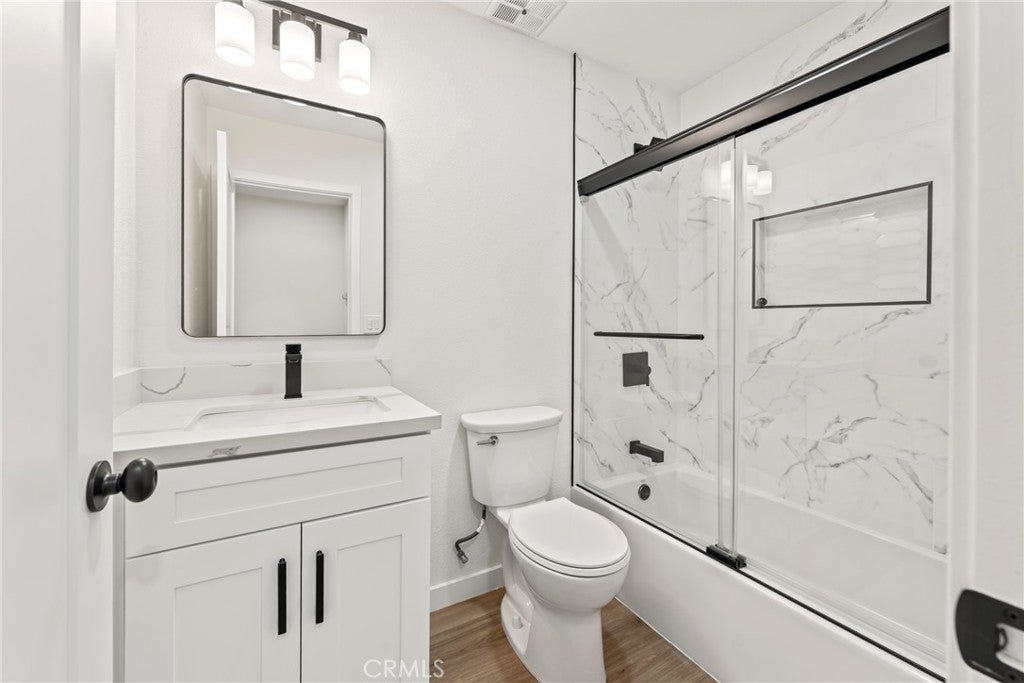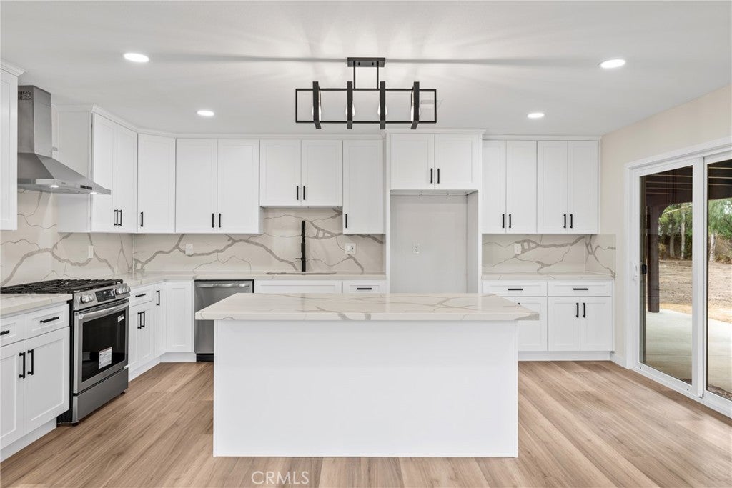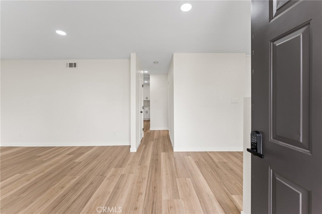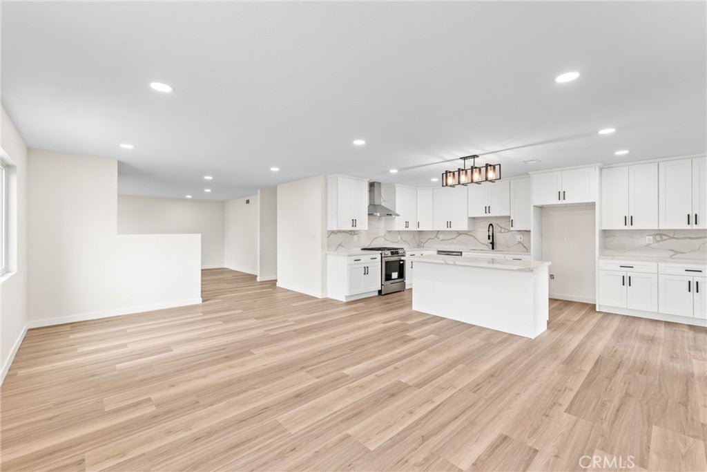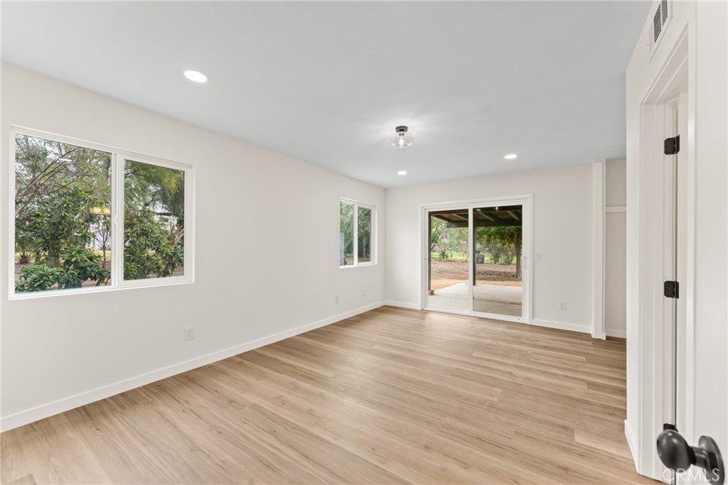 Fully Remodeled Open-Concept Home on Expansive 20,473 Sq Ft Lot with RV Access, ADU Potential & Dedicated Laundry Room Welcome to 4856 Poinsetta Place — a beautifully renovated 3-bedroom, 2-bath home featuring a bright open-concept layout and situated on an oversized 20,473 sq ft lot offering RV access and exceptional ADU or expansion potential (buyer to verify). The heart of the home showcases a stunning designer kitchen with white shaker cabinetry, crown molding, matte black hardware, white quartz countertops, and a full-height slab quartz backsplash. Stainless steel appliances, a modern chimney-style vent hood, and a spacious center island make this home ideal for entertaining. Wide-plank flooring flows seamlessly throughout the living areas, enhanced by recessed lighting and abundant natural light from sliding glass doors leading to the backyard. Both bathrooms have been fully remodeled with full-height marble-look tile surrounds, sleek matte black fixtures, quartz vanities, modern mirrors, and stylish glass enclosures—creating a cohesive, high-end aesthetic throughout. A spacious dedicated laundry/utility room features matching cabinetry, quartz counters, and a utility sink—adding both functionality and storage. Additional upgrades include updated electrical, apecks-repipe-plumbing, and a new heating system for peace of mind. The expansive lot offers ample parking, RV access, and outstanding potential for an ADU, guest house, workshop, or future development. Modern design, open living, functional upgrades, and room to grow—this is a rare opportunity in today’s market.
