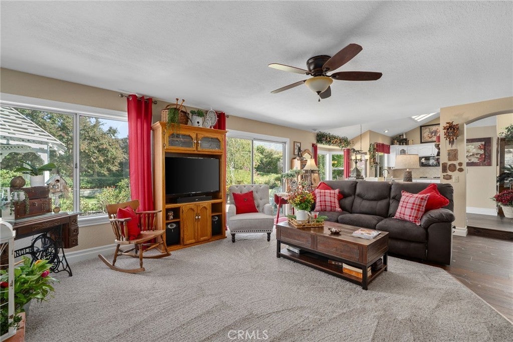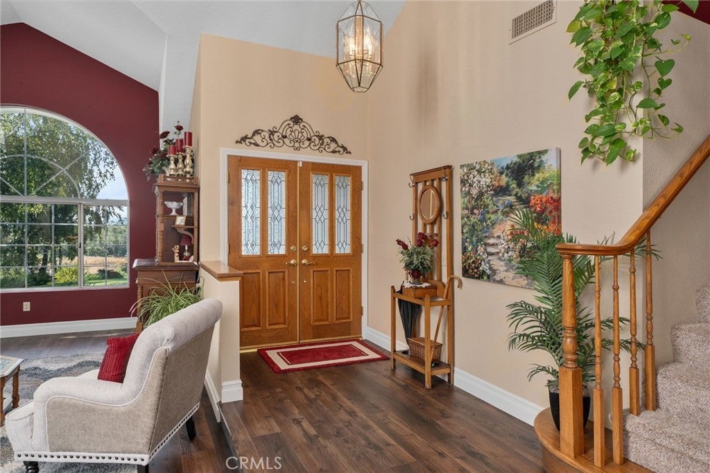 This impeccably maintained and tastefully upgraded 4-bedroom, 3-bath home offers 2,275 sq ft of comfortable living space on a beautifully landscaped 1-acre lot—ample space to build a resort-style pool, outdoor kitchen and an ADU/casita. Enjoy spectacular mountain and lake views from your own private oasis, where nature and serenity meet luxury and convenience. Inside, discover a spacious layout featuring a formal living and dining room, an open-concept kitchen with double electric ovens, and a cozy family room anchored by a zero-clearance wood-burning fireplace. Ideal for multi-generational living, the home includes a bedroom and full bath on the main level. An extra-wide staircase provides easy access to three generous-sized bedrooms, including the primary bedroom w/ensuite bath. The secondary bedrooms have the convenience of a Jack-n-Jill bath between them. Outside, delight in your personal orchard with peach, plum, apple, orange, and nectarine trees, plus a park-like backyard perfect for entertaining. Relax under the gazebo, soak in the Tuff portable spa, or watch the kids play in their very own playhouse. Additional outdoor features include a garden swing, birdhouse arbor, and automatic sprinklers covering all landscaping. Practical upgrades include a motorized sliding gated driveway, 60+ ft RV pad with 50-amp service and water, and a 12' x 6' utility shed. With no HOA and a very low tax rate, this property offers both freedom and value. A rare opportunity to own a slice of country paradise with breathtaking views and modern comforts—schedule your showing today!