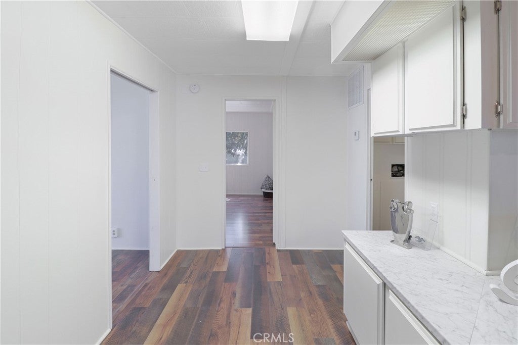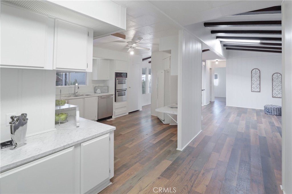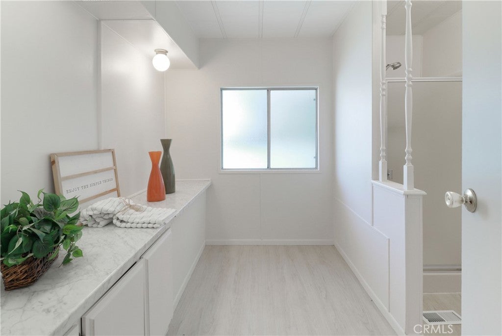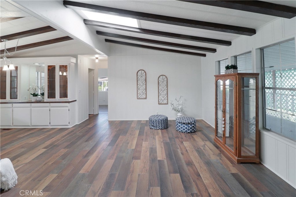 Beautifully updated manufactured home located in the highly desirable 55+ community of Il Sorrento Mobile Home Park in Moreno Valley. Offering approximately 1,600 sq ft of living space, this spacious home features 3 bedrooms, 2 bathrooms, and a large office that can easily serve as a 4th bedroom. The inviting living room showcases charming faux wood beams that add warmth and character, while the dining area features a stunning built-in cabinet with stained glass and updated lighting, truly a standout feature. The home also includes an indoor laundry area, a generous living space, and a functional layout designed for comfortable living. Recent upgrades include fresh interior paint, new flooring throughout, and brand-new kitchen countertops, giving the home a modern, refreshed feel. The primary suite offers two walk-in closets and a private bathroom with dual vanities featuring new countertops, along with a walk-in shower. Outside, you’ll find a large carport with multiple parking spaces, two storage sheds, and mature fruit trees. Additional highlights include a newer roof for added peace of mind. Residents of this well-maintained community enjoy a peaceful setting with amenities such as a clubhouse, pool, spa, RV parking, and beautifully landscaped grounds, all conveniently located near shopping, dining, and easy freeway access.