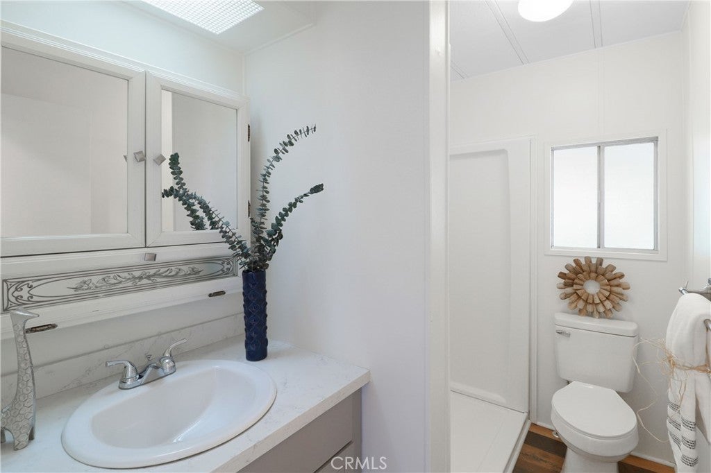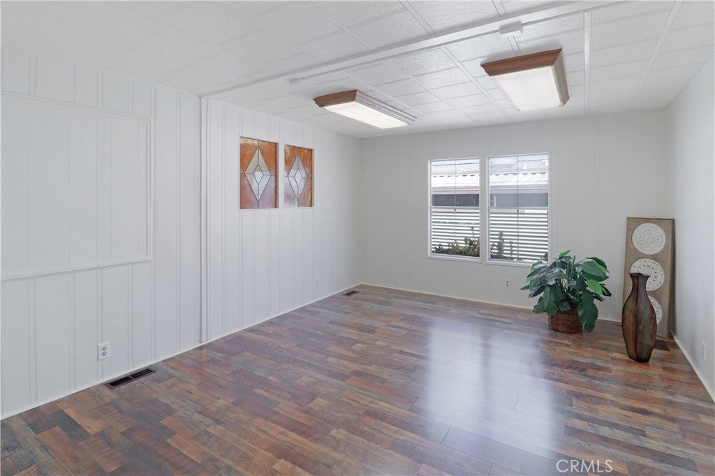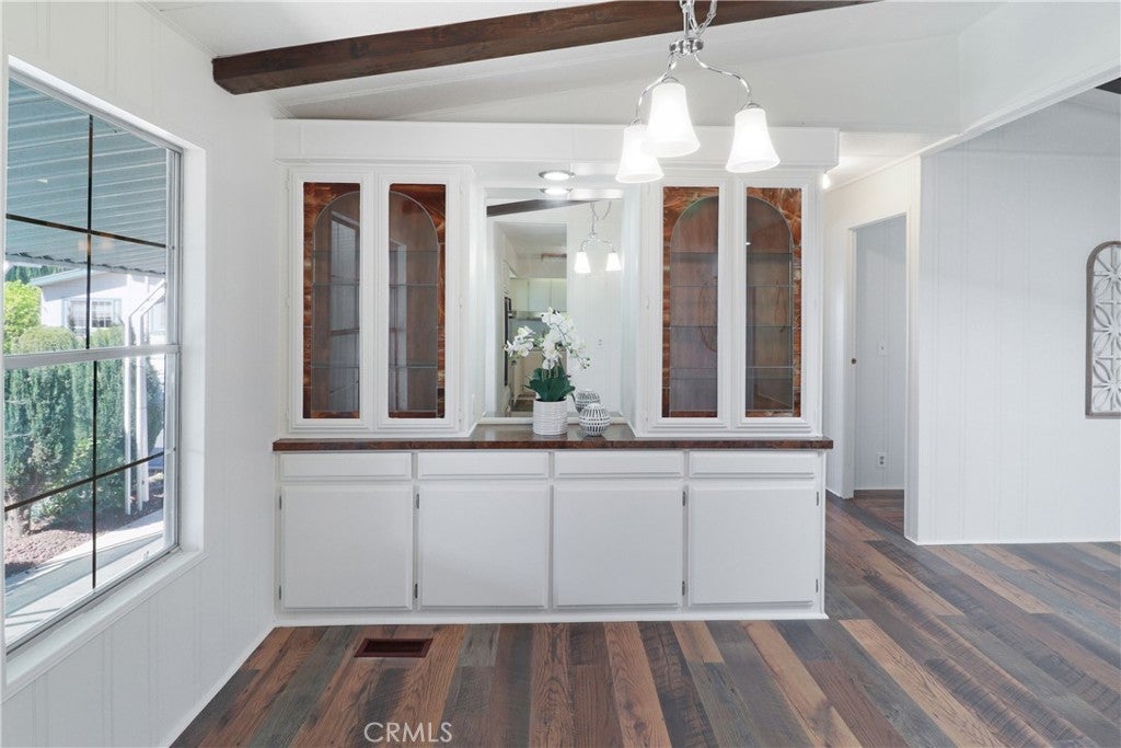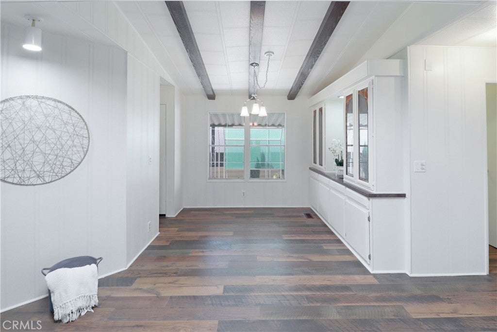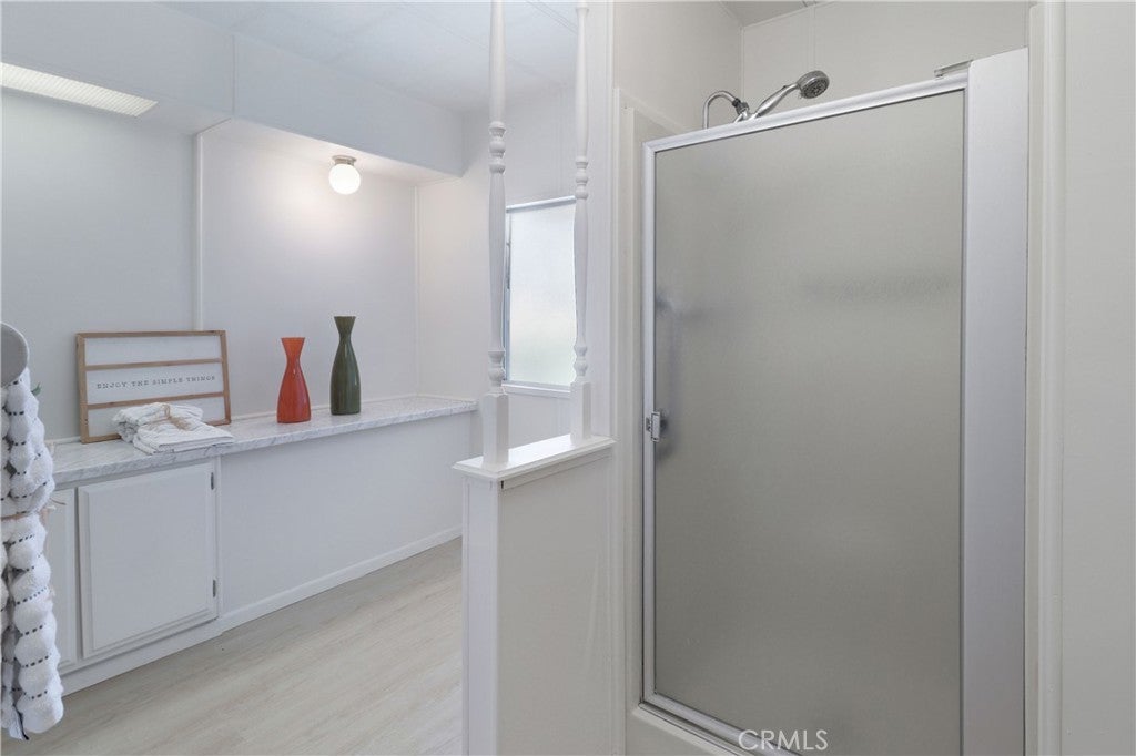 Beautifully updated manufactured home located in the highly desirable 55+ community of Il Sorrento Mobile Home Park in Moreno Valley. Offering approximately 1,600 sq ft of living space, this spacious home features 3 bedrooms, 2 bathrooms, and a large office that can easily serve as a 4th bedroom. The inviting living room showcases charming faux wood beams that add warmth and character, while the dining area features a stunning built-in cabinet with stained glass and updated lighting, truly a standout feature. The home also includes an indoor laundry area, a generous living space, and a functional layout designed for comfortable living. Recent upgrades include fresh interior paint, new flooring throughout, and brand-new kitchen countertops, giving the home a modern, refreshed feel. The primary suite offers two walk-in closets and a private bathroom with dual vanities featuring new countertops, along with a walk-in shower. Outside, you’ll find a large carport with multiple parking spaces, two storage sheds, and mature fruit trees. Additional highlights include a newer roof for added peace of mind. Residents of this well-maintained community enjoy a peaceful setting with amenities such as a clubhouse, pool, spa, RV parking, and beautifully landscaped grounds, all conveniently located near shopping, dining, and easy freeway access.