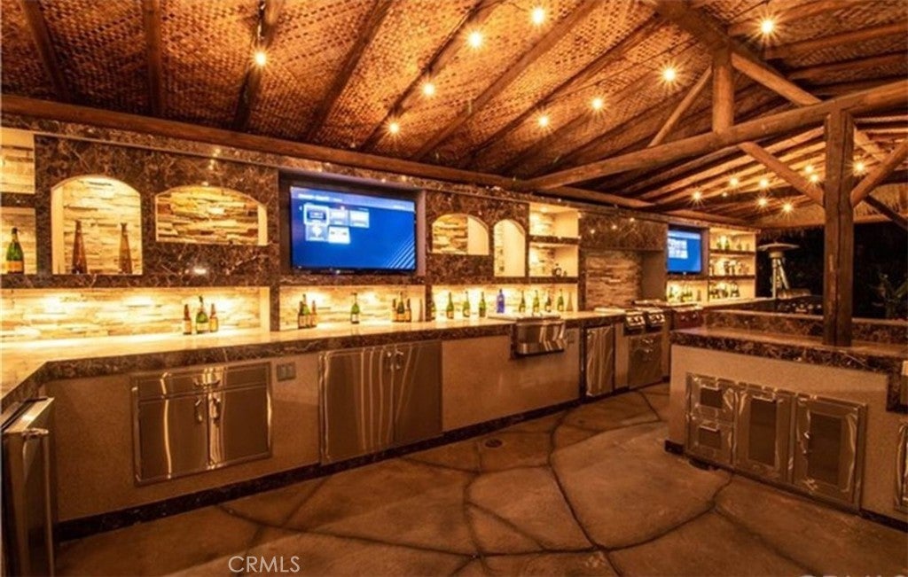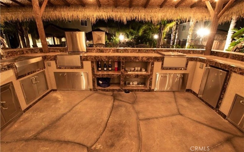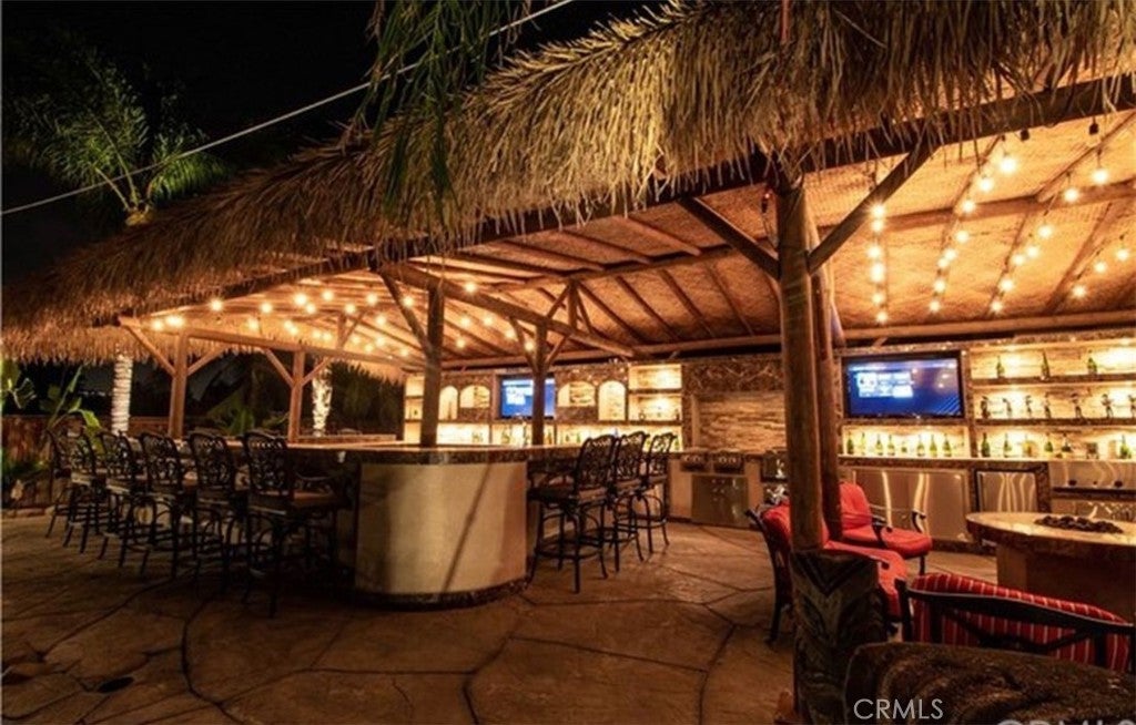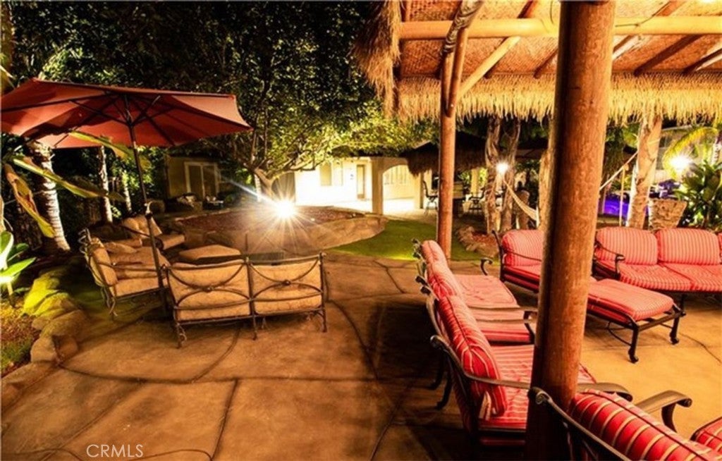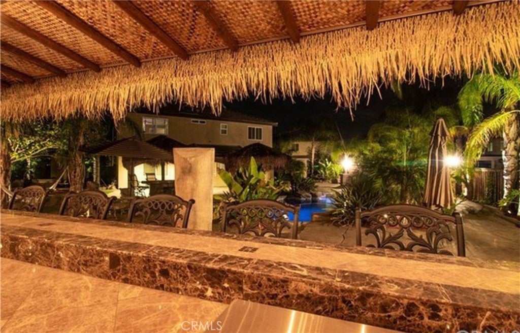EXTRAORDINARY VALUE IN THE BACKYARD — A MUST SEE! Experience stunning tropical resort-style living in this gorgeous and immaculate home. The property welcomes you with a charming front courtyard and features tile flooring throughout, a beautiful travertine staircase, and a gourmet kitchen equipped with custom granite counters, high-end cabinetry, stainless steel appliances, and a large island with its own sink. The layout includes: One bedroom, full bathroom suite, and half bathroom conveniently located downstairs. Spacious master suite, loft, and laundry room upstairs, whole-house fan and central vacuum system for added comfort and convenience. Step outside to your private resort-style oasis. The backyard boasts: Pebble-tec rock pool with waterfall, Relaxing jacuzzi, Shallow lounging area perfect for kids or for enjoying a drink under a cozy palapa. 4 Natural gas Tiki torches, towering palm trees and lush tropical landscaping. Expansive BBQ island with 4 refrigerators, 4 burners, 1 plancha, 3 full-size steam trays, deep sink, dual wall waterfalls, patio furniture and two large Tiki statues. With too many features to list, this exceptional property is truly a must see!