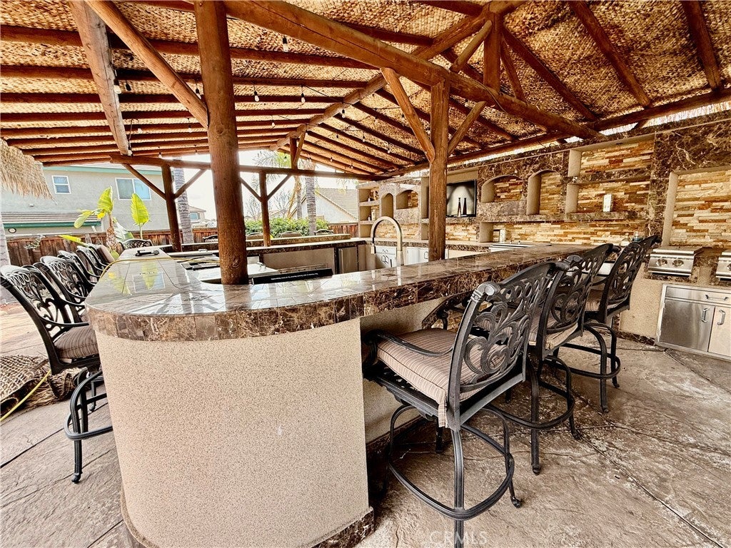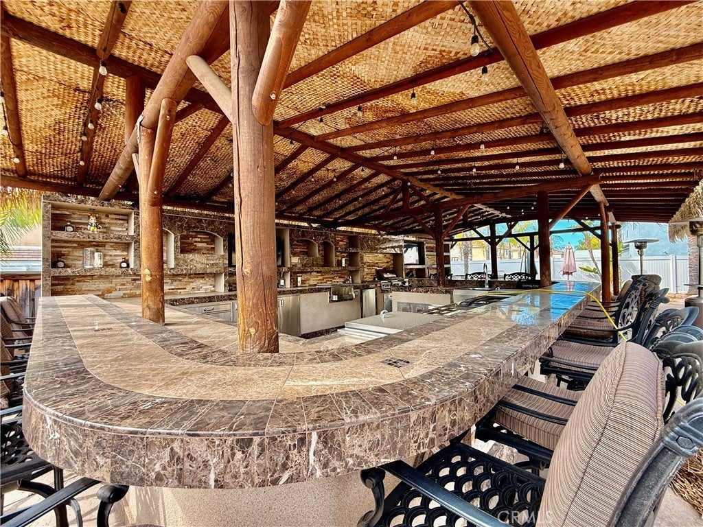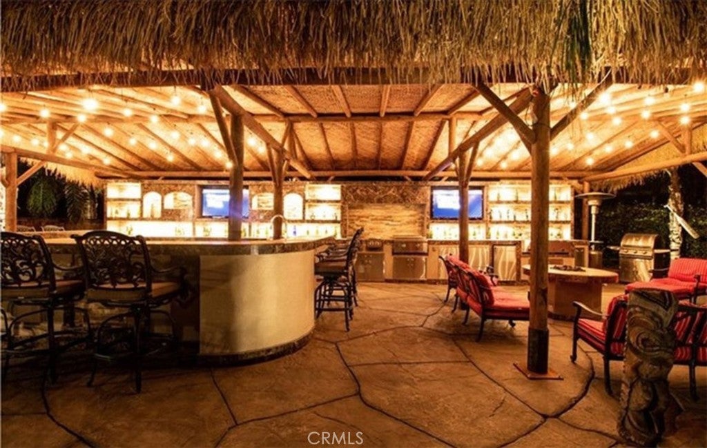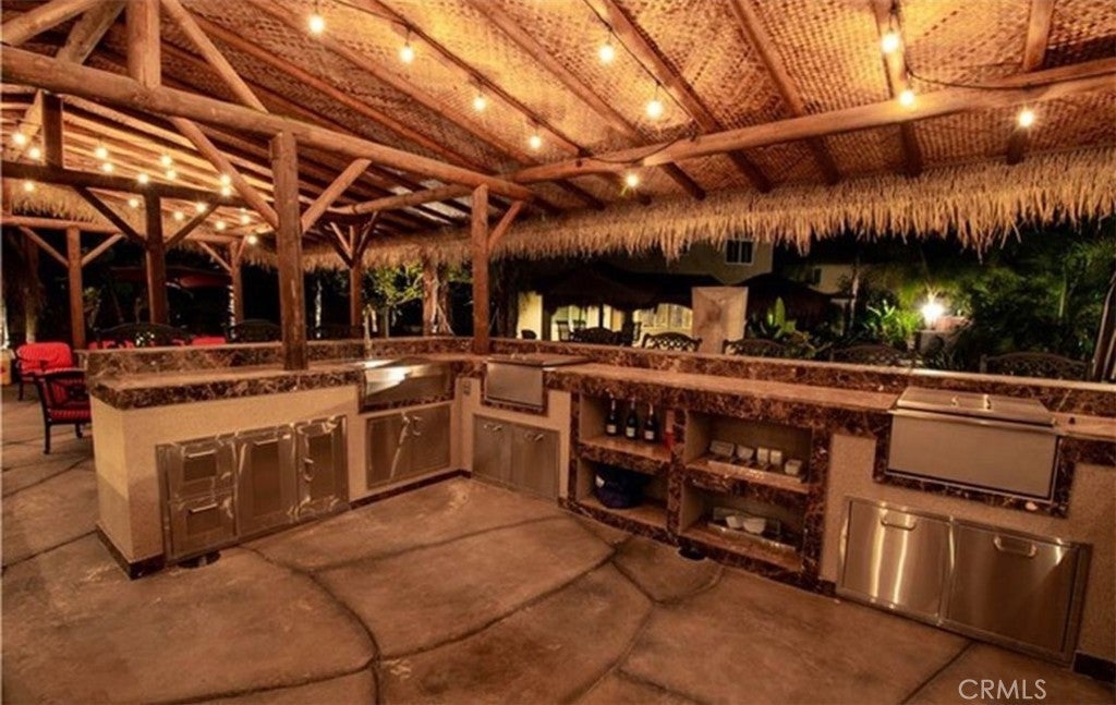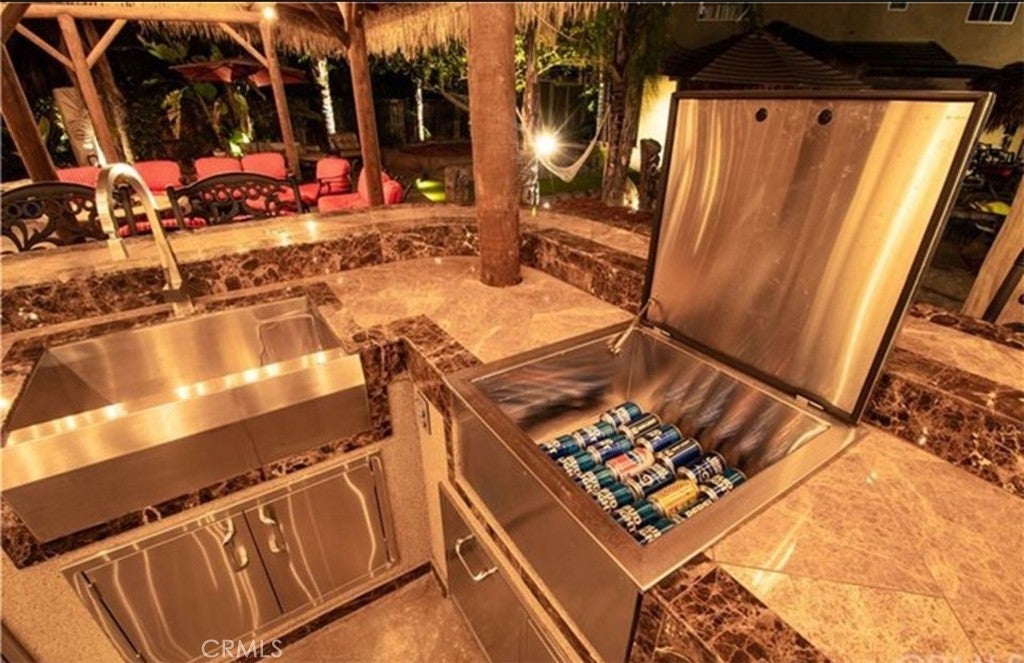 EXTRAORDINARY VALUE IN THE BACKYARD — A MUST SEE! Experience stunning tropical resort-style living in this gorgeous and immaculate home. The property welcomes you with a charming front courtyard and features tile flooring throughout, a beautiful travertine staircase, and a gourmet kitchen equipped with custom granite counters, high-end cabinetry, stainless steel appliances, and a large island with its own sink. The layout includes: One bedroom, full bathroom suite, and half bathroom conveniently located downstairs. Spacious master suite, loft, and laundry room upstairs, whole-house fan and central vacuum system for added comfort and convenience. Step outside to your private resort-style oasis. The backyard boasts: Pebble-tec rock pool with waterfall, Relaxing jacuzzi, Shallow lounging area perfect for kids or for enjoying a drink under a cozy palapa. 4 Natural gas Tiki torches, towering palm trees and lush tropical landscaping. Expansive BBQ island with 4 refrigerators, 4 burners, 1 plancha, 3 full-size steam trays, deep sink, dual wall waterfalls, patio furniture and two large Tiki statues. With too many features to list, this exceptional property is truly a must see!