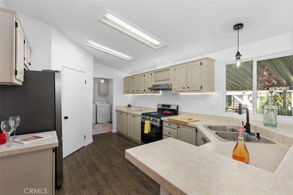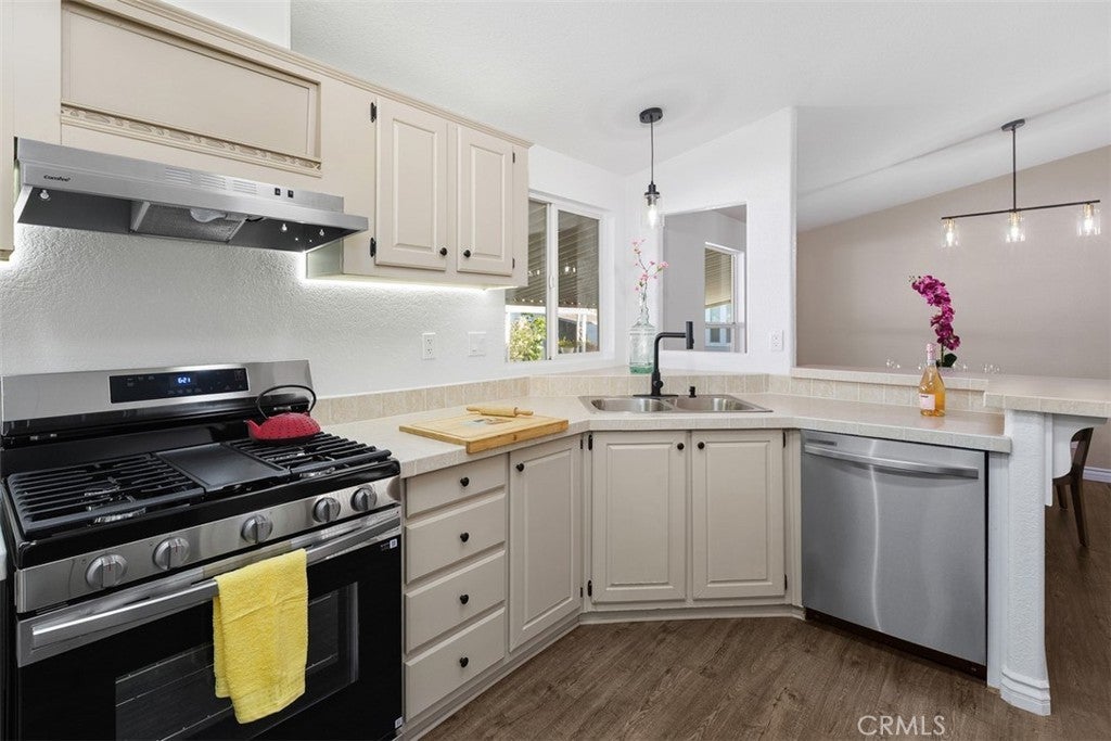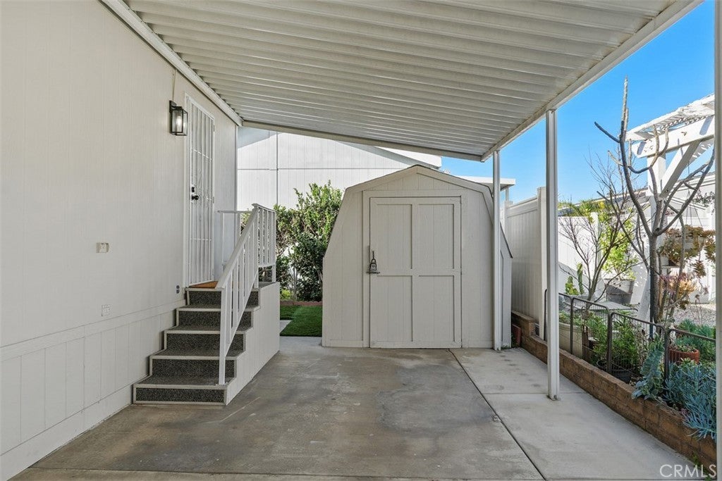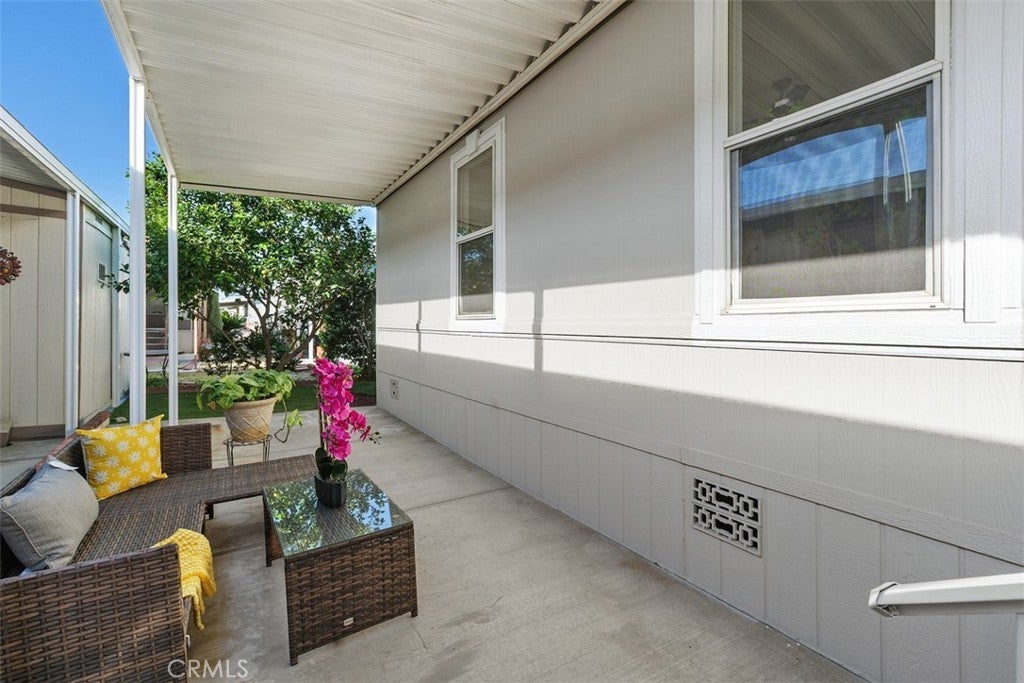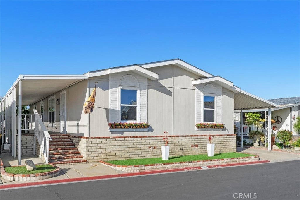 Beautiful 3-bedroom 2 bath mobile home located in the exclusive Rancho Ontario. This home's floorplan boasts the main suite in the back of the home and the guest bedrooms in the front of the home great for entertaining guests. The main suite offers a newly glazed tub and stand-up shower. The home offers a semi-open concept from the kitchen to the om to the dining room. The driveway can fit up to 3 small vehicles and also offers a big shed. The home offers an open porch. The lot has a mature orange, peach and lemon tree. The home offers new matching ceiling fans in all bedrooms. Updated electrical sockets and switches. The home is being offered with all of the new furniture featured in the photos. Newly renovated amenities await you offering a heated pool and spa opened year-round, a hall to host any event, our clubhouse offers a billiards room, card table room, a fitness room as well as a gym and a lounge area to just sit and relax. The Park also offers an active area with two pickleball courts, bocce ball and we didn't forget about your fur babies, two dog parks. Don't miss out on the opportunity to call this beauty your home.