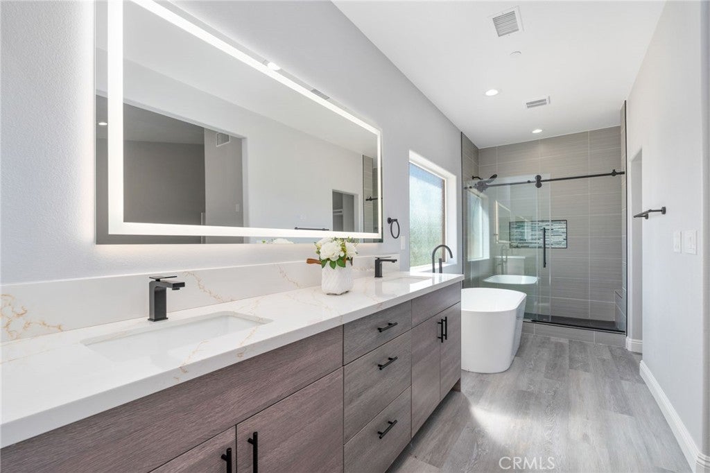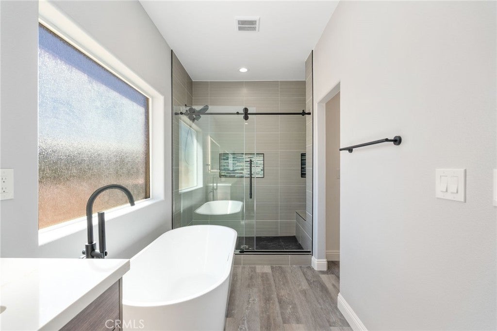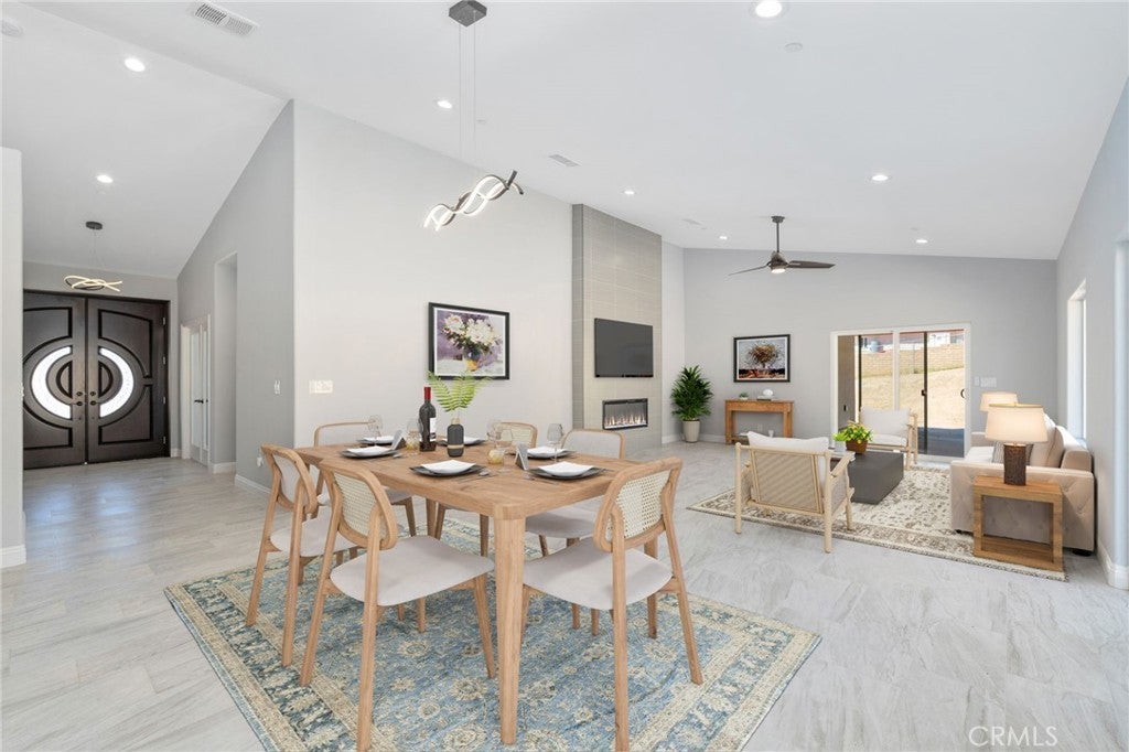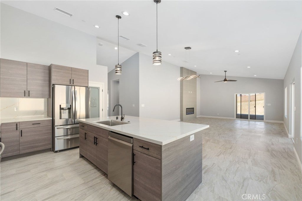 Welcome to this beautiful custom new construction home in Hesperia! This single-story home offers 2,212 sq ft of living space on a 20,585 sq ft corner lot, featuring 4 bedrooms and 3 bathrooms with a spacious open-concept layout and spacious wrap around backyard. The kitchen opens to the living and dining areas and includes upgraded cabinetry, custom flooring, modern lighting, and stainless steel appliances. Additional highlights include a smart home system, Cat-6 wiring throughout, USB-C outlets, a security camera system, Ring doorbell, paid solar system, tankless water heater, EV-ready 3-car garage, and RV parking with clean-out, plus so much more. Conveniently located near shopping, dining, and local amenities, this home offers modern living with space and functionality. Don’t miss the opportunity to call this home yours!