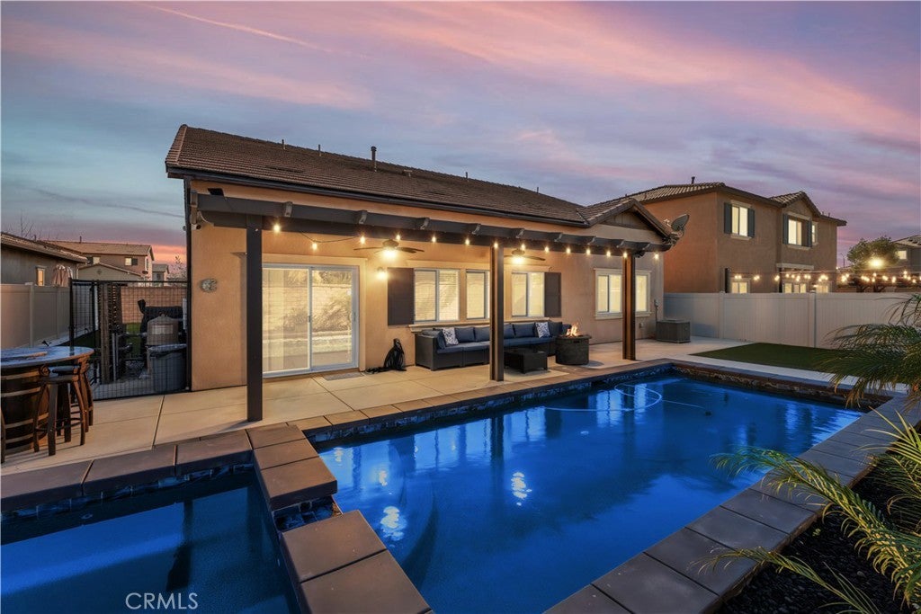 RARE PRIVATE POOL & SPA + OVER $20,000 IN UPGRADES! Escape the heat in your own personal oasis—this is one of the few homes in the Audie Murphy Ranch community that offers the luxury of a private backyard resort. Beyond the pool, the interior of this 2019-built masterpiece has been completely elevated with over $20,000 in custom upgrades. You’ll find bespoke architectural designs and high-end finishes throughout the living areas that set this home apart from any other. The spacious floor plan features a coveted main-floor master bedroom plus two additional bedrooms with two full baths. A massive upstairs loft with 2 additional bedrooms plus 1 full bathroom. The chef-inspired kitchen is a true centerpiece, featuring premium granite countertops, a massive center island, a walk-in pantry, and sleek luxury vinyl plank flooring that extends throughout the main living areas. The home’s interior is defined by soaring ceilings and custom recessed lighting that enhance the spacious feel. Practical luxury abounds with a whole-house fan for energy efficiency, while the primary suite offers generous walk-in closets complete with custom organizers. Even the garage has been upgraded with professional epoxy flooring and integrated storage solutions. Finally, step back outside to experience the ultimate evening ambiance. The private pool and jacuzzi feature a state-of-the-art lighting system that is fully customizable to your liking, with custom illumination extending throughout the entire backyard. Why settle for community facilities when you can have a custom-tailored resort right at home? This is the one you’ve been waiting for! *Low HOA – Only $137/month