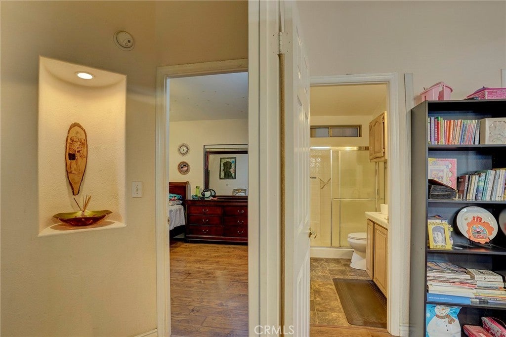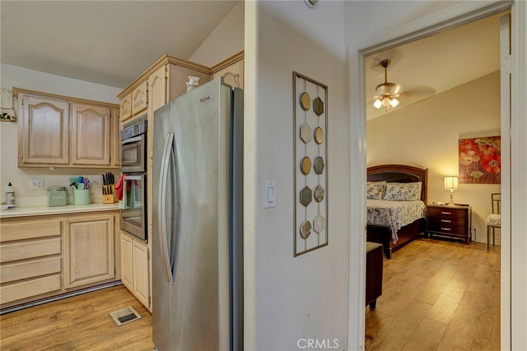 This unique home does not have steps up to the front door or patio slider. The front/side of this home is on ground level for easier access or handicapped access. This home is on an oversized lot with an amazing yard with a built-in fountain, built-in natural gas BBQ, grass, and mature trees for added shade and privacy. This 1995 – 1982 sq ft Silvercrest/Westwood has 3 bedrooms, 2.5 baths, (sq footage includes the enclosed garage) --extra-large attached garage with enough parking for 3 cars plus a large storage room. The spacious open floor plan is light and bright with several skylights and a caned skylight in the 2nd bedroom. All 3 bedrooms have walk-in closets. The 2 secondary bedrooms have a Jack and Jill bathroom with a stall shower with a seat bench. The kitchen is modern with a large island with bar seating, a built-in gas cooktop, and is open to the living room and dining room. The living room has a fireplace with gas logs. One of the bedrooms has a double door entry and a custom-built-in desk/work station (not attached, can be removed), and a very large walk-in closet. The master bedroom is very large and has a walk-in closet off the large master bathroom. The master bath has a Roman-style tub and a separate stall shower. The dining room is very large and has 2 skylights with retractable blinds. The laundry room has a 1/2 bath off of it and direct garage access. There are 2 water heaters (one is newer), so you will have plenty of hot water. This home is one of a kind and will sell quickly. Some of the recent upgrades include: new plumbing, new water heater, newer quality wood-look vinyl flooring, owned water purification system, 6 security cameras, tube skylight, automatic sprinklers & drip system, low voltage exterior accent lighting, and more. Must see!