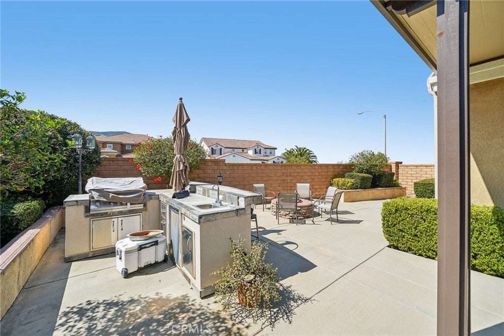 Welcome to this stunning 4-bedroom, 4.5-bathroom two-story home located in the prestigious guard-gated community of The Retreat. Designed with comfort and elegance in mind, this home features an open and spacious floor plan with high ceilings, recessed lighting, crown molding, plantation shutters, and a neutral paint scheme throughout. Upon entry, you are greeted by a formal living room and formal dining room, perfect for hosting gatherings. The heart of the home is the expansive great room that flows seamlessly into the gourmet kitchen, which is equipped with a large center island, dark wood cabinetry, ample counter space, and plenty of storage. The thoughtfully designed layout includes one bedroom with a full bathroom on the main floor, along with a convenient half bathroom for guests. Upstairs, you’ll find the remaining bedrooms including the luxurious primary suite with retreat area as well as a spa-like ensuite bathroom featuring dual vanities, a soaking tub, and a separate shower. Two more bedrooms as well as a versatile bonus Loft space, and 2 additional bathrooms complete the 2nd floor. Also, step outside onto the large private balcony and enjoy peaceful mountain views. The backyard is designed for both relaxation and entertaining with a covered patio, concrete and grassy areas, and a built-in BBQ bar, creating the perfect outdoor living space! Also there is a 3-Car Garage and the refrigerator, mini fridge, washer, dryer, BBQ, security system, smart thermostat, smart doorbell, and smart lock are all included in the sale of the home! Residents of The Retreat enjoy resort-style amenities including a sparkling community pool, outdoor fireplace gathering area, and a clubhouse, all within a secure guard-gated setting. This exceptional home offers the perfect blend of luxury, comfort, and community living. Don’t miss the opportunity to make it yours!