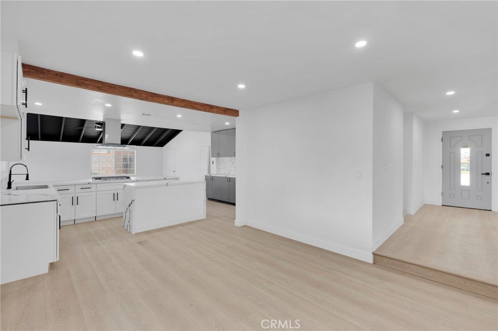 BACK ON THE MARKET- AT NO FAULT OF SELLER.....Welcome to this beautifully renovated home located in a quiet and established neighborhood of Rialto. Situated on a spacious lot, this stunning property blends modern upgrades with comfortable living spaces, making it the perfect place to call home. Step inside to an open and airy layout featuring high ceilings, abundant natural light, and a bright contemporary design throughout. The fully remodeled kitchen is the centerpiece of the home, showcasing sleek white cabinetry, stylish quartz countertops, modern backsplash, and a large island ideal for cooking, entertaining, and gathering with family and friends. The home features updated bathrooms with elegant tile work, modern vanities, matte black fixtures, and designer lighting that create a clean and luxurious feel. Each space has been thoughtfully upgraded to provide both style and functionality. The living areas offer an inviting atmosphere with fresh finishes, recessed lighting, and beautiful flooring that flows seamlessly throughout the home. Large windows provide natural light and views of the surrounding neighborhood. Outside, the property offers a generous yard with plenty of space for entertaining, gardening, or future customization. The attached garage and wide driveway provide ample parking and convenience. Located close to schools, parks, shopping, and major freeways, this move-in-ready home offers both comfort and accessibility.