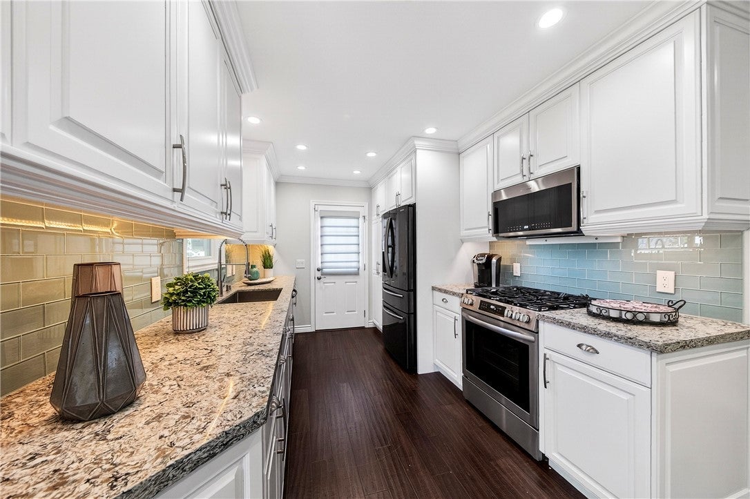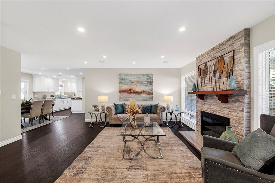 Welcome to this stunning, fully remodeled beauty nestled in the heart of iconic Surf City in Huntington Beach. This beautifully updated home features a thoughtfully redesigned interior and exterior, offering both comfort and style. Step inside to an open, entertainer-friendly floorplan, where the spacious living room flows seamlessly into the updated kitchen and dining area. The dining space opens to an expansive covered patio—perfect for gatherings—with a built-in BBQ island, ample counter space, and bar seating. The patio easily accommodates multiple tables for hosting guests, and just steps away, you can unwind in the nearly new outdoor spa. The oversized lot provides endless possibilities, including a dedicated area ideal for growing vegetables, herbs, and citrus trees. The charming covered front porch, soothing water fountain, and lush landscaping create standout curb appeal, while the metal roll-up garage door adds both style and function. Inside, the home features warm, dark wood-plank laminate flooring, a remodeled fireplace, scraped ceilings, and beautifully updated bathrooms. The kitchen showcases gorgeous quartz countertops, a stylish backsplash, and upgraded cabinetry with soft-close drawers and convenient pull-out shelves. Additional upgrades include all new interior paint and carpet, new interior doors, blown-in insulation for enhanced energy efficiency, a metal roof, new ceiling fans, a replaced electrical panel, and solar panels designed to offset the hot tub and EV charging. A 240-volt EV outlet is already installed. Major systems and appliances have been replaced as well, including all drain pipes under the house, the dishwasher, stove, microwave, water heater, and furnace. The garage features a dedicated workshop area with cabinets and workspace—perfect for hobbies or home projects. The washer, dryer, and two refrigerators are included, making this home truly move-in ready. With something for everyone, this property combines charm, functionality, and modern upgrades throughout. Located just a short stroll from Bella Terra, offering fine dining, a cinema, Costco, and a wide selection of shopping, this home also provides convenient access to the 405 freeway for easy commuting.