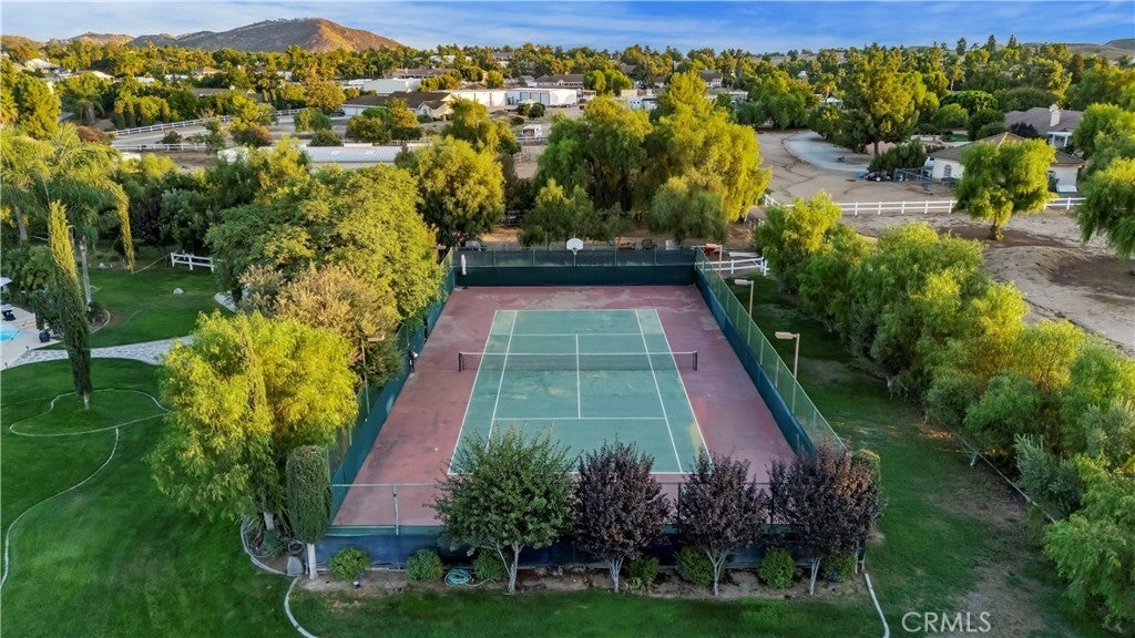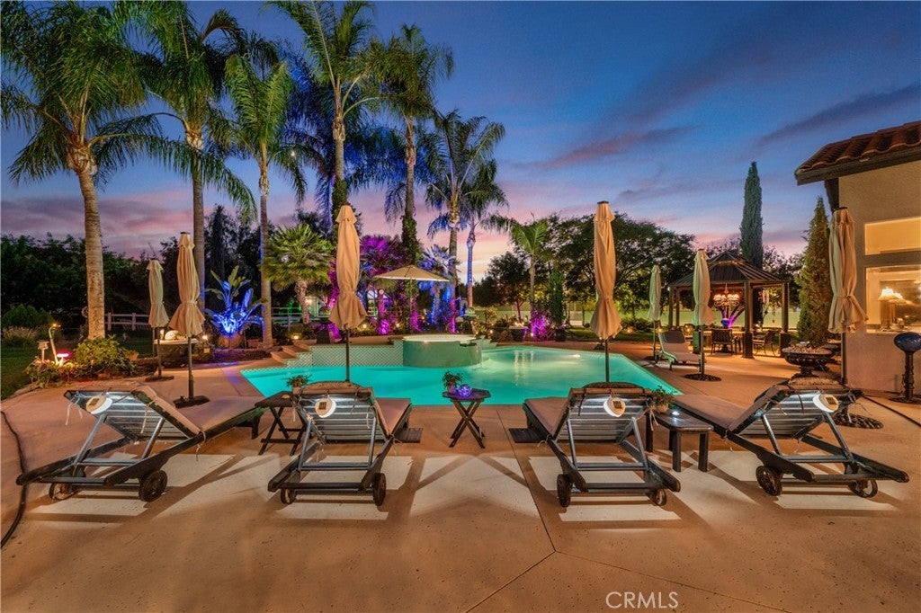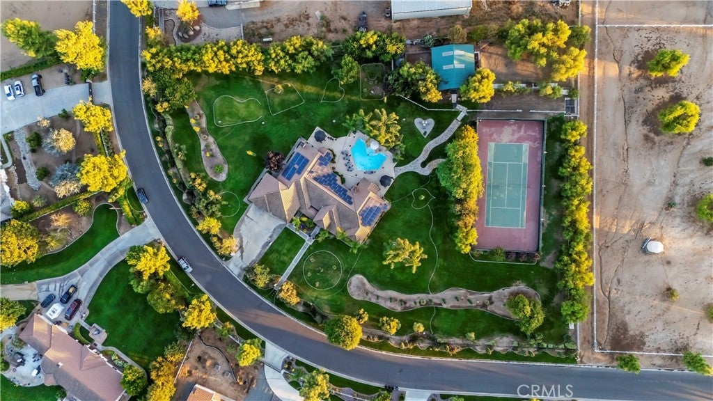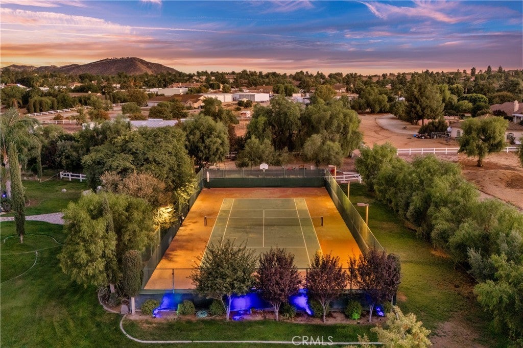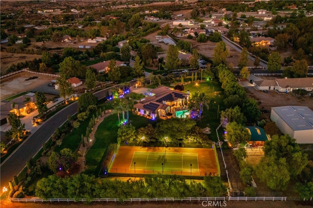 ***AMAZING GATED SINGLE STORY HORSE PROPERTY on 2.23 ACRES of all USABLE LAND with a BARN, ARENA, POOL, SPA, LIGHTED TENNIS COURT, PUTTING GREEN & AGRICULTURAL WELL with NO HOA*** This is a HORSE ENTHUSIAST DREAM with Riding Trails right off your property and near a Horse Arena Complex and located in the Hills adjacent to Corona. Exotic Lighting throughout the Property makes an Awesome Light Show and a Stargazer's Dream at night. The Landscaping and Grass is watered by the Agricultural Well creating huge savings having a ARGICULTURAL WELL and 76 SOLAR PANELS. There is so much HEART in this this Peaceful Sanctuary which is displayed throughout the property with Designer Tile Pool & Spa (NEW Plaster & Tile) with a Beautiful Palm Tree backdrop, cobblestone pathway leading to a 3 Stall Horse Barn & Tack Room (additional stalls can be easily added) nestled in the Trees with Arena and a Regulation Size Lighted Tennis Court which could be converted to a Pickleball Court or RV Garage. Great Layout, just under 4000 Sq. Ft., 5 Bedrooms, 3 1/2 Bathrooms, 4 Car Garage with Breathtaking Views of Backyard. There is a Formal Living and Dining Rm leading to a Kitchen with Beautiful Granite Countertops, Viking 6 Burner Cooktop, Double Ovens with warming drawer, Wine Frig, two Islands one with Barstool Seating, Huge Sink overlooking a Dining area and Family Rm with Fireplace and Built-In Cabinetry. The Full Bar with Refrigerator, Sink and Barstools right off the Family is Great for Entertaining. The Primary Bedroom is Massive with a Fireplace, Built-In Cabinetry, Seating Area overlooking the Pool with a Huge Bath, Double Sinks, Vanity, Walk-In Shower, Soaking Tub and Walk-In Closet with Custom Closet Organizers. There are 2 additional bedrooms near the Primary Bedroom with a Bathroom in between perfect for kids. On the other side of the Home there are 2 additional spacious Bedrooms and Bathroom with Walk-In Shower which is a perfect area for Guest Quarters with its own entry!! For all you Music Fans this HOUSE ROCKS with a Recording Studio including a Drum Set, Tract System, Digital Tascam, Speakers, Subwoofer, etc. This Amazing Home is a complete Sports Entertainment Zone including a large putting green, Swimming, Tennis, Pickleball, Horseback riding and Jacuzzi with so much for the whole Family. Lots of Room for Guest House, RV Garage or anything you can Dream Up. The 2.23 Acres is all Flat and Usable Land. No HOA. Close to Great Shopping & Restaurants in Corona.