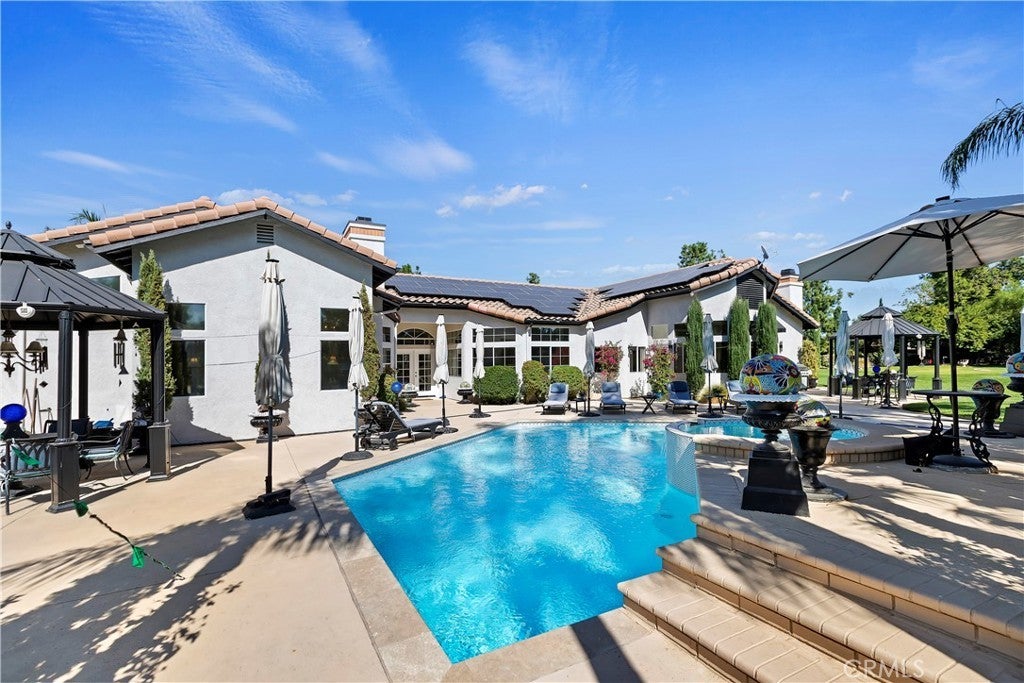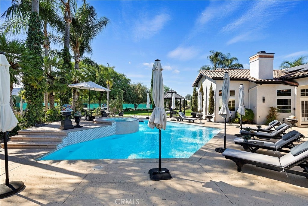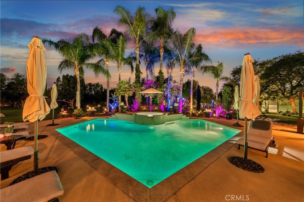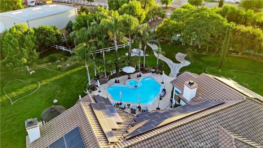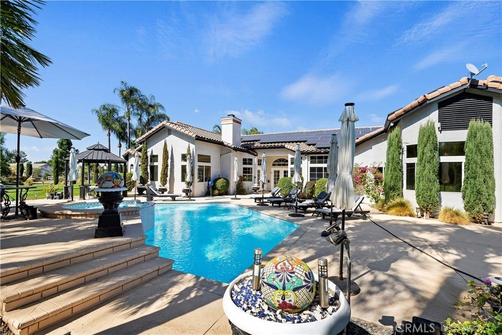 ***AMAZING GATED SINGLE STORY HORSE PROPERTY on 2.23 ACRES of all USABLE LAND with a BARN, ARENA, POOL, SPA, LIGHTED TENNIS COURT, PUTTING GREEN & AGRICULTURAL WELL with NO HOA*** This is a HORSE ENTHUSIAST DREAM with Riding Trails right off your property and near a Horse Arena Complex and located in the Hills adjacent to Corona. Exotic Lighting throughout the Property makes an Awesome Light Show and a Stargazer's Dream at night. The Landscaping and Grass is watered by the Agricultural Well creating huge savings having a ARGICULTURAL WELL and 76 SOLAR PANELS. There is so much HEART in this this Peaceful Sanctuary which is displayed throughout the property with Designer Tile Pool & Spa (NEW Plaster & Tile) with a Beautiful Palm Tree backdrop, cobblestone pathway leading to a 3 Stall Horse Barn & Tack Room (additional stalls can be easily added) nestled in the Trees with Arena and a Regulation Size Lighted Tennis Court which could be converted to a Pickleball Court or RV Garage. Great Layout, just under 4000 Sq. Ft., 5 Bedrooms, 3 1/2 Bathrooms, 4 Car Garage with Breathtaking Views of Backyard. There is a Formal Living and Dining Rm leading to a Kitchen with Beautiful Granite Countertops, Viking 6 Burner Cooktop, Double Ovens with warming drawer, Wine Frig, two Islands one with Barstool Seating, Huge Sink overlooking a Dining area and Family Rm with Fireplace and Built-In Cabinetry. The Full Bar with Refrigerator, Sink and Barstools right off the Family is Great for Entertaining. The Primary Bedroom is Massive with a Fireplace, Built-In Cabinetry, Seating Area overlooking the Pool with a Huge Bath, Double Sinks, Vanity, Walk-In Shower, Soaking Tub and Walk-In Closet with Custom Closet Organizers. There are 2 additional bedrooms near the Primary Bedroom with a Bathroom in between perfect for kids. On the other side of the Home there are 2 additional spacious Bedrooms and Bathroom with Walk-In Shower which is a perfect area for Guest Quarters with its own entry!! For all you Music Fans this HOUSE ROCKS with a Recording Studio including a Drum Set, Tract System, Digital Tascam, Speakers, Subwoofer, etc. This Amazing Home is a complete Sports Entertainment Zone including a large putting green, Swimming, Tennis, Pickleball, Horseback riding and Jacuzzi with so much for the whole Family. Lots of Room for Guest House, RV Garage or anything you can Dream Up. The 2.23 Acres is all Flat and Usable Land. No HOA. Close to Great Shopping & Restaurants in Corona.
