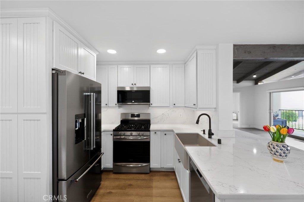 - Interior FeaturesBeamed Ceilings, Built-in Features, Balcony, Ceiling Fan(s), In-Law Floorplan, Recessed Lighting, Unfurnished, Bedroom on Main Level, Main Level Primary, Primary Suite, Multiple Staircases