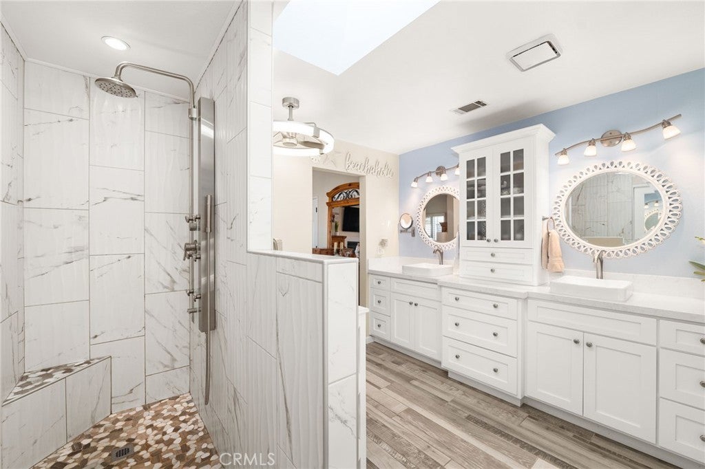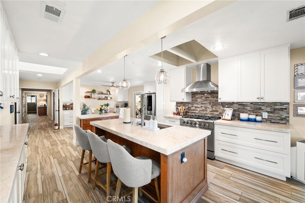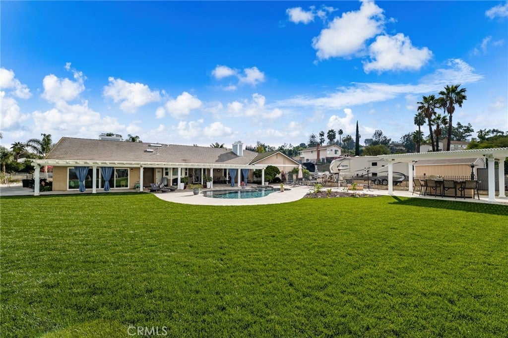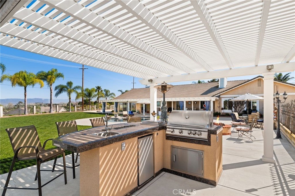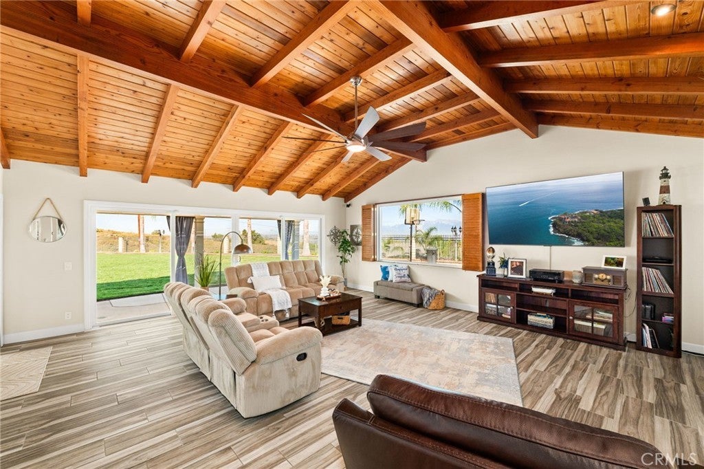 Resort-Style Estate Living on Over an Acre Welcome to 15555 Rancho Viejo Drive—an exceptional single-story estate offering space, privacy, and a true indoor-outdoor lifestyle on over an acre of usable land. Inside, a stunning great room showcases vaulted wood-beam ceilings, a statement fireplace, and expansive windows that fill the home with natural light. The remodeled kitchen is the centerpiece, featuring custom cabinetry, quartz-style countertops, stainless steel appliances, and a rare double-island layout ideal for everyday living and entertaining. The spacious primary suite offers a private retreat with its own fireplace, sitting area, and a spa-inspired bathroom complete with a soaking tub, oversized walk-in shower, dual vanities, and a custom walk-in closet. Step outside to a resort-style backyard with a pebble tec pool and spa, outdoor kitchen with pergola, fire pit lounge, covered patio, and expansive grassy area—all designed for entertaining and enjoying scenic views. Additional highlights include energy-efficient windows, a Kohler whole-house generator with automatic transfer switch, security camera system, full irrigation with updated lines, and a 3-car garage with insulated doors and its own A/C system.