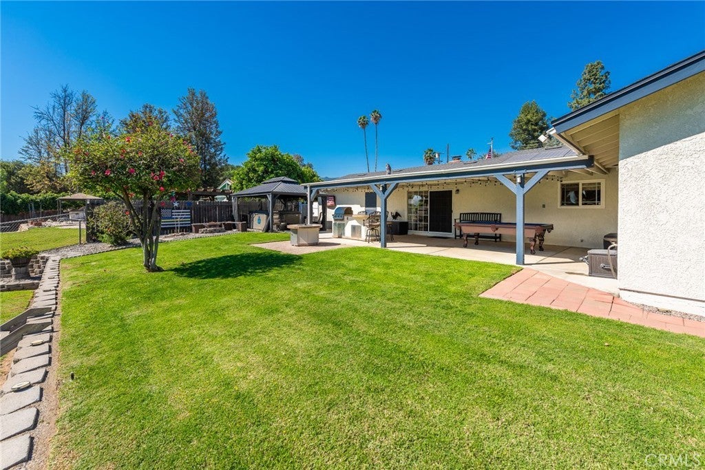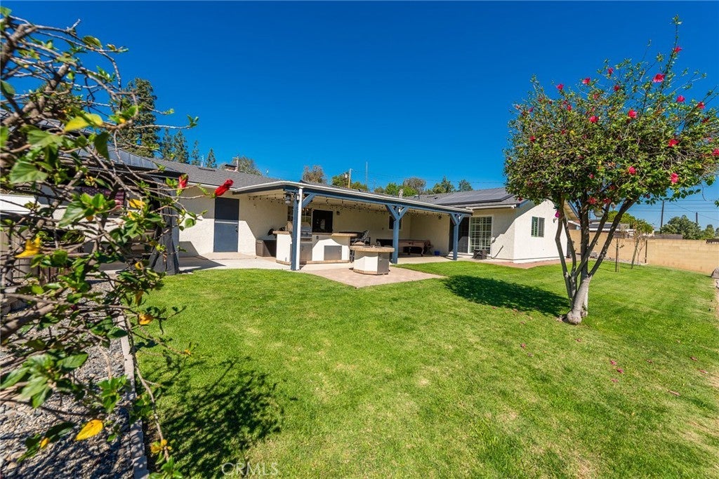 Welcome to this beautifully upgraded single-story home in the highly desirable Corona area! Offering 4 spacious bedrooms and 3 bathrooms, this thoughtfully designed residence features a rare dual primary bedroom layout—perfect for multi-generational living or added flexibility. Step outside and enjoy the extensively landscaped front and back yards, complete with mature fruit trees including pear, orange, almond, and apple. The backyard is an entertainer’s dream, featuring a built-in BBQ, a covered above-ground spa beneath a charming gazebo, and plenty of space to relax or host gatherings. Two storage sheds (10x10 and 10x12) are also included, providing ample room for tools and hobbies. Car enthusiasts and adventurers will appreciate the dual covered carports—one attached and an additional aluminum structure positioned in front of the RV parking area along the side yard. Inside, the home boasts numerous recent upgrades for comfort and efficiency, including a new A/C and furnace system, updated ducting throughout, two new water heaters, a new electrical panel, and 13 fully paid-off Tesla solar panels. The roof was replaced just two years ago, offering peace of mind for years to come. Additional highlights include dual-pane windows, plantation shutters installed three years ago, a cozy wood-burning fireplace, and a kitchen with abundant storage space to meet all your needs. This move-in ready home combines modern upgrades, functional living, and outdoor enjoyment—all in a prime Corona location. Don’t miss this exceptional opportunity!