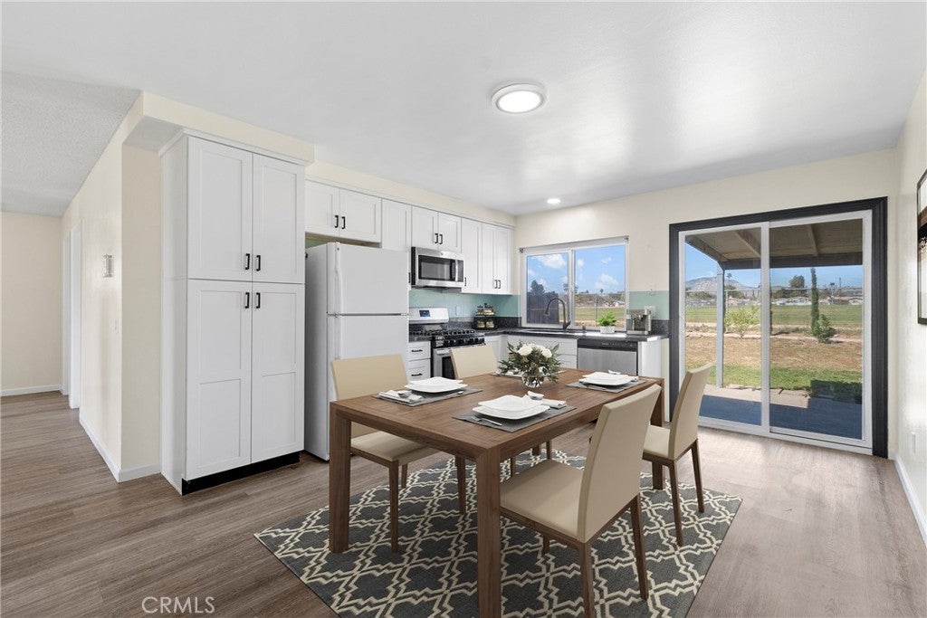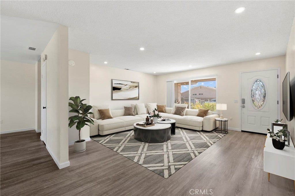 Welcome to this beautifully updated single-story home offering 4 bedrooms and 2 bathrooms in a well-established Moreno Valley neighborhood. With thoughtful updates completed in 2021, this home blends modern finishes with everyday comfort. Step inside to find an open and inviting layout with updated flooring, neutral paint, recessed lighting, and abundant natural light throughout. The kitchen features stylish cabinetry, ample counter space, stainless appliances, and a dining area that opens directly to the backyard, creating an easy flow for gatherings and daily living. The flexible floor plan includes a private fourth bedroom separated from the others, ideal for a home office, guest room, or multi-generational living. Both bathrooms have been refreshed, and the home has been well maintained inside and out. One of the standout features of this property is the sense of openness behind the home. Backing to a school field with no two-story neighbors directly behind, you’ll enjoy expanded views and distant hills that create a bright and airy backdrop. The spacious backyard offers room to relax, garden, or design your own outdoor retreat while taking in the open surroundings. Conveniently located near schools, parks, shopping, and commuter routes, this move-in ready home offers space, versatility, and scenic surroundings all in one.