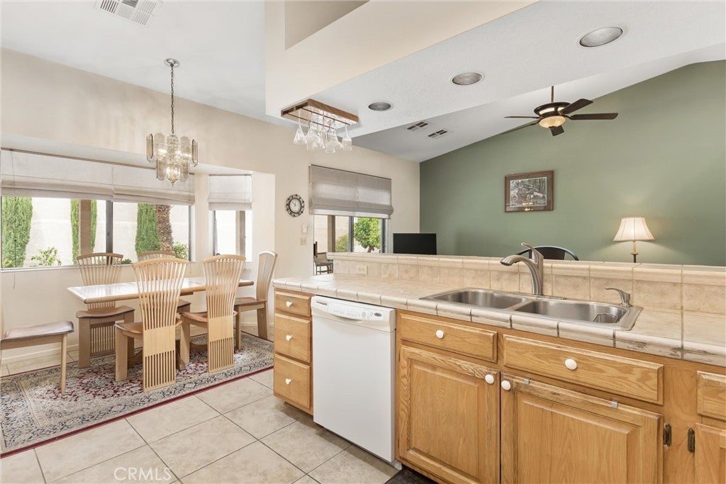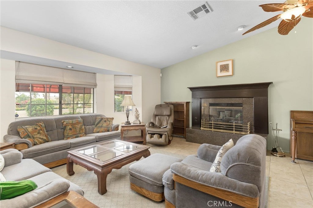 Located in the quiet neighborhood of Mission Lakes Country Club this home features a gated courtyard, 1881 sq. ft. 2 bedroom, 2 bath, 3 car garage, Large living room with a bay window, tile floors, granite fireplace, separate Dining room, large Kitchen with vaulted ceiling, breakfast bar and breakfast nook, walk-in pantry, skylight for extra natural light, adjacent to the Family room that leads out to a large covered patio and a low maintenance yard with citrus trees. Community amenities include a Ted Robinson designed golf course within a mile, pool, spa, tennis courts, fitness center, clubhouse dining and more. Close proximity to shopping, dining and entertainment.