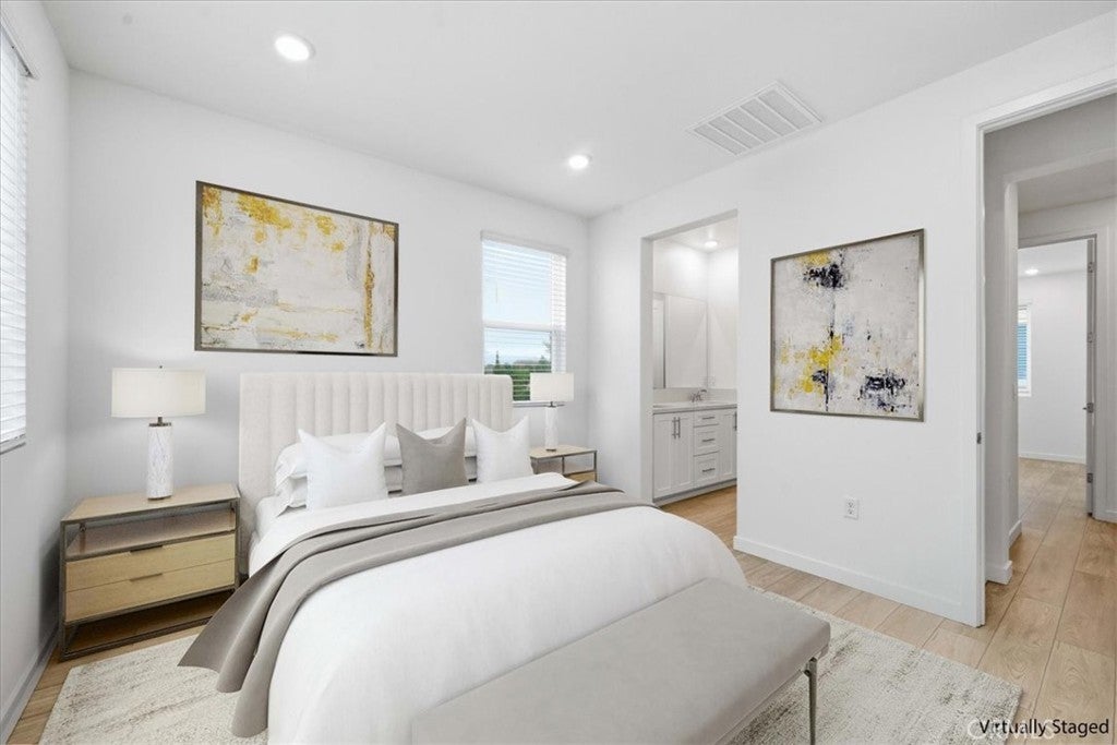 NEW CONSTRUCTION, MOVE IN READY! This three-story residence offers approximately 1,680 sq ft of thoughtfully designed living space with 3 bedrooms, 3 baths, and a 2-car garage — perfect for modern family living. Step inside to an open-concept layout that seamlessly connects the living, dining, and kitchen areas. The eat-in kitchen boasts a center island, walk-in pantry, and abundant storage, creating an ideal space for everyday life and entertaining. A versatile first-floor den provides a quiet retreat or flexible home office space. Upstairs, enjoy 9-foot ceilings, plenty of natural light, and an upstairs laundry room for everyday convenience. The spacious primary suite includes a walk-in closet and well-appointed bath, while additional bedrooms deliver comfort and privacy for family or guests. Built with energy efficiency in mind, this ENERGY STAR® certified home features low-E windows, a smart thermostat, and other sustainable design elements that help reduce utility costs. Located in a gated community with convenient access to major freeways, nearby schools, dining, shopping, and outdoor recreation. This home offers a perfect blend of comfort, style, and location — with the added benefit of personalizing your home from the ground up. PROFESSIONAL PHOTOS TO FOLLOW, EXTERIOR AND INTERIOR FINISHES MAY VARY