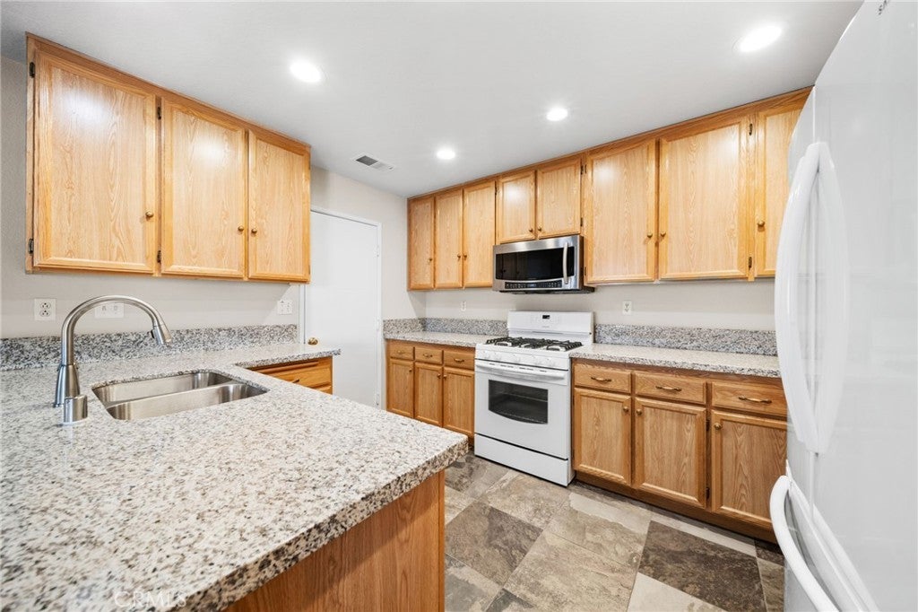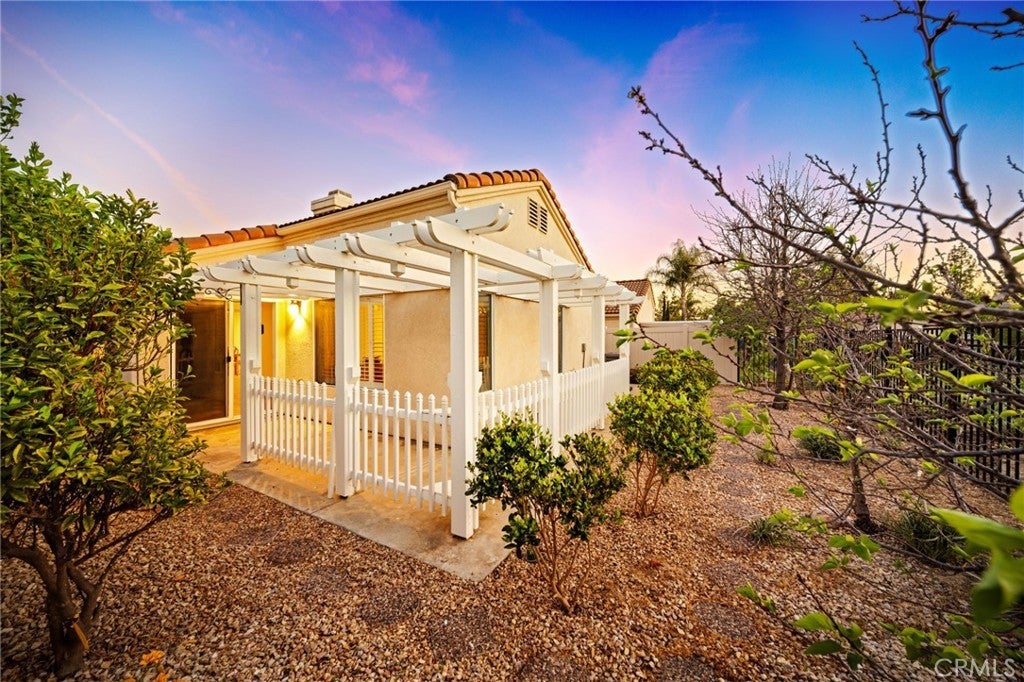 Welcome to The Colony, Murrieta’s premier 55+ guard-gated golf course community. This single-level gem is ideally situated on a quiet street with no immediate rear neighbor, offering both privacy and tranquility. The home is truly turnkey, featuring tile flooring, fresh interior paint, a newer HVAC system, new granite kitchen countertops, updated faucets, garage cabinets, and a new vinyl property-line fence. Inside, you’ll find high ceilings, abundant natural light, and an efficient, well-designed layout with two spacious bedrooms and a kitchen complete with a functional peninsula. Step outside to a peaceful backyard retreat featuring ventilated metal rear fencing, an open lattice patio cover, mature trees, and low-maintenance landscaping—perfect for relaxing or entertaining. Residents of The Colony enjoy resort-style amenities including pools, spa, clubhouse, fitness center, tennis, bocce ball, library, billiards room, salon, arts and crafts studio, clubs, and scenic walking and biking trails. Enjoy convenient access to the Colony Grill and the California Oaks Golf Club, all within this vibrant, active adult community. Conveniently located near popular shopping/dining, Temecula wine country, and approximately one hour from Orange County and San Diego, and about 90 minutes from Palm Springs and Big Bear Mountain. This home offers the perfect blend of comfort, community, and accessibility. Don’t miss your opportunity to own a beautifully updated home in Murrieta’s most sought-after 55+ neighborhoods!
