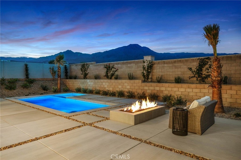 Welcome to Oasis by Crestwood Communities, a gated community offering modern desert living with breathtaking mountain views in the heart of La Quinta. This unique single-story modern home features 2,626 square feet with 2 bedrooms, 2.5 bathrooms, Large Lounge (can convert to 3rd Bedroom), & spacious 3-car garage. Inside, soaring ceilings, striking 12x24 tile floors, and an open-concept great room are filled with natural light from front to back, enhanced by expansive Corner sliding glass doors at the Kitchen/Great room that create a seamless indoor-outdoor flow to the covered patio. Welcome to your resort style backyard, perfect for entertaining or relaxing beside the included pool and spa. The open kitchen is designed for both functionality and elegance, featuring designer quartz countertops, an oversized island with waterfall edges, modern flat panel cabinetry with warm accent lighting, soft-close hinges, and stainless-steel Bosch appliances. Each bedroom includes its own en-suite bathroom, while the primary suite offers a resort-style retreat with direct access to the covered patio and a spa-inspired bathroom, thoughtfully separated from guest bedrooms for added privacy. Solar is available for purchase or lease, and the home includes many additional amenities. Conveniently located near golf, hiking, biking, and horseback riding, yet away from traffic and congestion. Model grand opening is Saturday, January 24th. Photos shown are of the model home; the subject property is currently under construction.