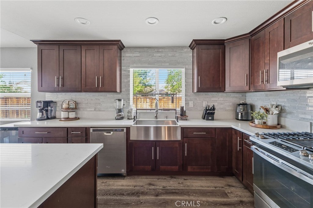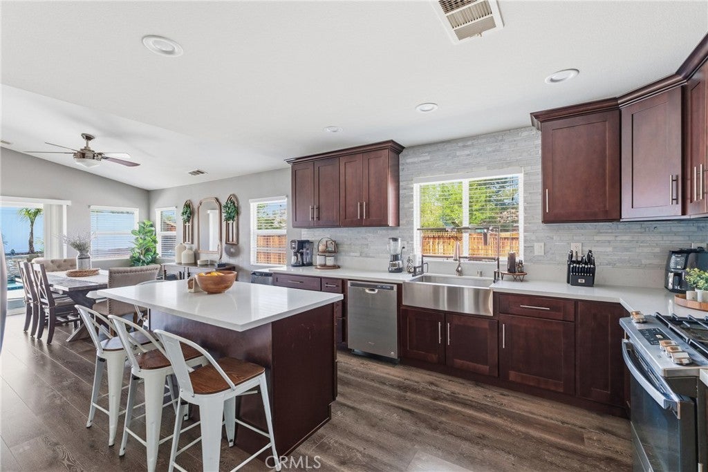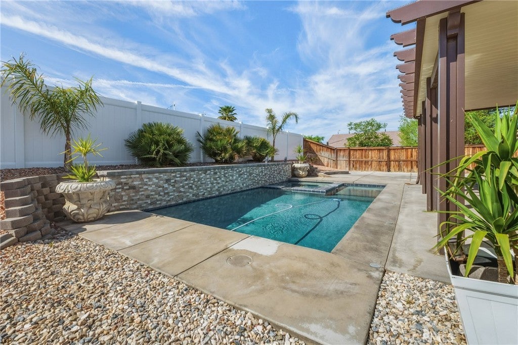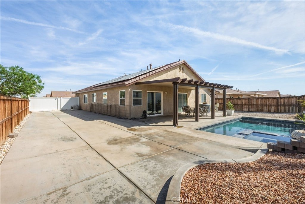 Beautifully remodeled home where modern design meets everyday comfort. The living room, dining area, and kitchen have been thoughtfully upgraded to create a seamless flow-perfect for both entertaining and daily living. The fully remodeled kitchen features stylish finishes, updated cabinetry, and a clean, contemporary feel that will impress any buyer. New flooring runs throughout the home, adding warmth and a cohesive, move-in-ready look. The backyard has a relaxing feel, complete with a pool - and low-maintenance cement, offering a clean, functional outdoor space with endless possibilities. This home is also equipped with solar (buyer to assume solar loan or pay off), helping reduce energy costs while promoting sustainable living. Enjoy the convenience of a smart home system, providing modern control and efficiency at your fingertips. A true turnkey property combining style, upgrades, and lifestyle.