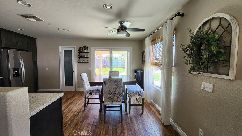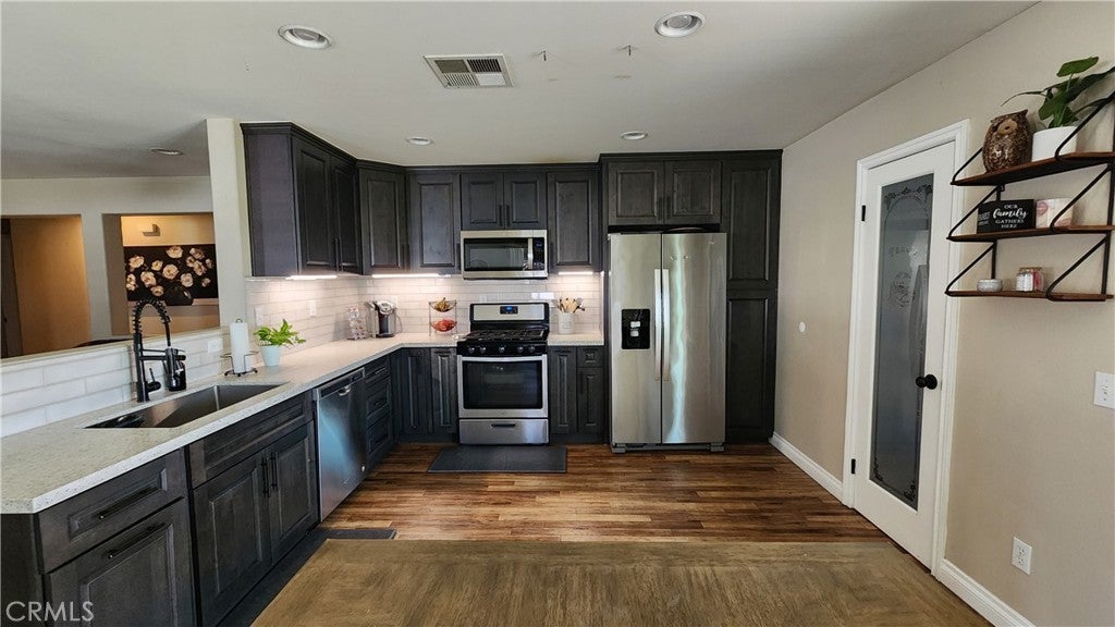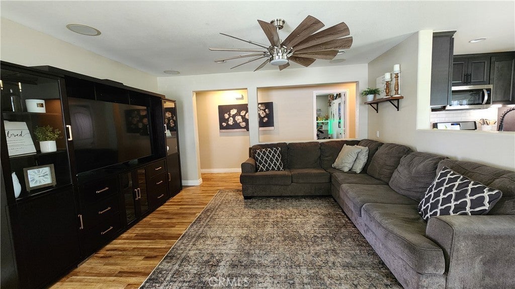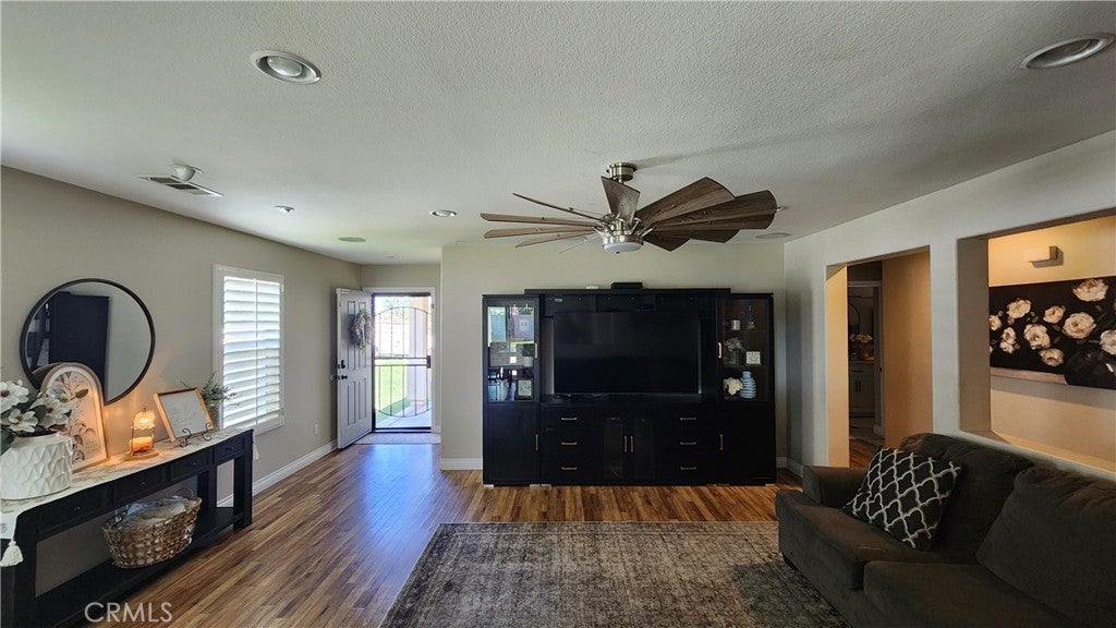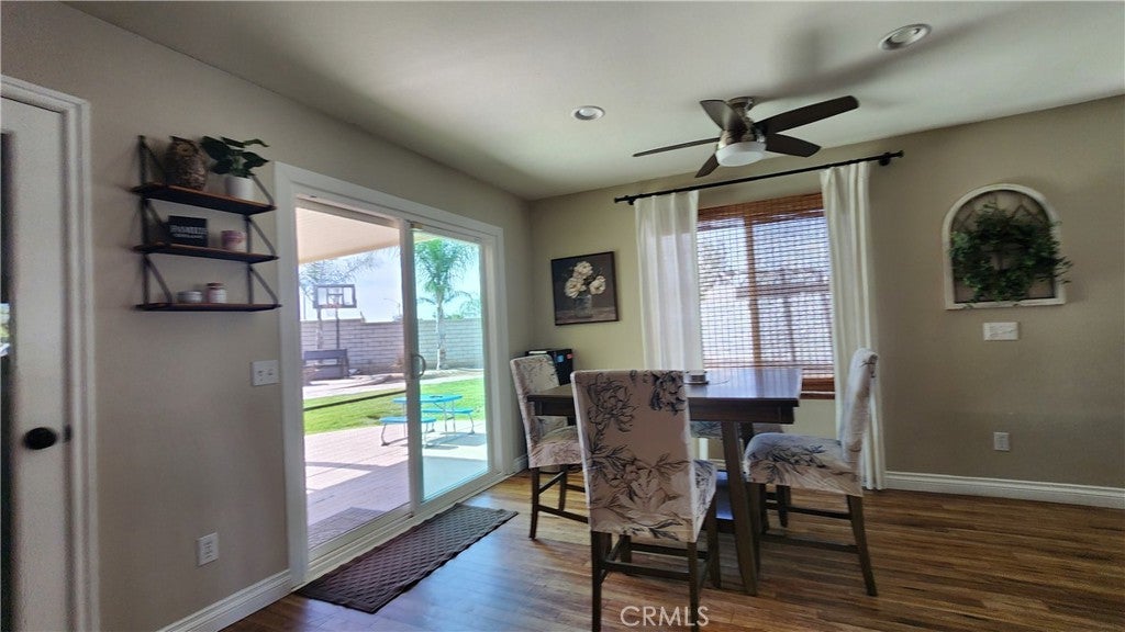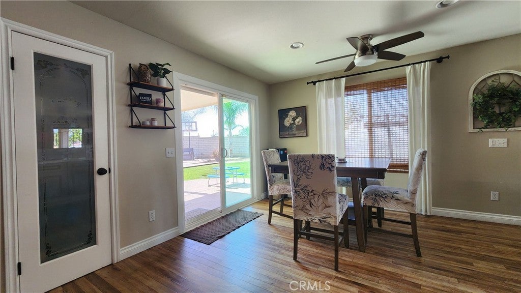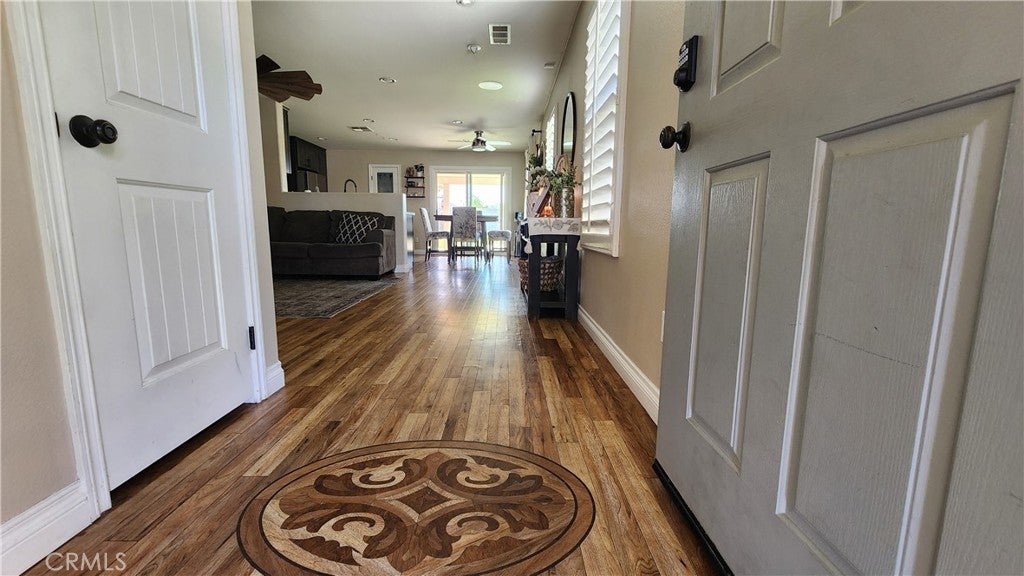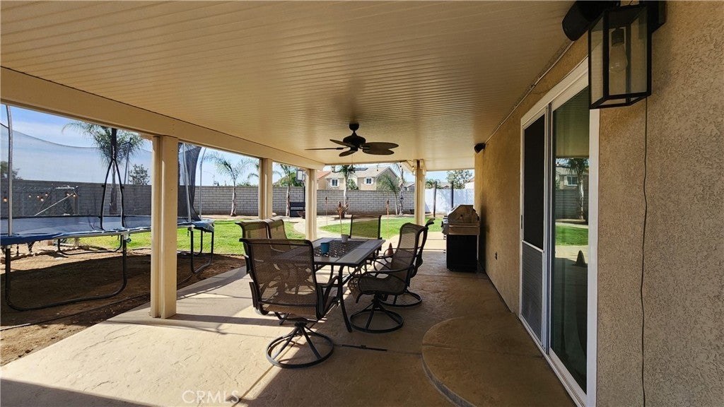 Come and take a look at this beautiful single story home featuring 4 Bedrooms and 2 Full Baths. It has one of the largest lots in the neighborhood with approximately 10,018 sq.ft., with most of the space in the back yard. The big yard has potential for a possible ADU or home addition in the future. As you enter the home, you are greeted into the living room, followed by the kitchen and dining area towards the back. This home has spacious bedrooms; Featuring a Primary Suite with double doors exiting to the back yard. The primary private bath has dual sinks. The kitchen has lots of cabinet space, a pantry, built in dishwasher and microwave. Indoor laundry room with storage cabinets. Several modern ceiling fans. Central air conditioning and heat. The two car attached garage has an automatic door opener. This home has no neighbors to the rear giving you more privacy. Covered Alumawood patio for your afternoon and weekend relaxation. Storage shed for those extra items. A good portion of the fence is block wall. Tile Roof. Several parks and walking & bike trails are within walking distance; including a dog park. The schools are very close, elementary, middle school and high school all within a short distance. Lake Perris recreation area is about 5 minutes away. Shopping centers close by as well. Excellent Location !!! Seize the opportunity and lets make this your next home.