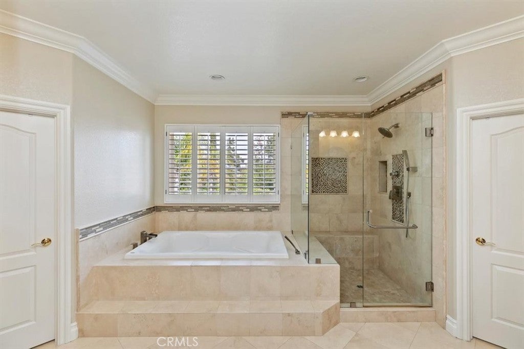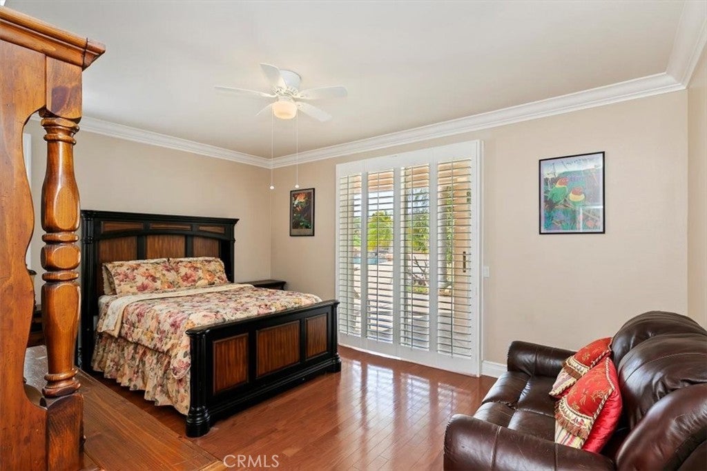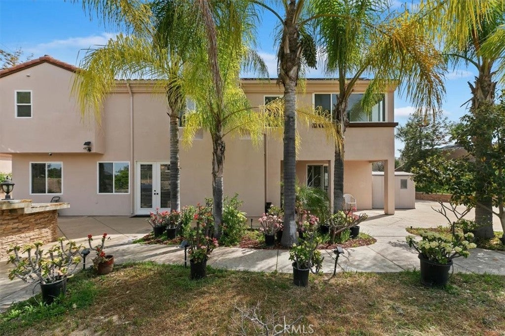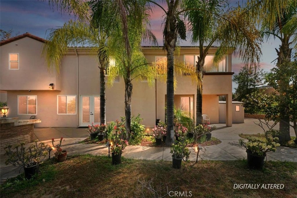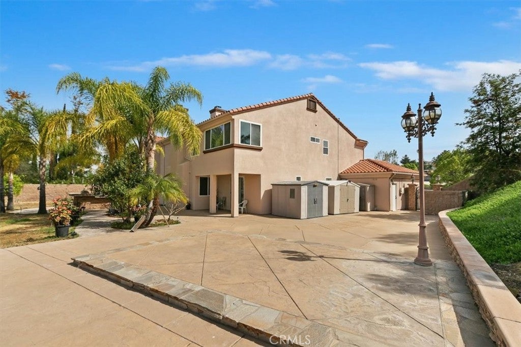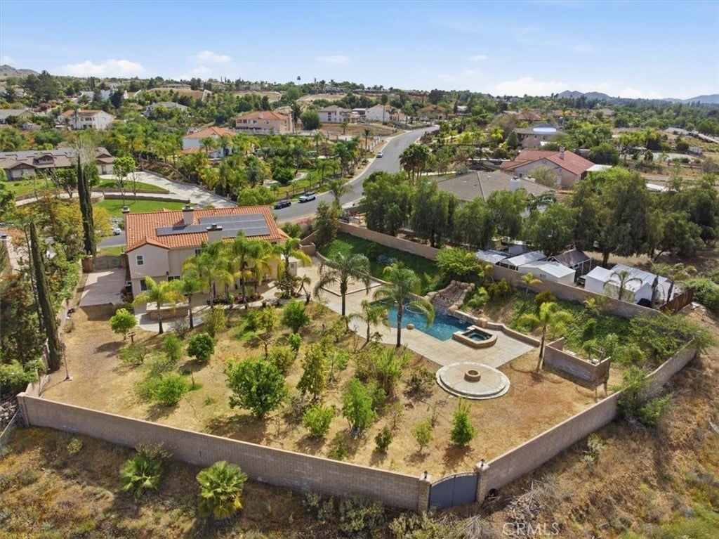 Stunning Creekside Estate in the community of Mockingbird Canyon. This turnkey residence offers 4,090 sq. ft. of living space, featuring 5 bedrooms and 4 bathrooms, all situated on 1.50 acres of beautifully maintained land. Double-door entry welcomes you into a striking interior with a tiled foyer enhanced by elegant granite inlays. The home showcases expansive formal living and dining rms. centered around a spectacular fireplace. A dramatic dual staircase adds architectural charm. Designed for comfort and flexibility, the home features two primary suites, including a desirable main-level suite complete with gorgeous wood flooring, a private slider leading to the backyard, and an ensuite bath with dual sinks, tub and shower combo, with a walk-in closet. The heart of the home is the expansive kitchen, offering granite countertops and backsplash, a large center island with breakfast bar, black appliances, and a walk-in pantry. The kitchen opens to the spacious family rm. highlighted by a cozy gas fireplace. Upstairs, the luxurious primary suite features double-door entry, a private sitting area, and an enclosed balcony for peaceful retreat. The spa-inspired ensuite bath includes granite counters, a Jacuzzi tub, separate shower, dual sinks, and two vanities. His & Her walk-in closets. Three additional generously sized guest bedrooms and a full hall bath complete the second level. This home is loaded with upgrades including plantation shutters, crown molding with detailed window casings, 6-inch baseboards, wainscoting, custom paint, ceiling fans, solar, and instant hot water. Step outside to your own private resort-style oasis. The backyard boasts an expansive Bogner pool and spa with a stunning waterfall, all remote-controlled with accent lighting. Enjoy outdoor living with a large built-in barbecue featuring a 48-inch grill, stamped colored concrete and a Bose outdoor sound system. The property is fully enclosed with split-face block walls and beautiful iron gates, offering both privacy and security. Additional features include gated RV parking, a 4-car garage with epoxy flooring, and an orchard with a wide variety of producing fruit trees including lemon, lime, jujube, guava, soursop, pomegranate, avocado, orange, peach, plum, grapefruit, sugarcane, loquat, and dragon fruit. Mature landscaping creating a serene and picturesque setting. This exceptional property truly reflects pride of ownership and offers the perfect blend of luxury & comfort.