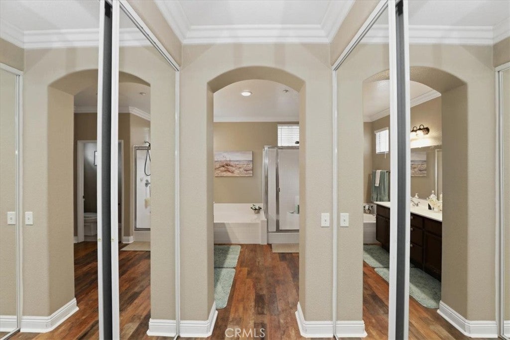 • Interior FeaturesCeiling Fan(s), Crown Molding, Separate/Formal Dining Room, Eat-in Kitchen, Pantry, Recessed Lighting, Main Level Primary, Paneling/Wainscoting, Wet Bar