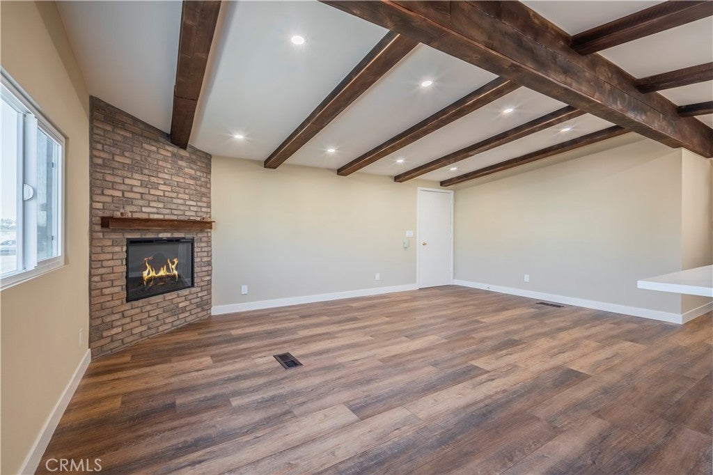• Interior FeaturesBeamed Ceilings, Ceiling Fan(s), Open Floorplan, Quartz Counters, Recessed Lighting, All Bedrooms Down